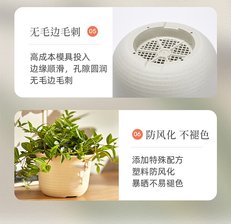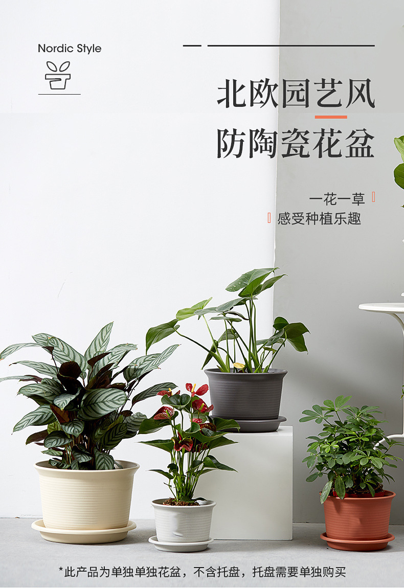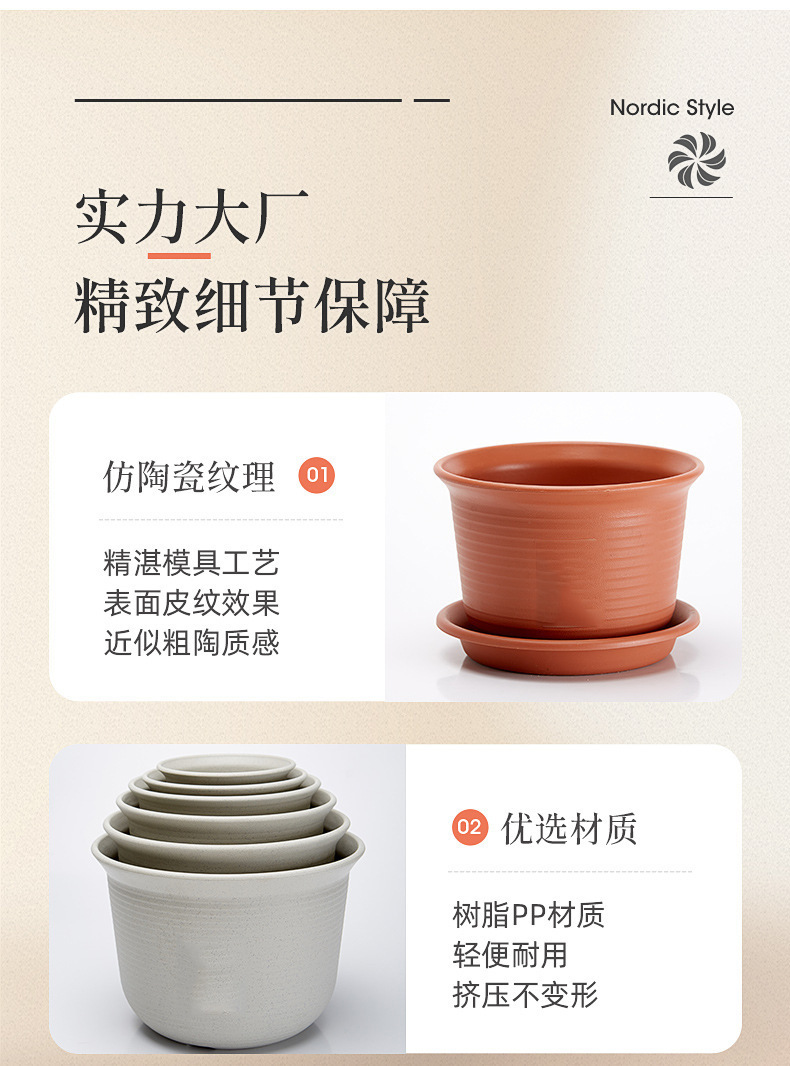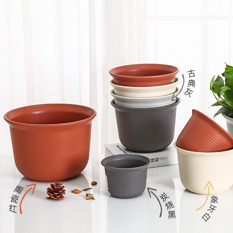 日式简约塑料花盆 圆形加厚花盆阳台绿植多肉塑料仿陶瓷园艺花盆