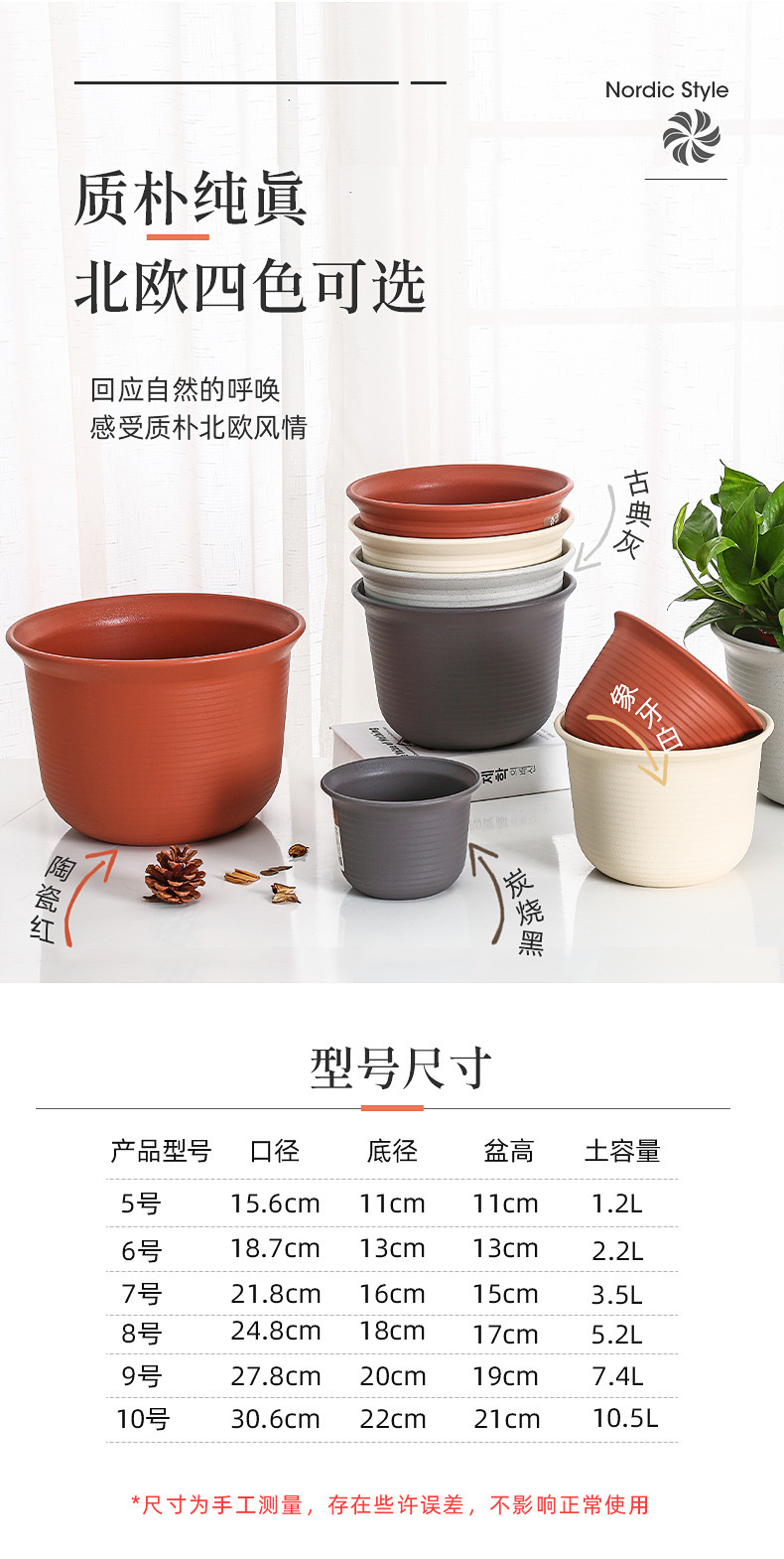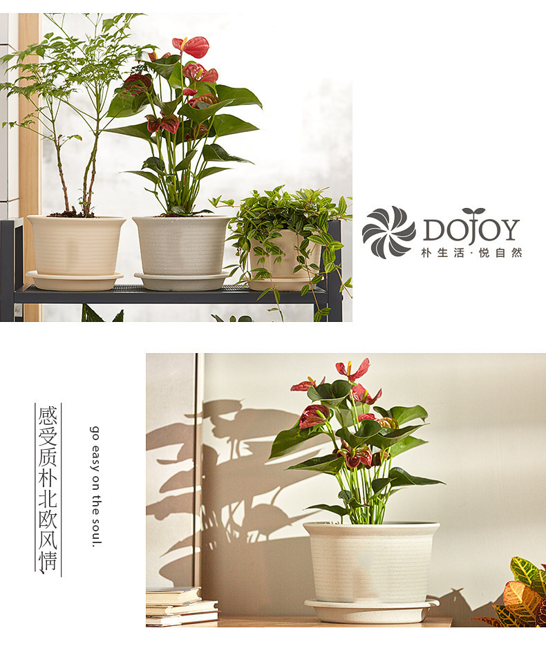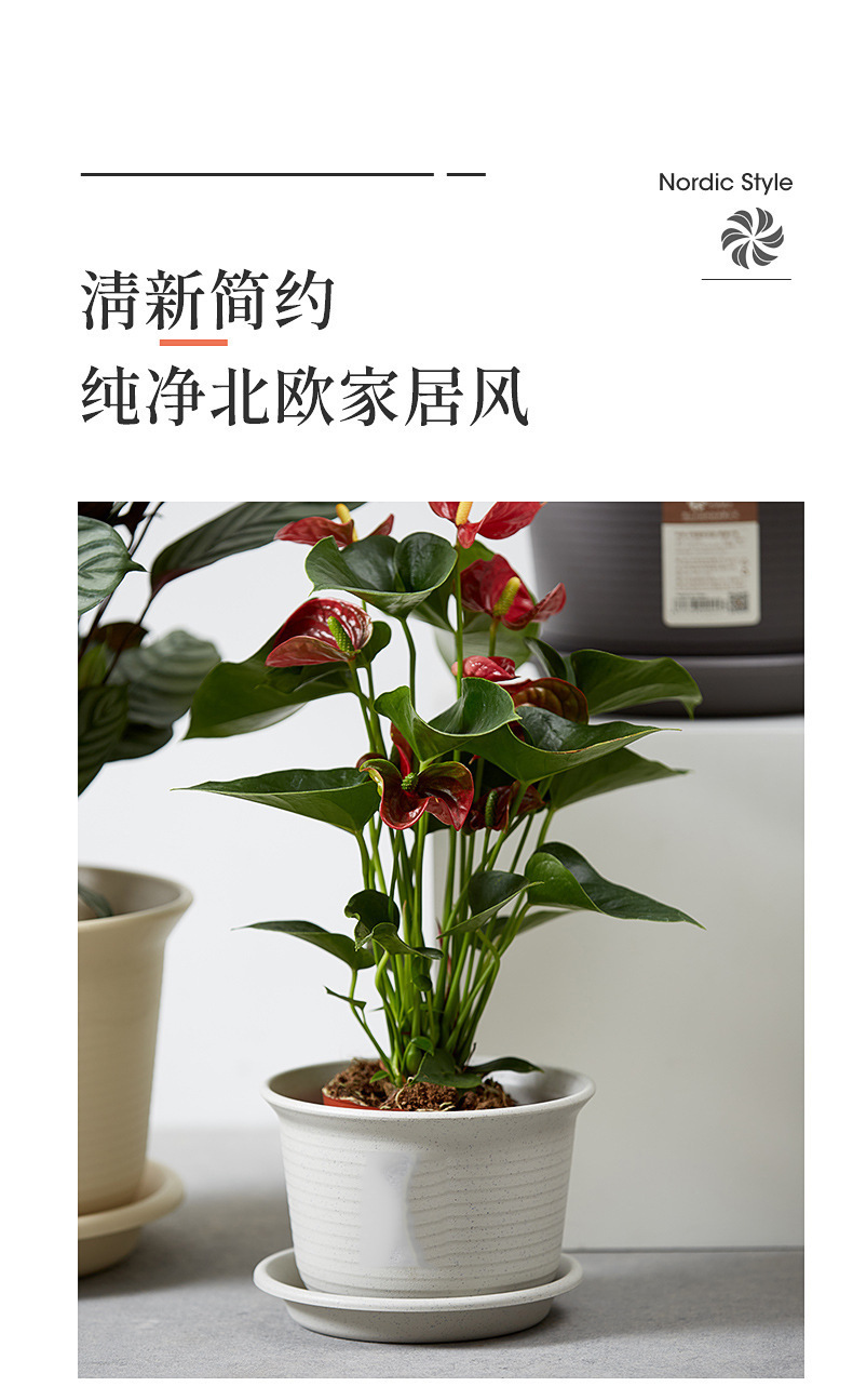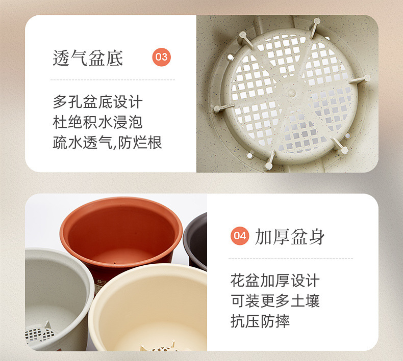 日式简约塑料花盆 圆形加厚花盆阳台绿植多肉塑料仿陶瓷园艺花盆