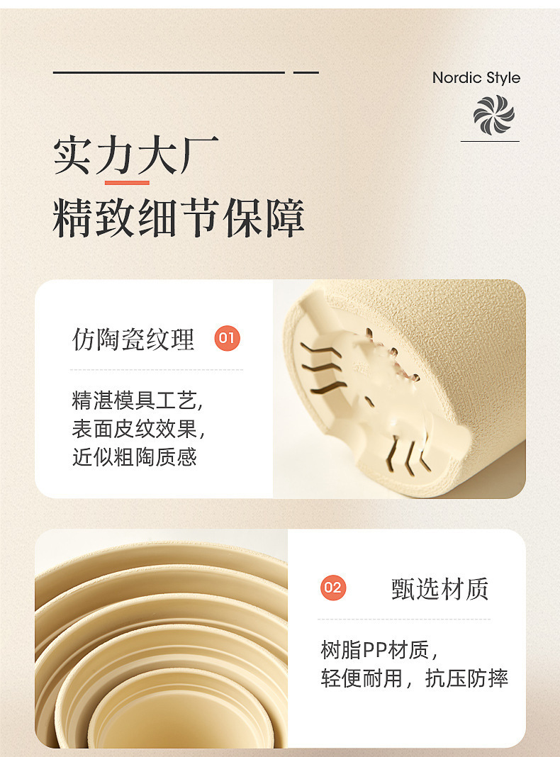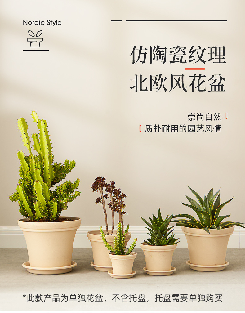 日式园艺大号盆栽花盆 阳台多肉绿植花盆 塑料树脂圆形加厚花盆