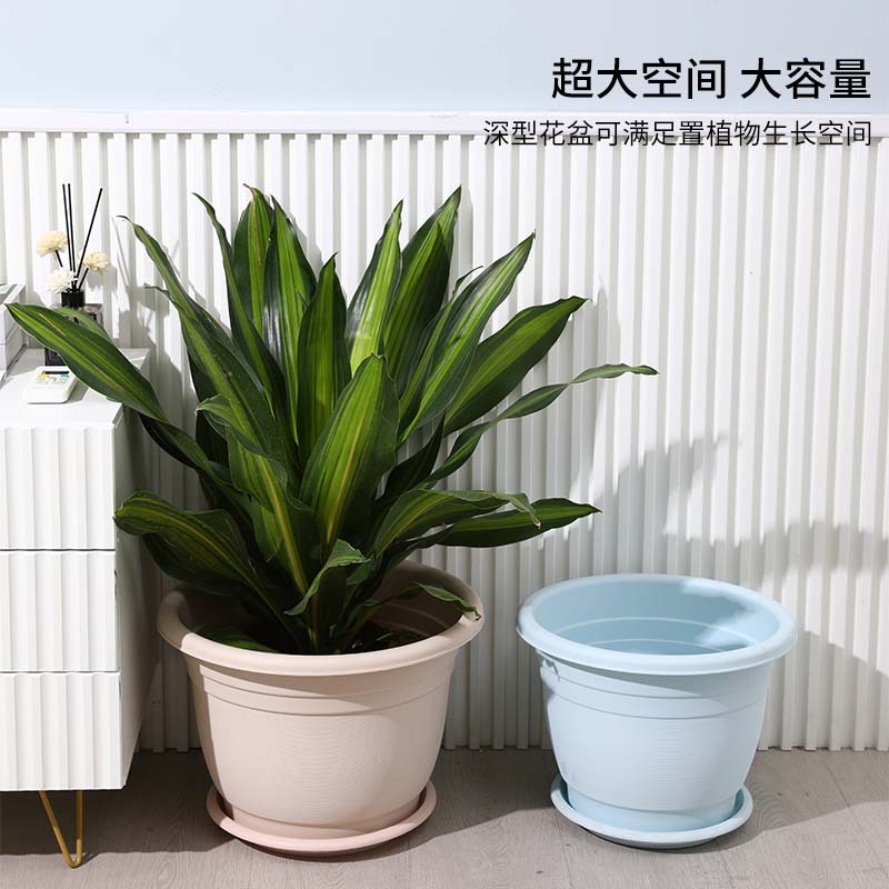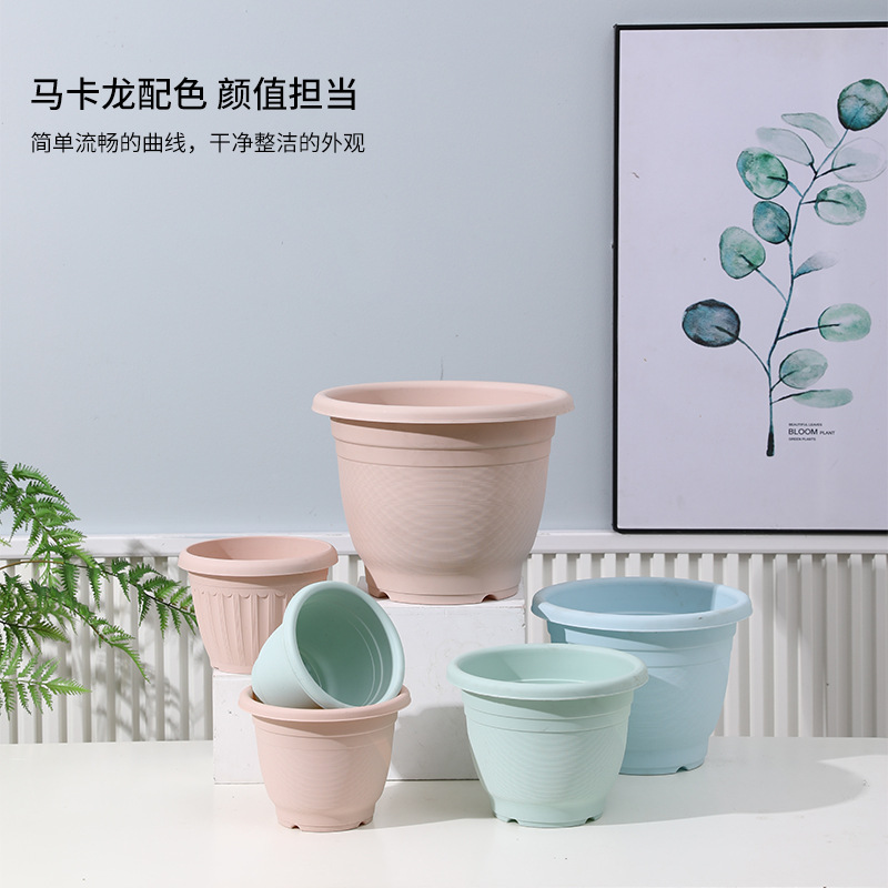 新款马卡龙pp树脂花盆控根深大号塑料仿陶瓷绿萝加仑盆北欧简约盆
