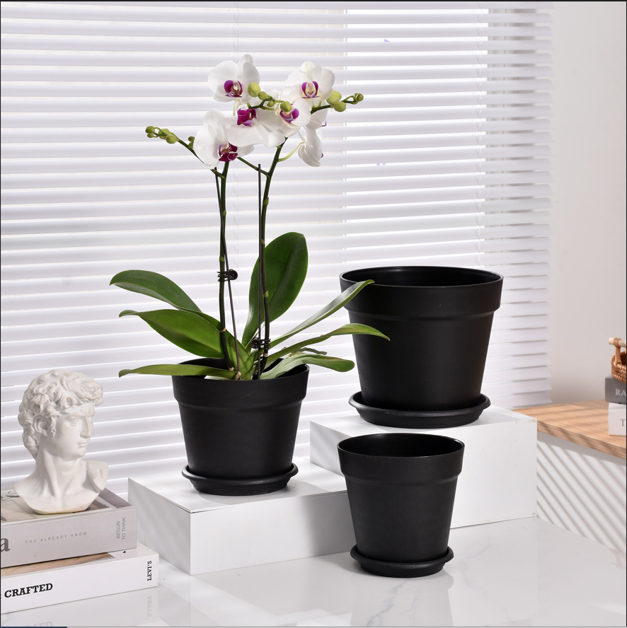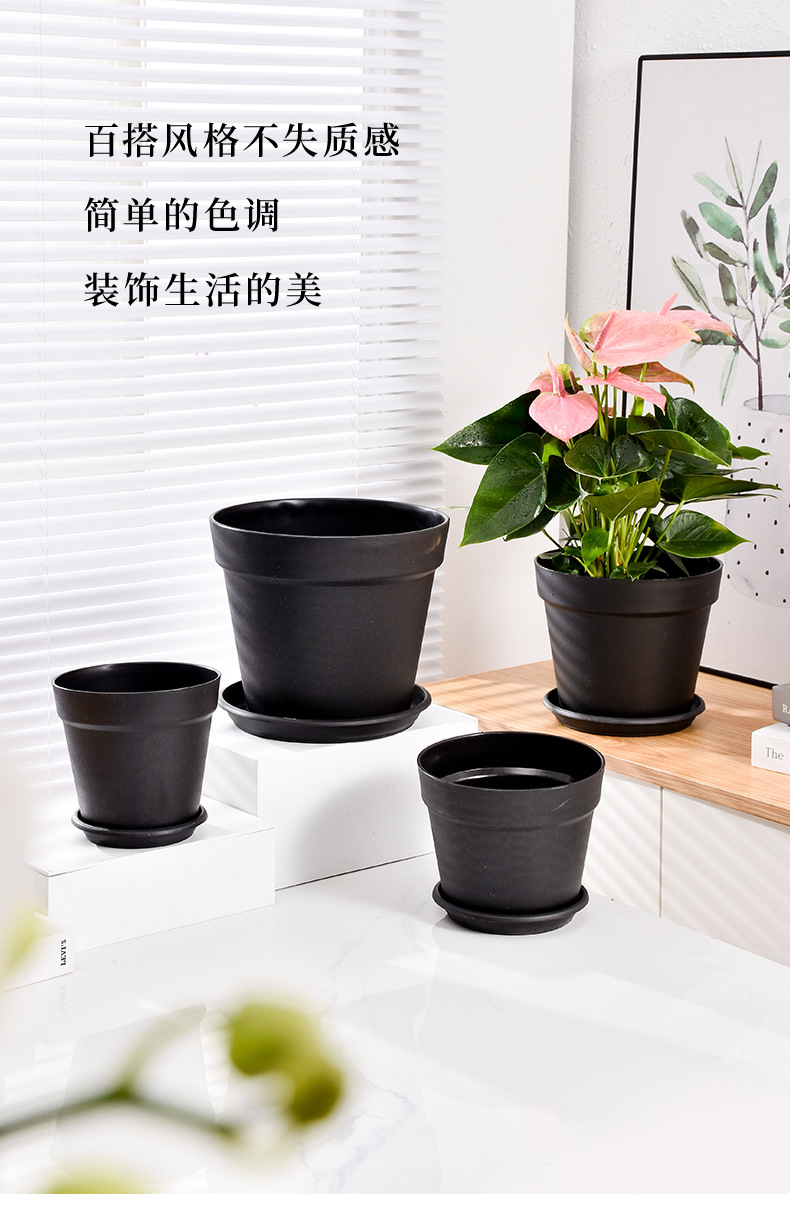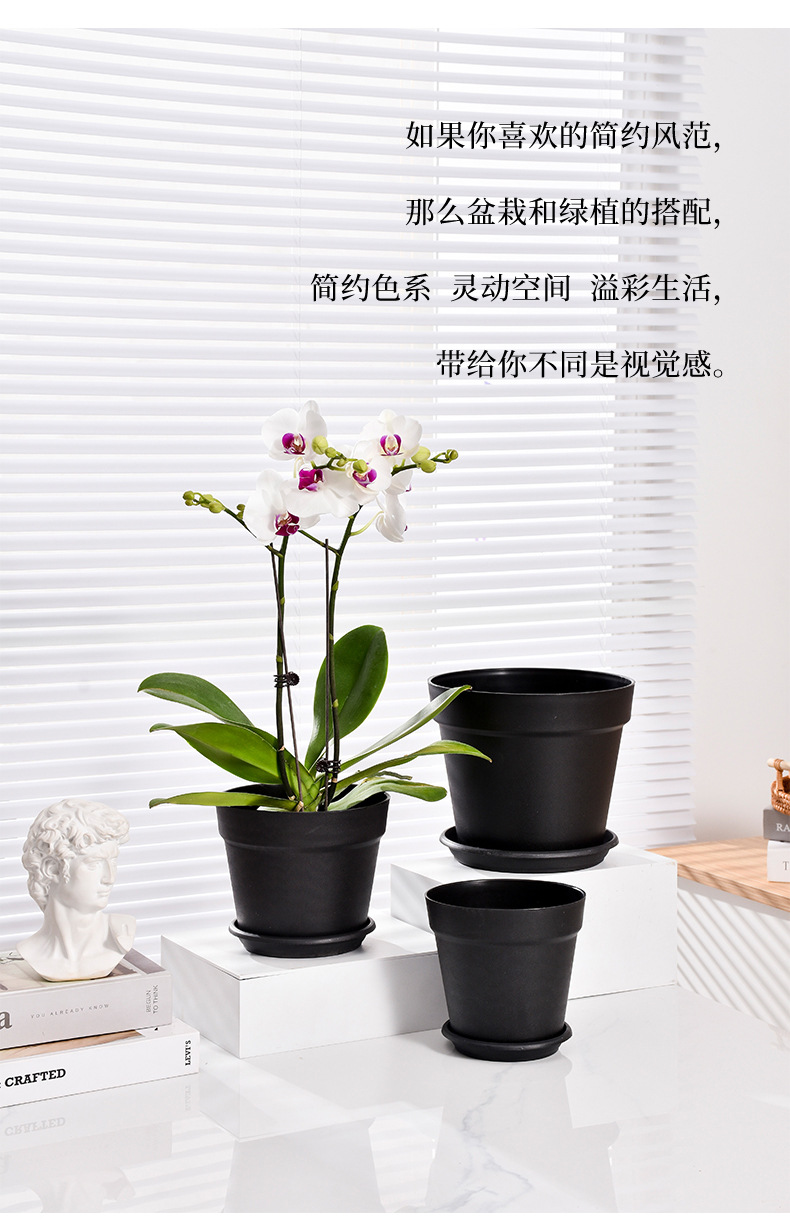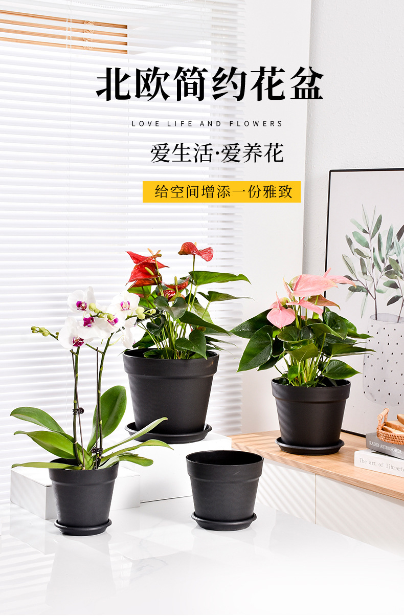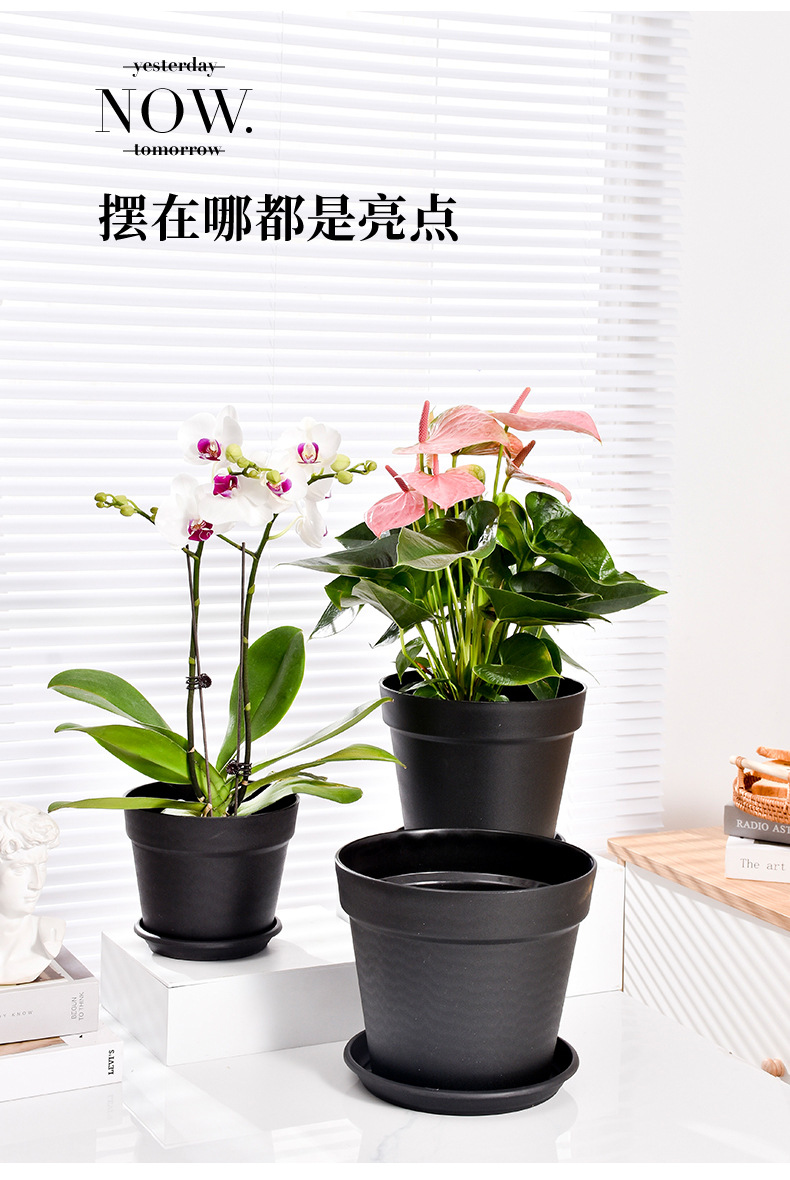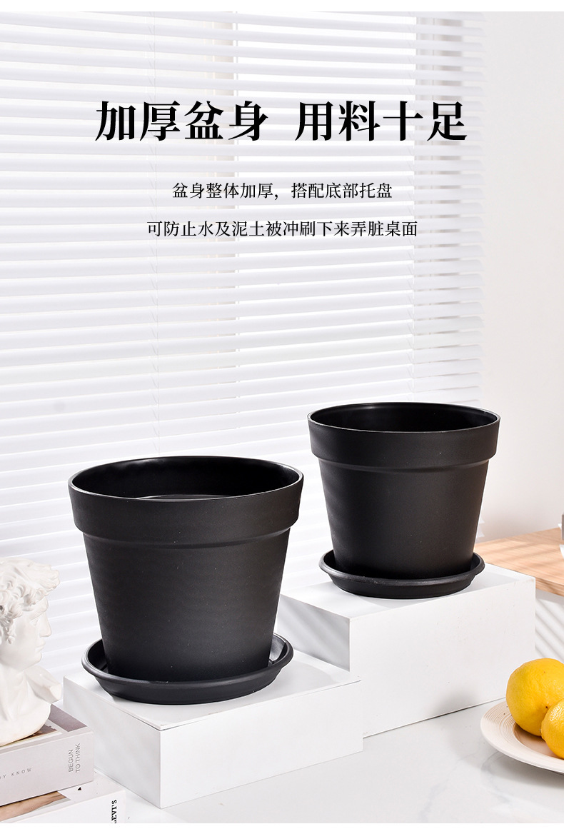 圆形大口径国际盆黑色塑料加仑盆家用客厅阳台树脂花盆厂家批发