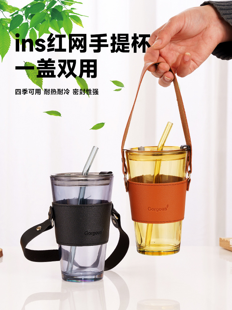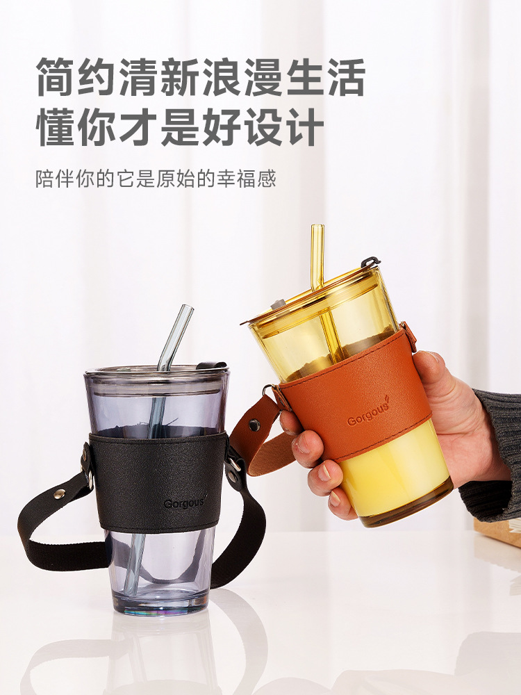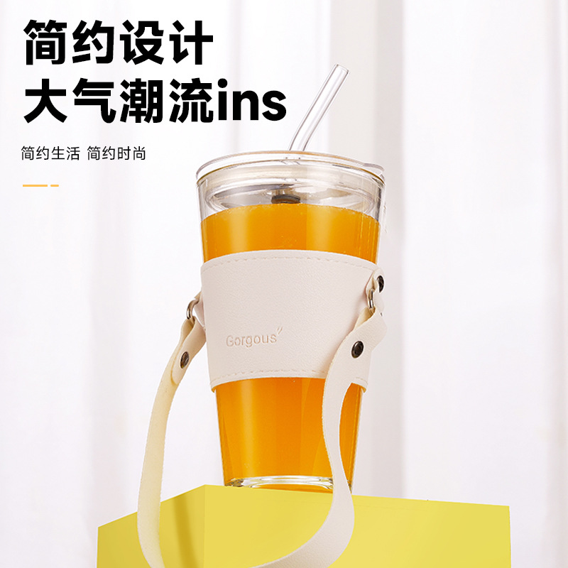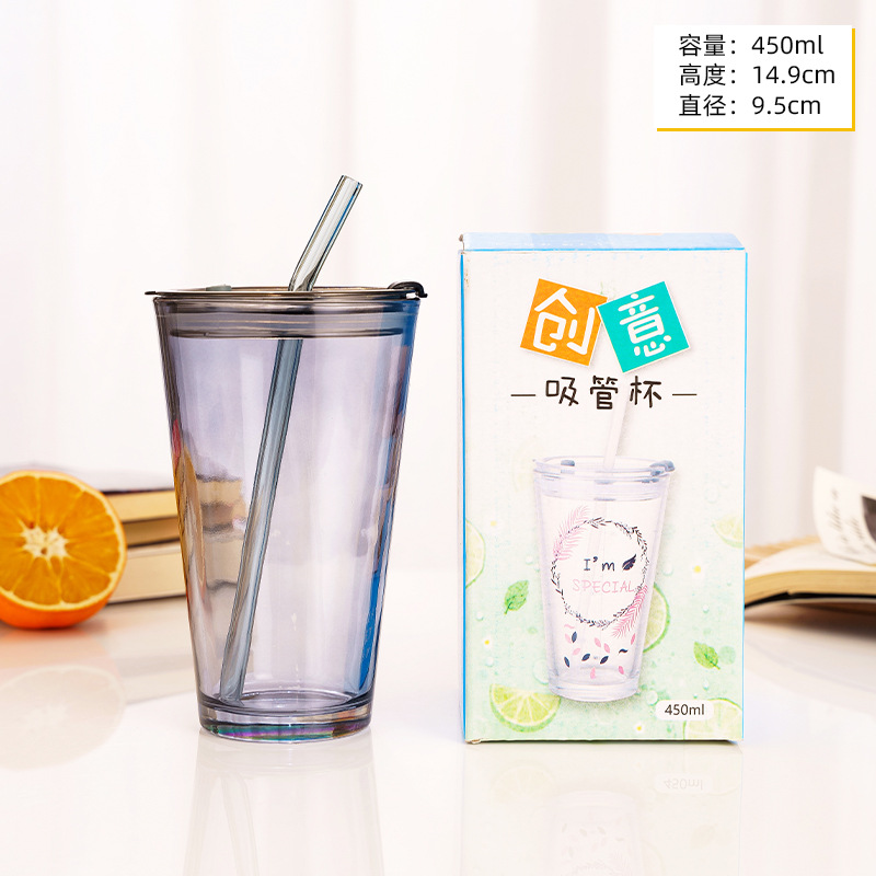 网红极光杯ins风吸管咖啡杯子店庆引流广告礼品玻璃水杯印制logo