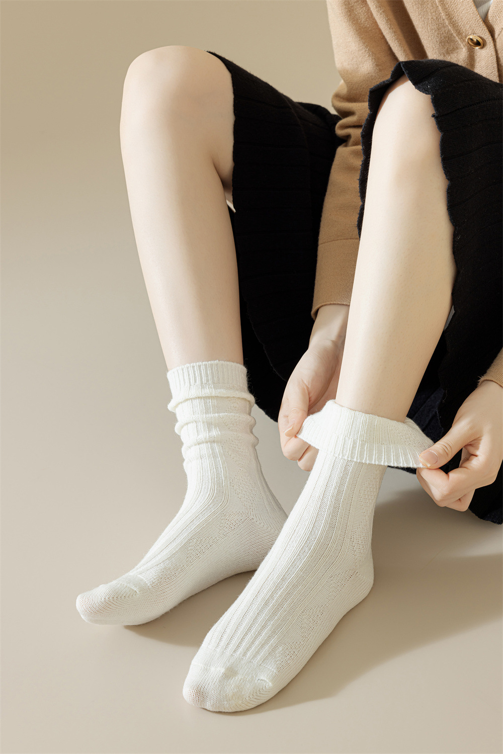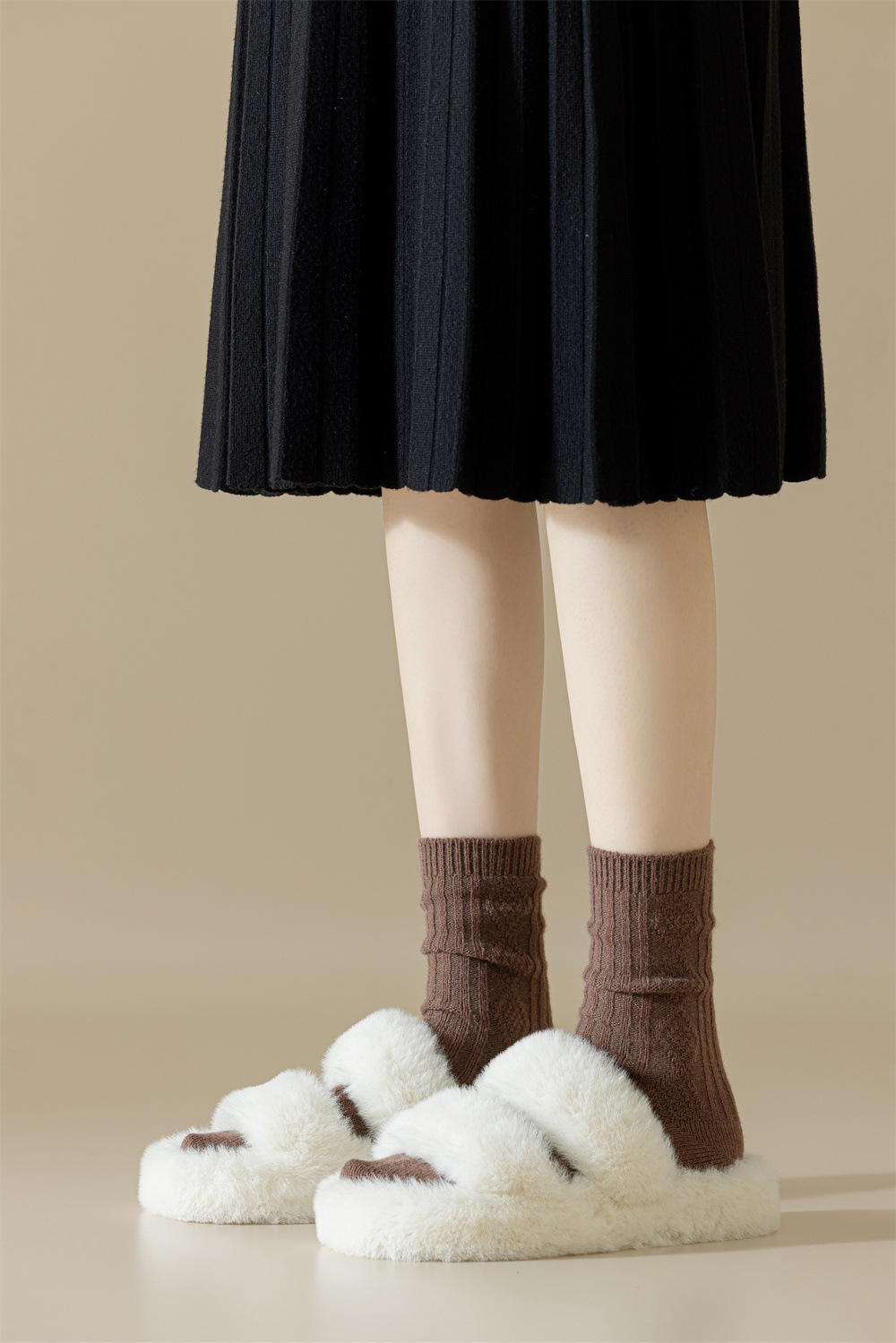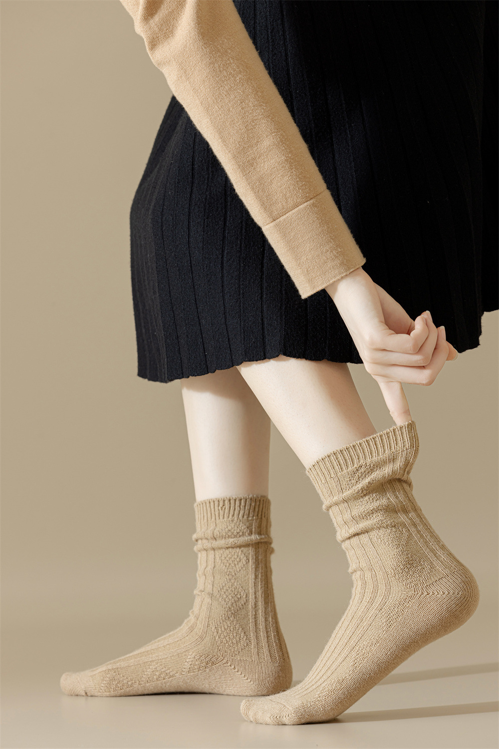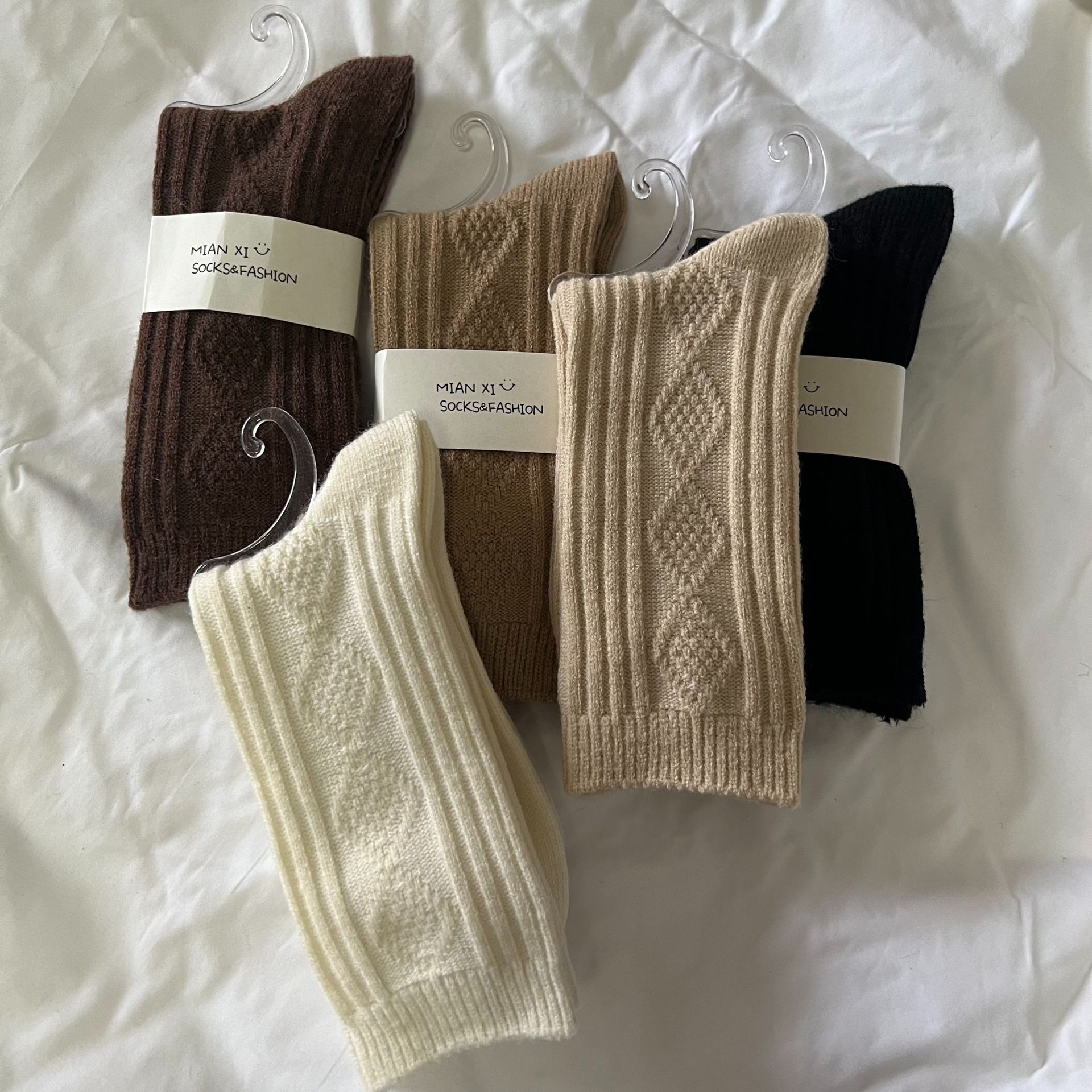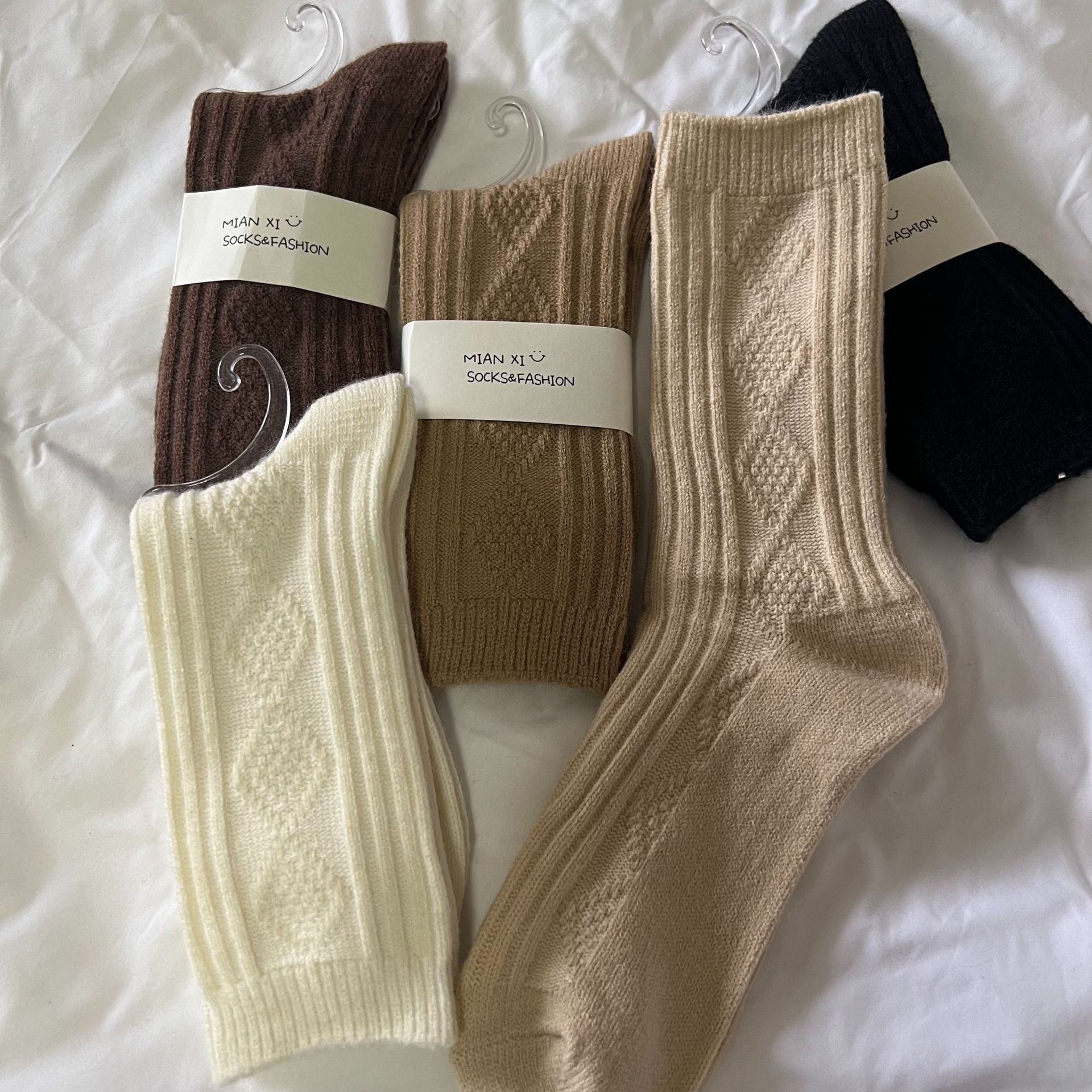 袜子女秋冬复古菱格中筒袜美拉德咖色系软糯堆堆袜博主网红ins潮