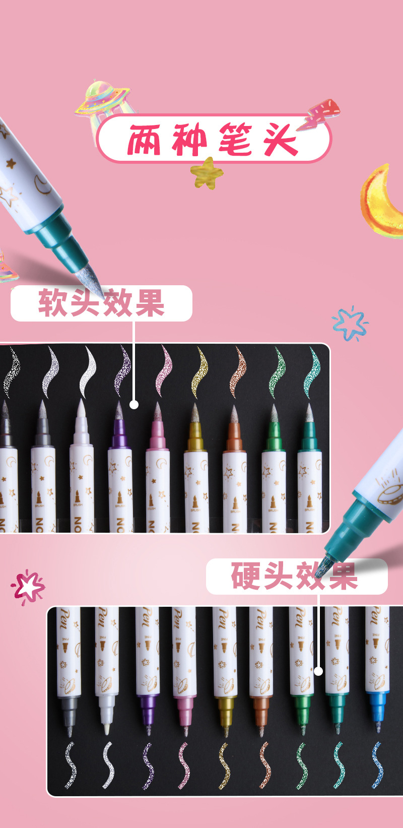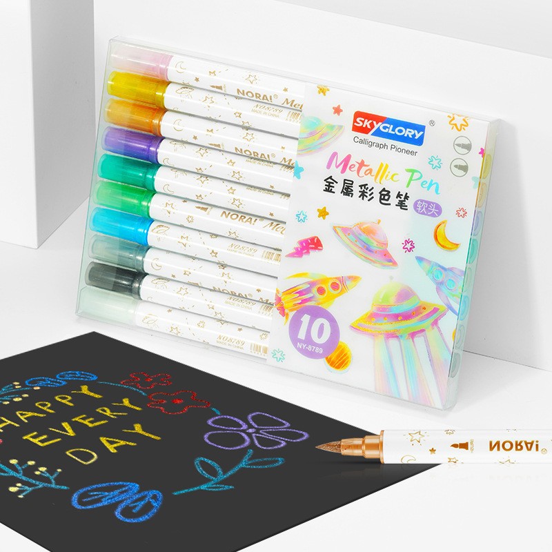 手帐荧光笔塑料套装儿童节学生重点标记闪光笔商务手账闪光笔批发