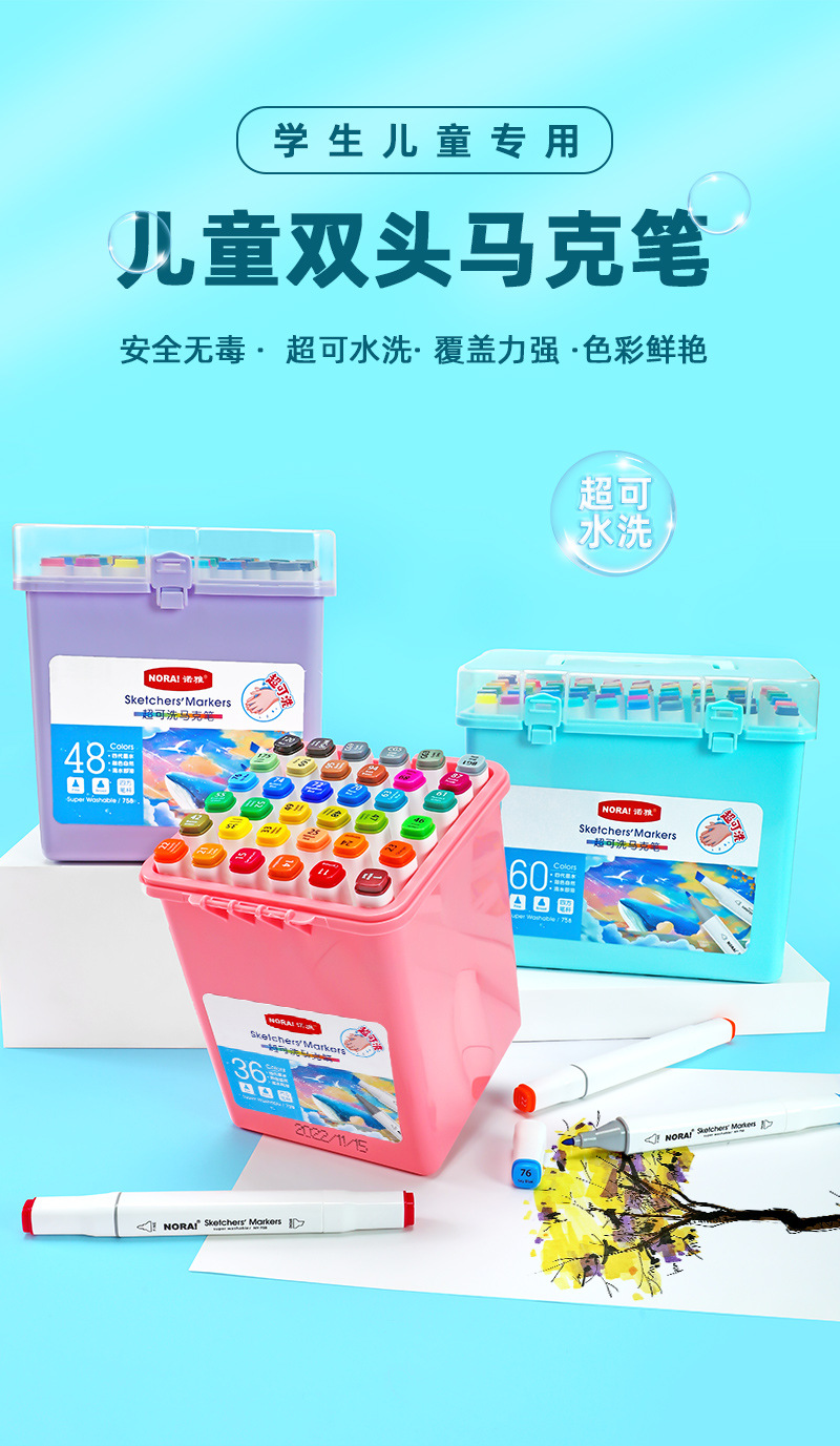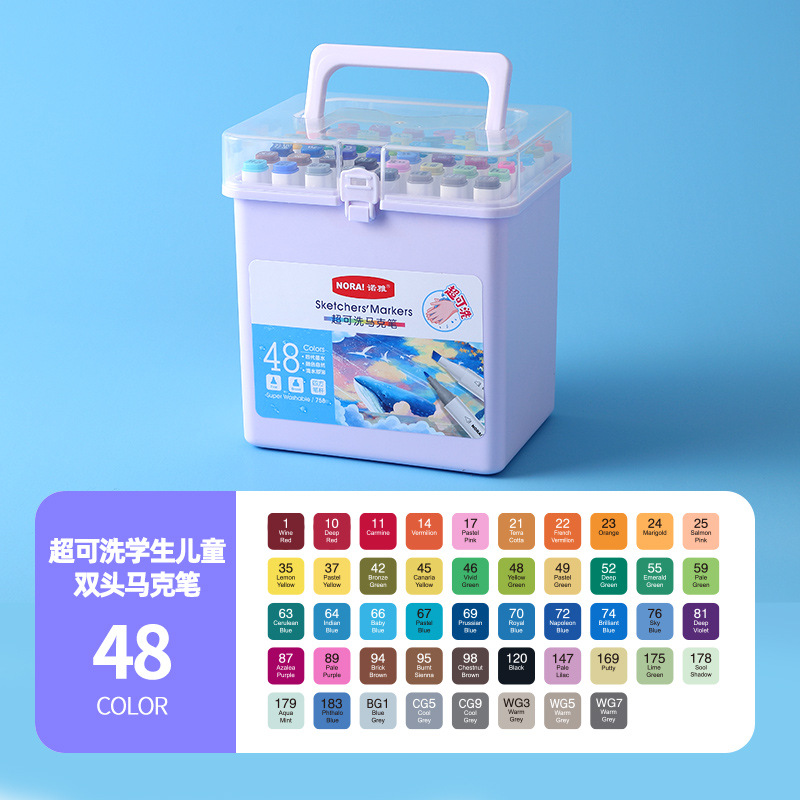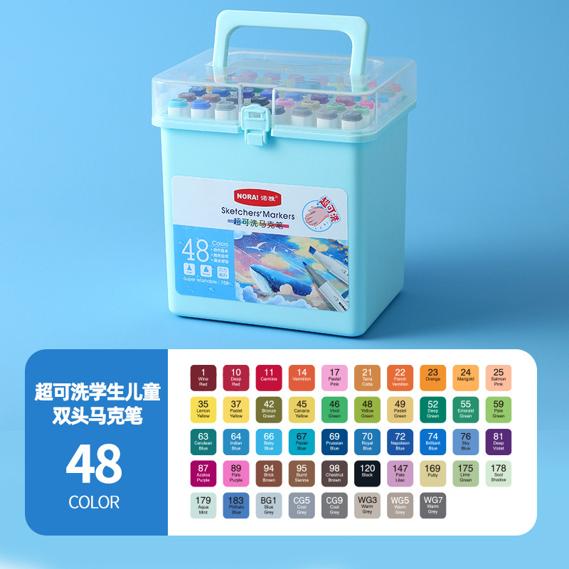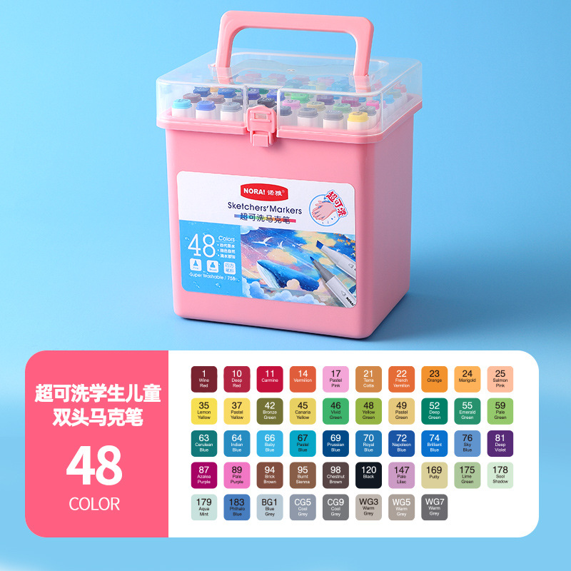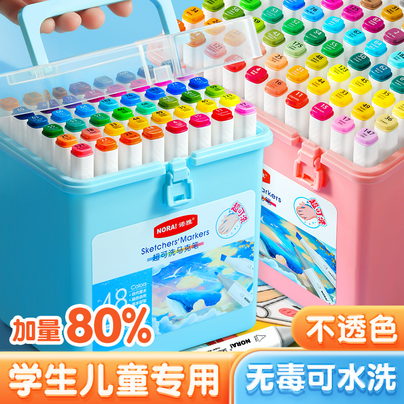 全套水洗儿童马克笔套装48色学生专用绘画笔双头水彩笔批发可水洗