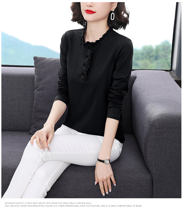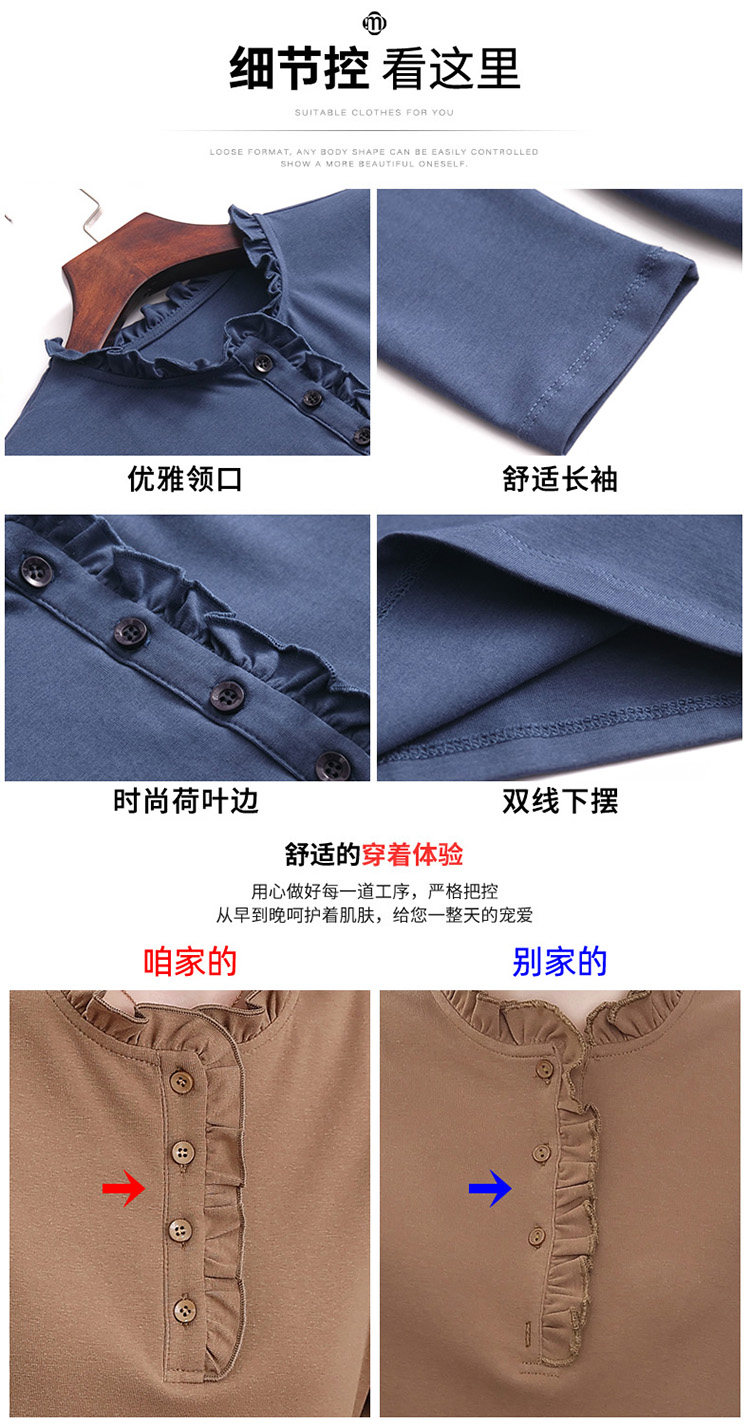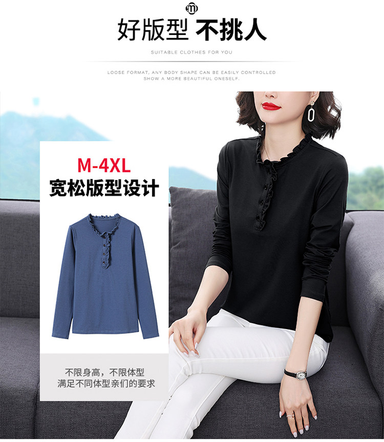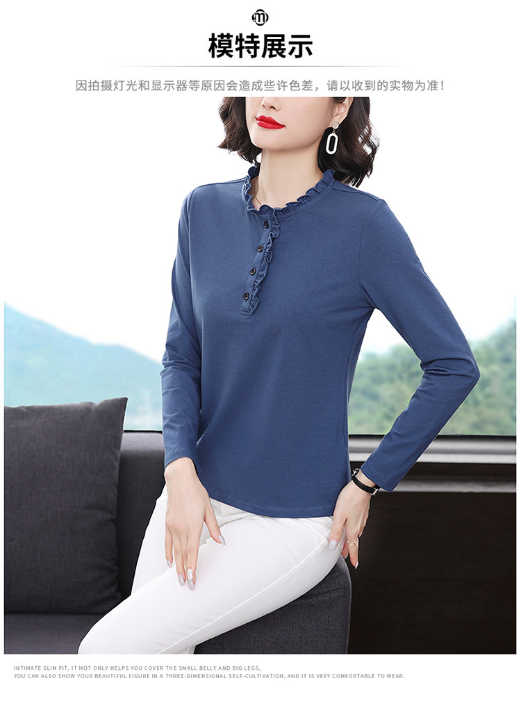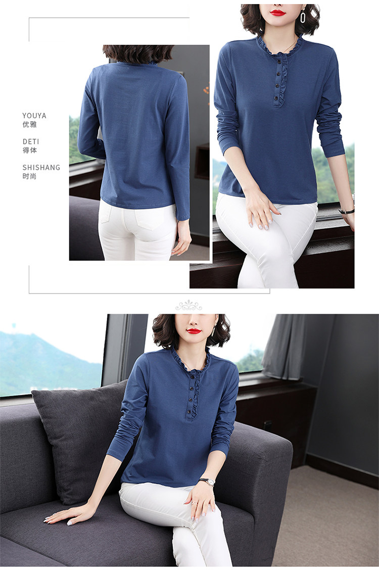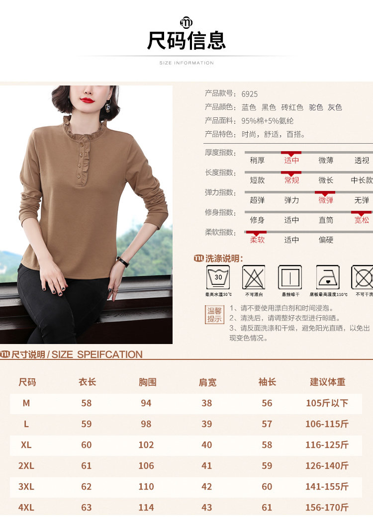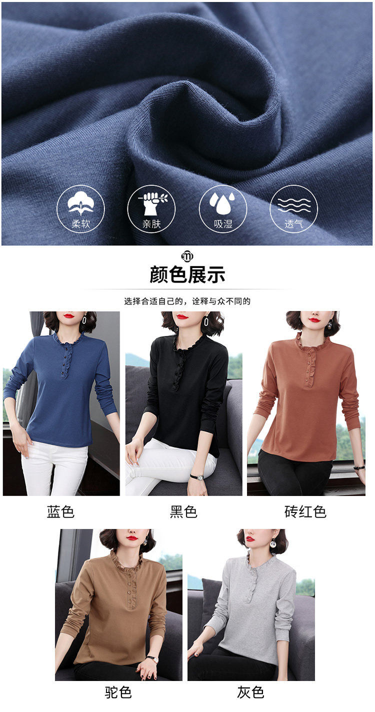 中年妈妈秋装上衣纯棉t恤女长袖洋气内搭薄款半高领秋冬打底衫潮