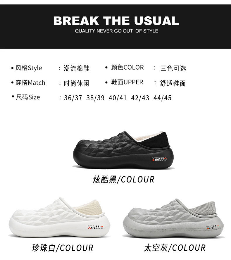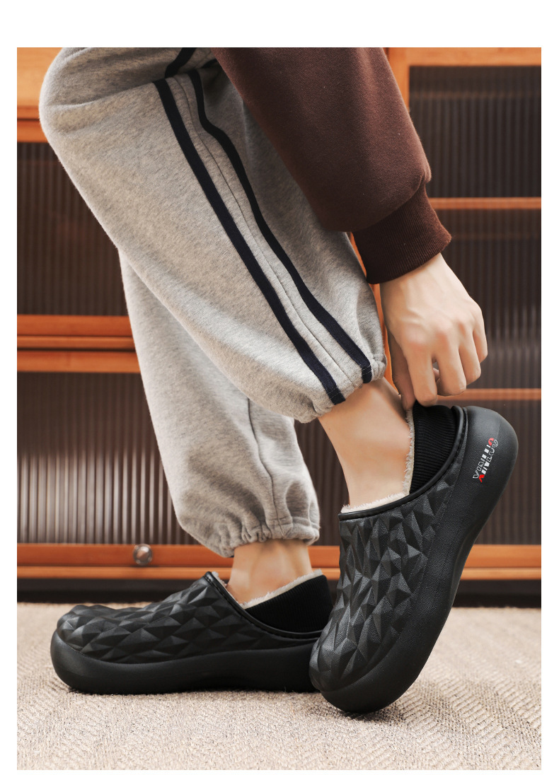 防水棉拖鞋男2023冬季新款厚底防滑保暖潮包头拖情侣居家拖可外穿
