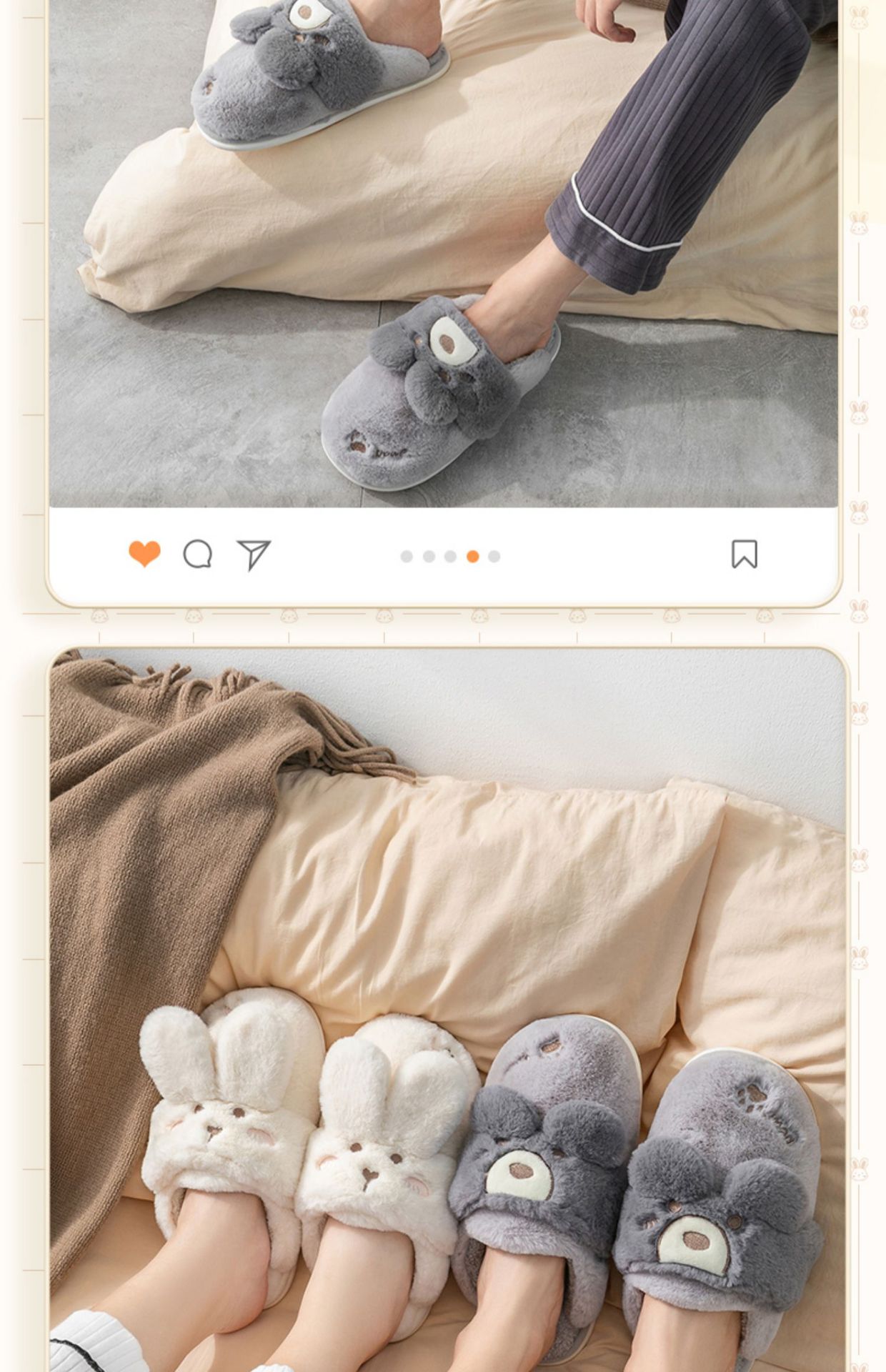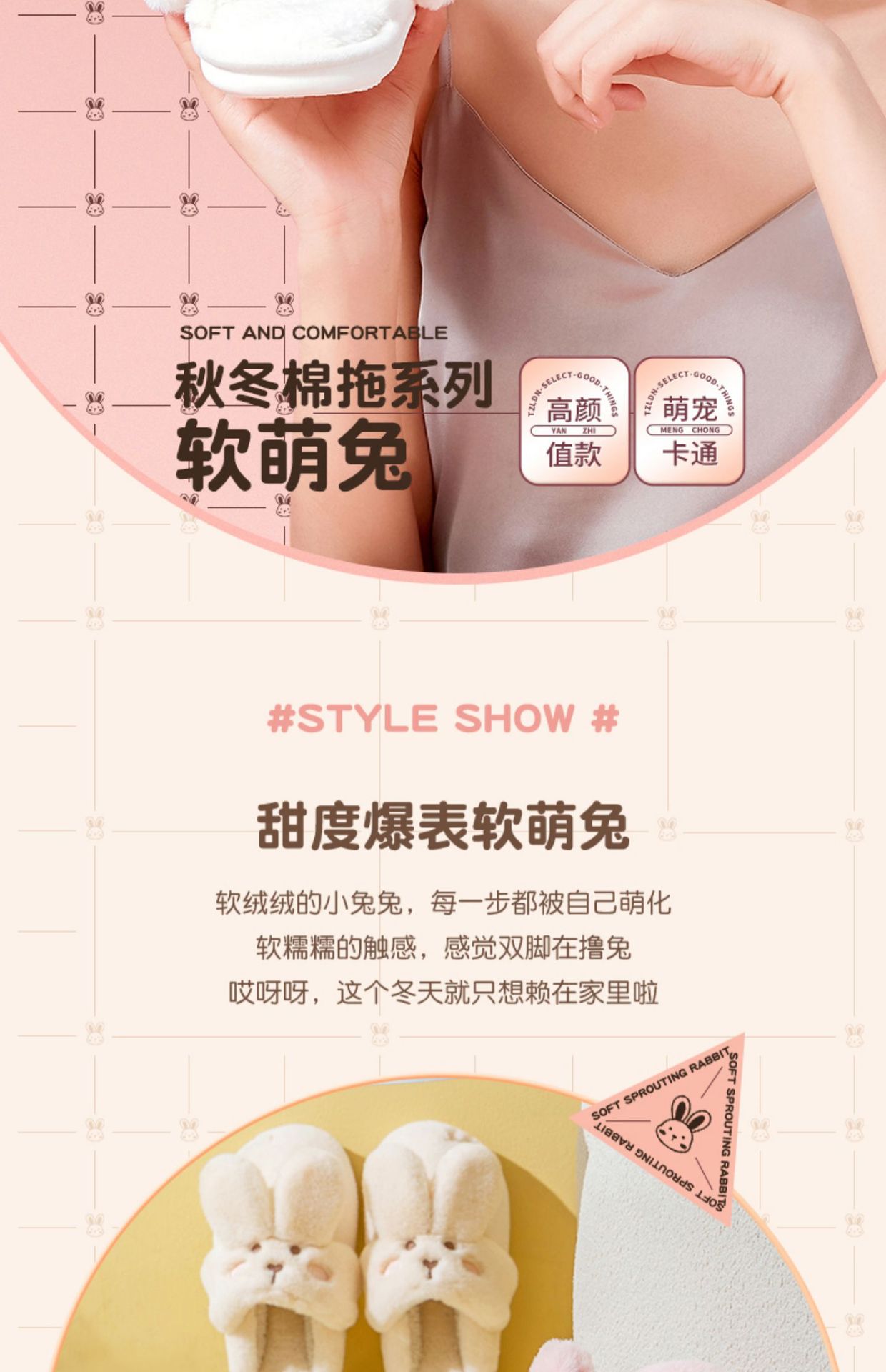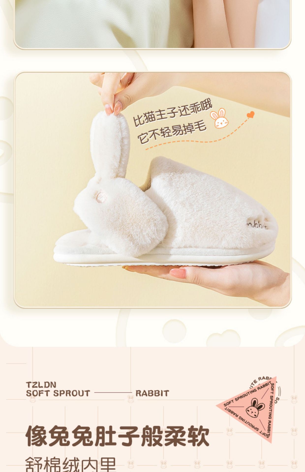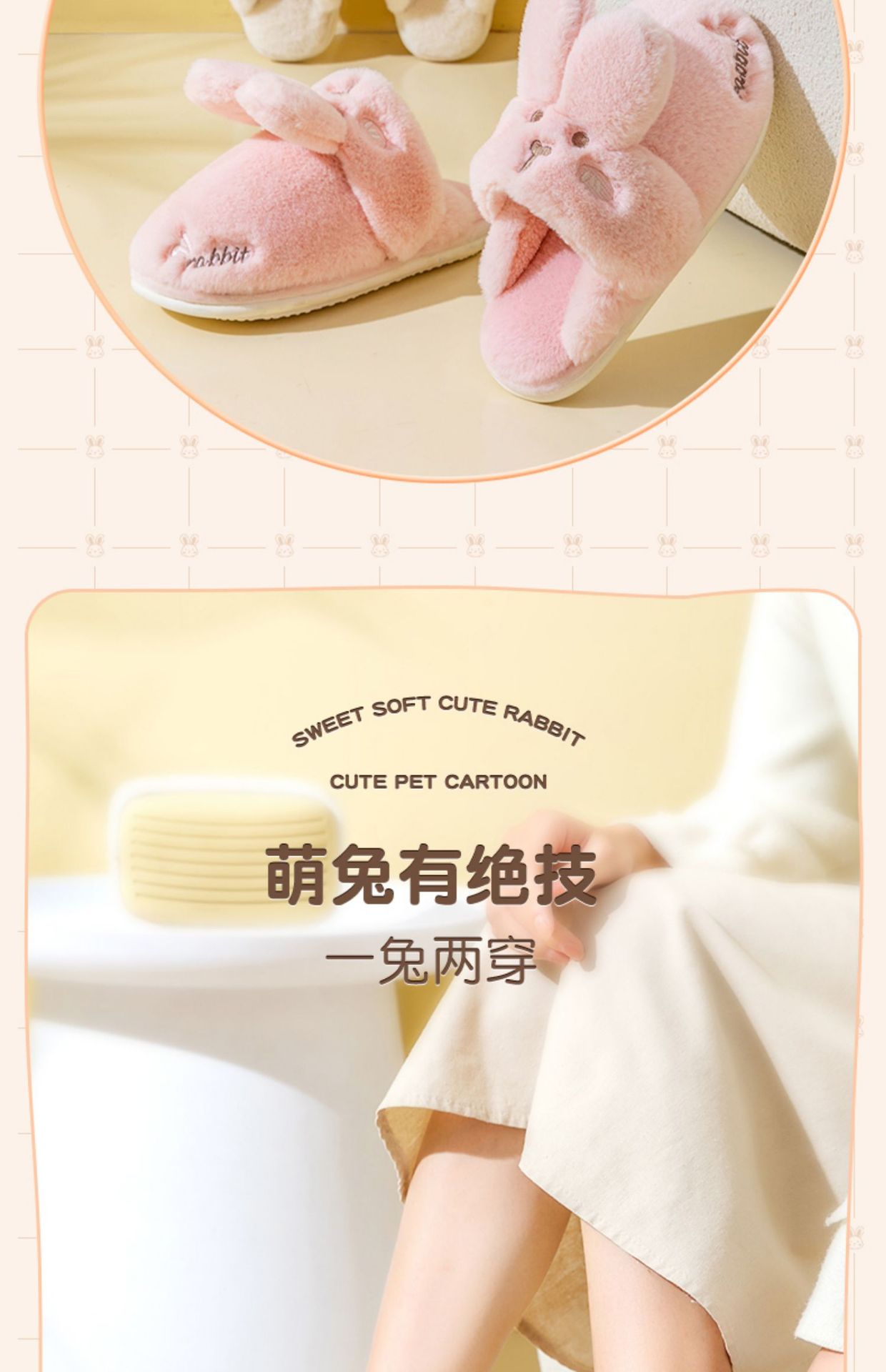 棉拖鞋女士冬季室内家居鞋2023新款情侣月子毛绒兔子外穿拖鞋代发