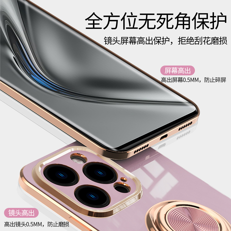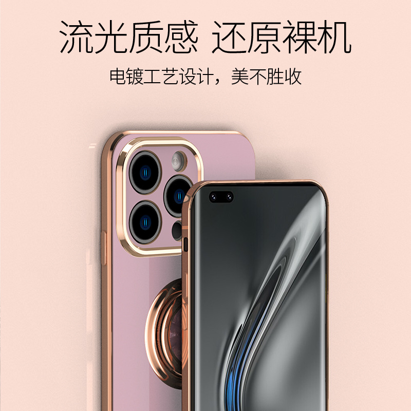 适用苹果iphone15手机壳13promax14/7P/xs电镀指环保护套车载磁吸