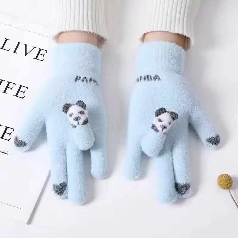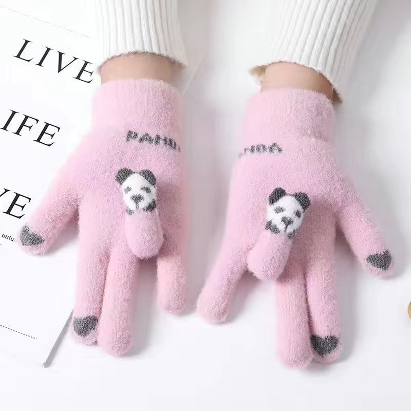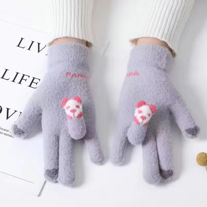 半指翻盖手套冬羊毛针织手套触屏加厚保暖防寒学生骑行女冬季露指