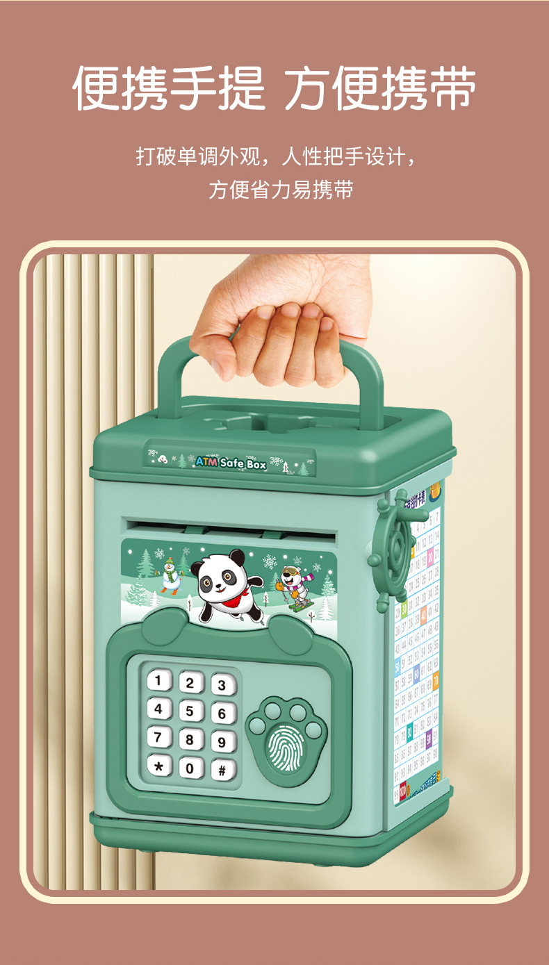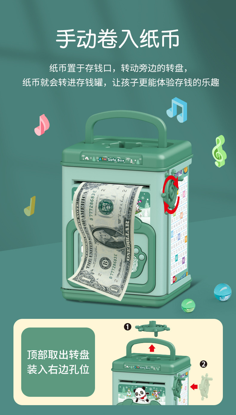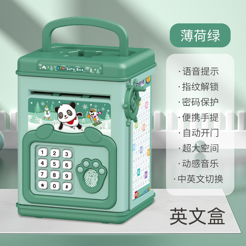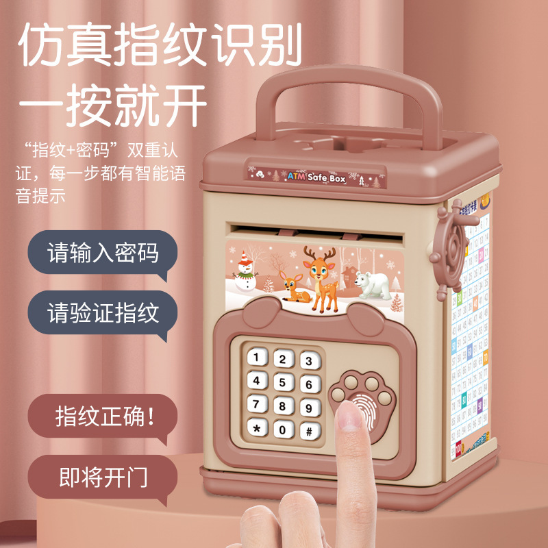 新款儿童存钱罐大容量多功能指纹密码箱自动感应卷钱男孩生日礼物