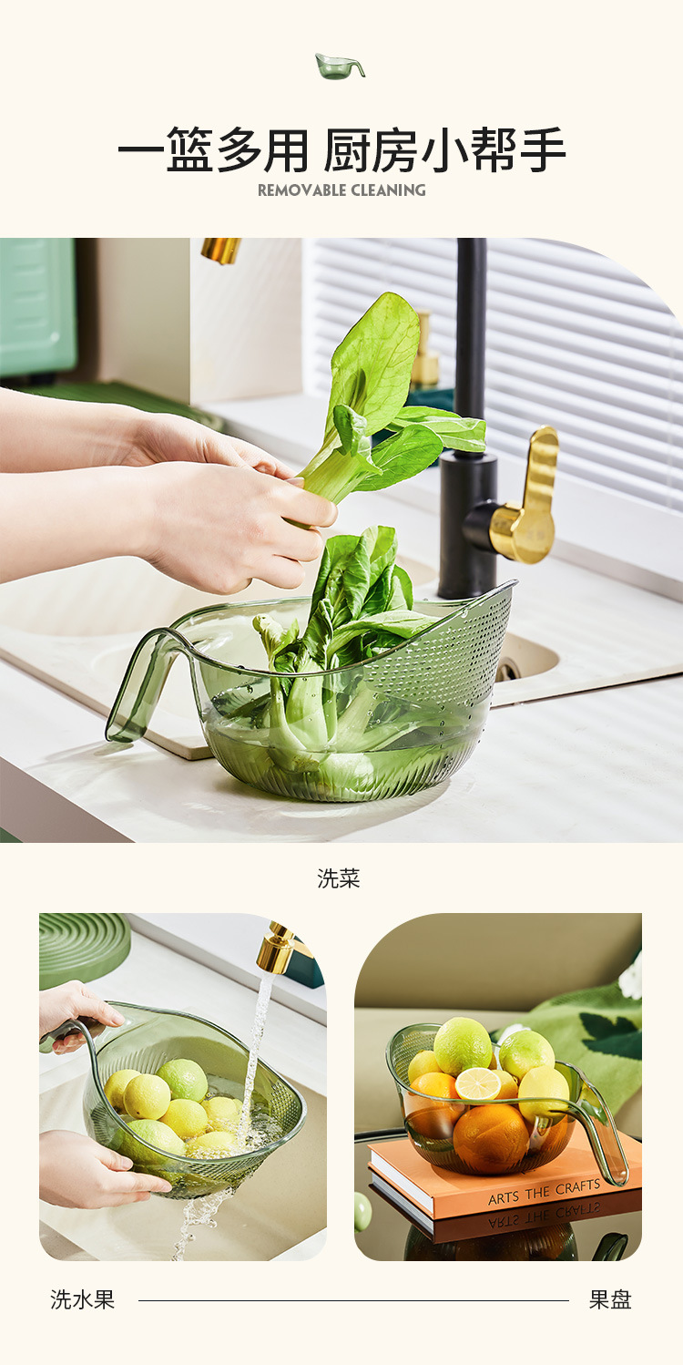淘米篮洗菜盆沥水篮子厨房用品家用带手柄水果盘洗米滤水淘米神器