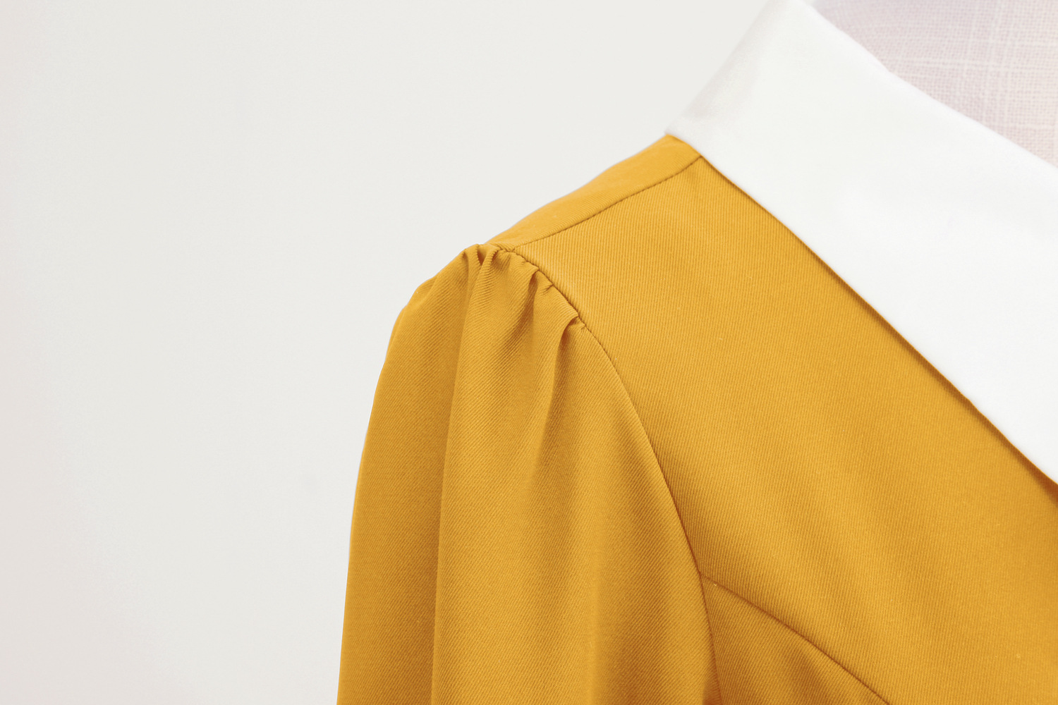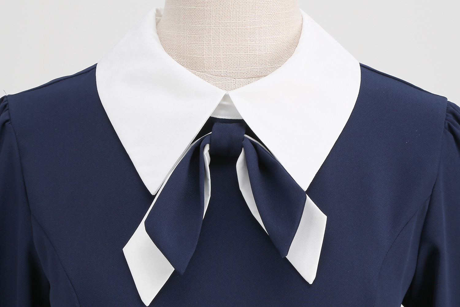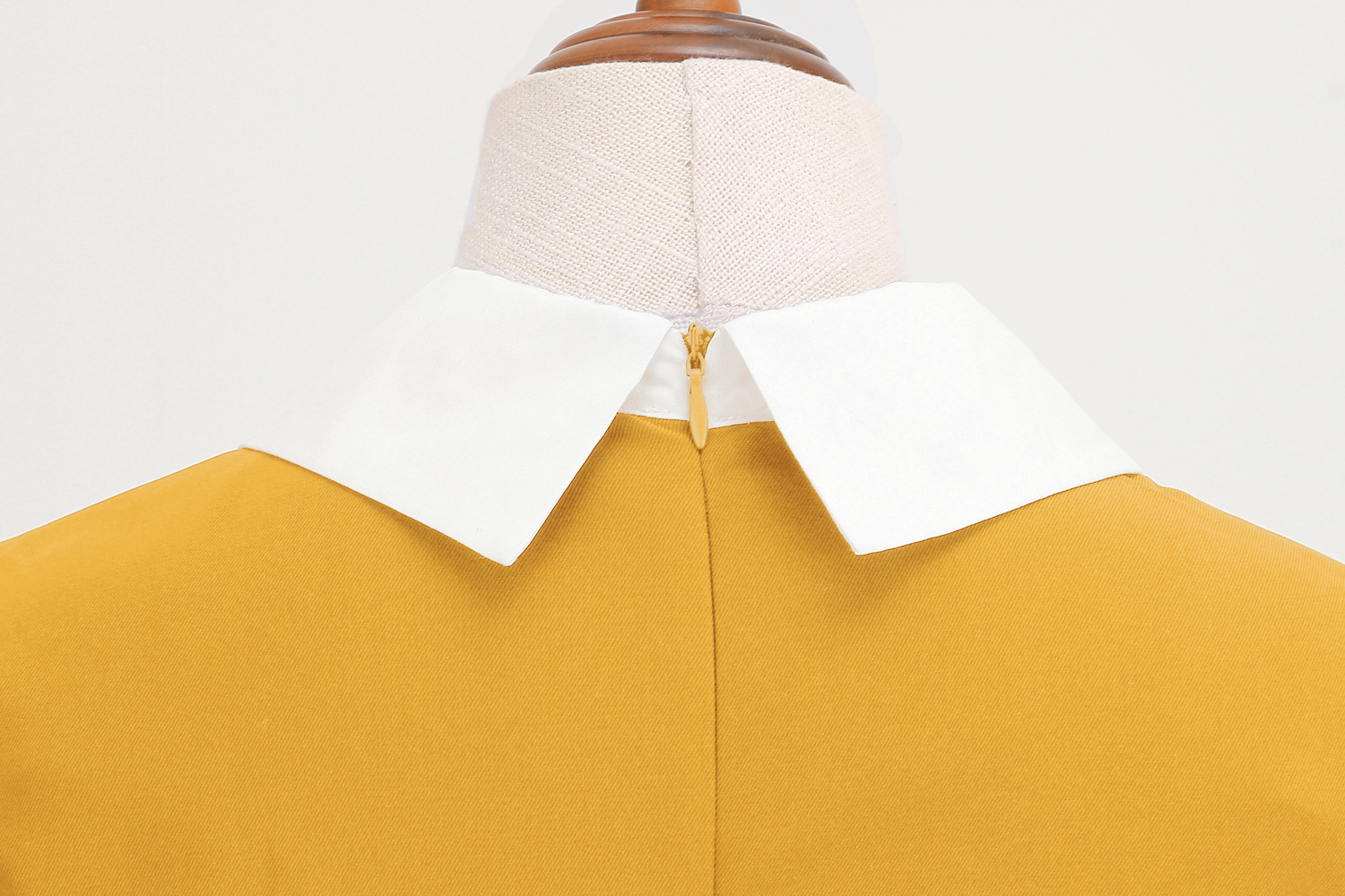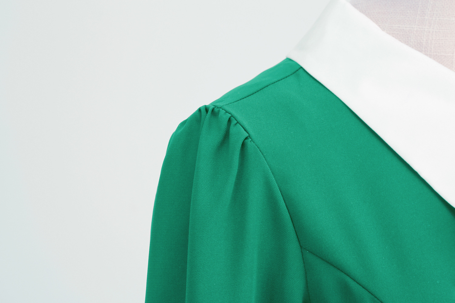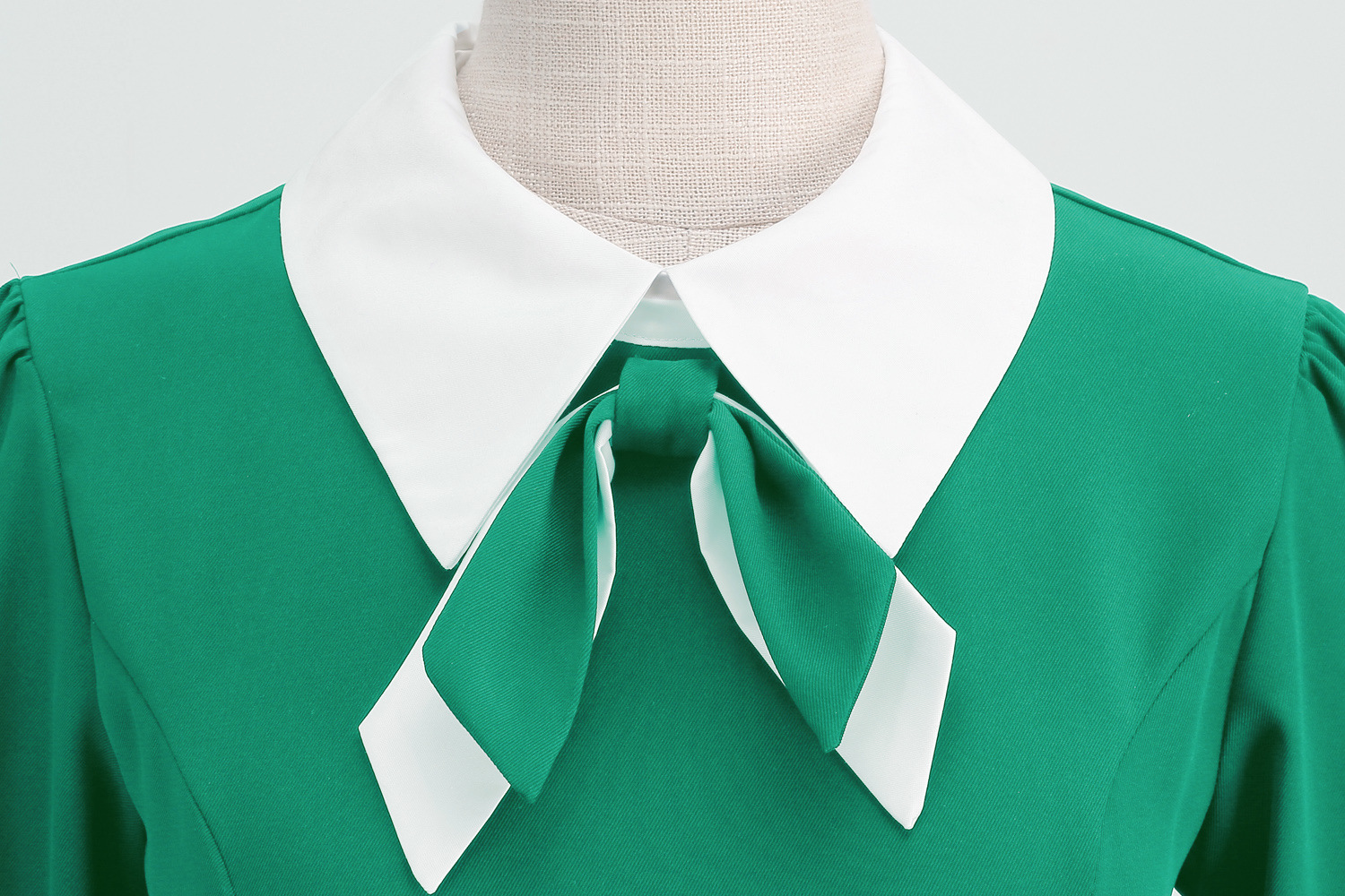 1950'S衬衣领蝴蝶结撞色复古大摆连衣裙白领通勤连衣裙约会小礼服