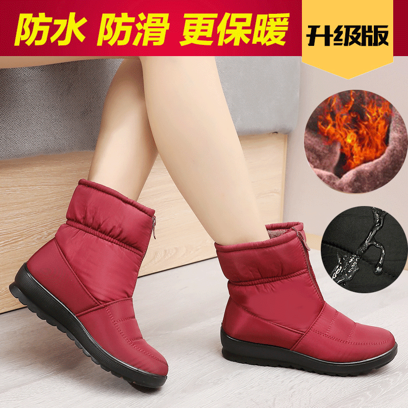 跨境大码冬季棉鞋女雪地靴短筒靴防水防滑中老年人加绒加厚妈妈鞋