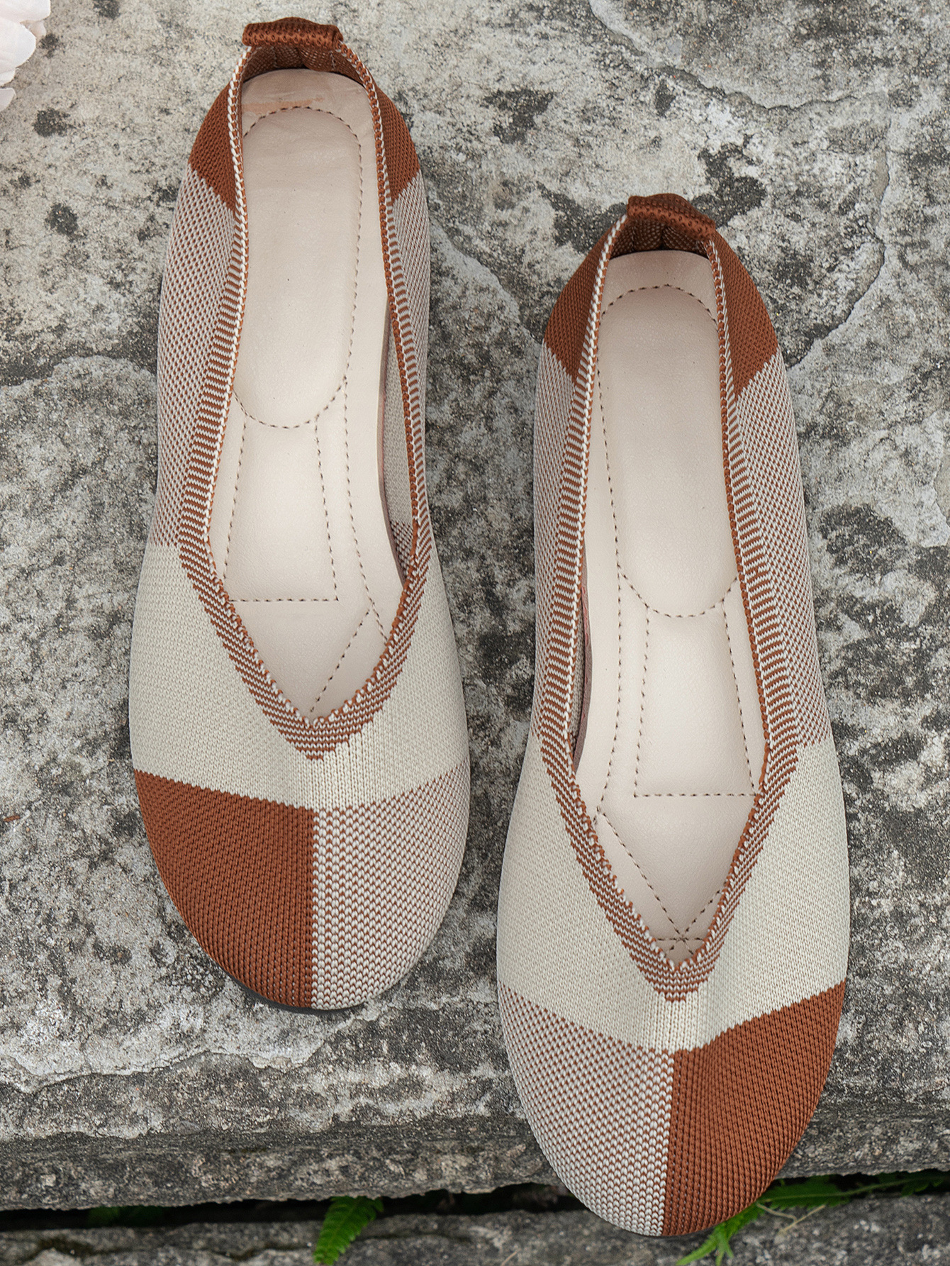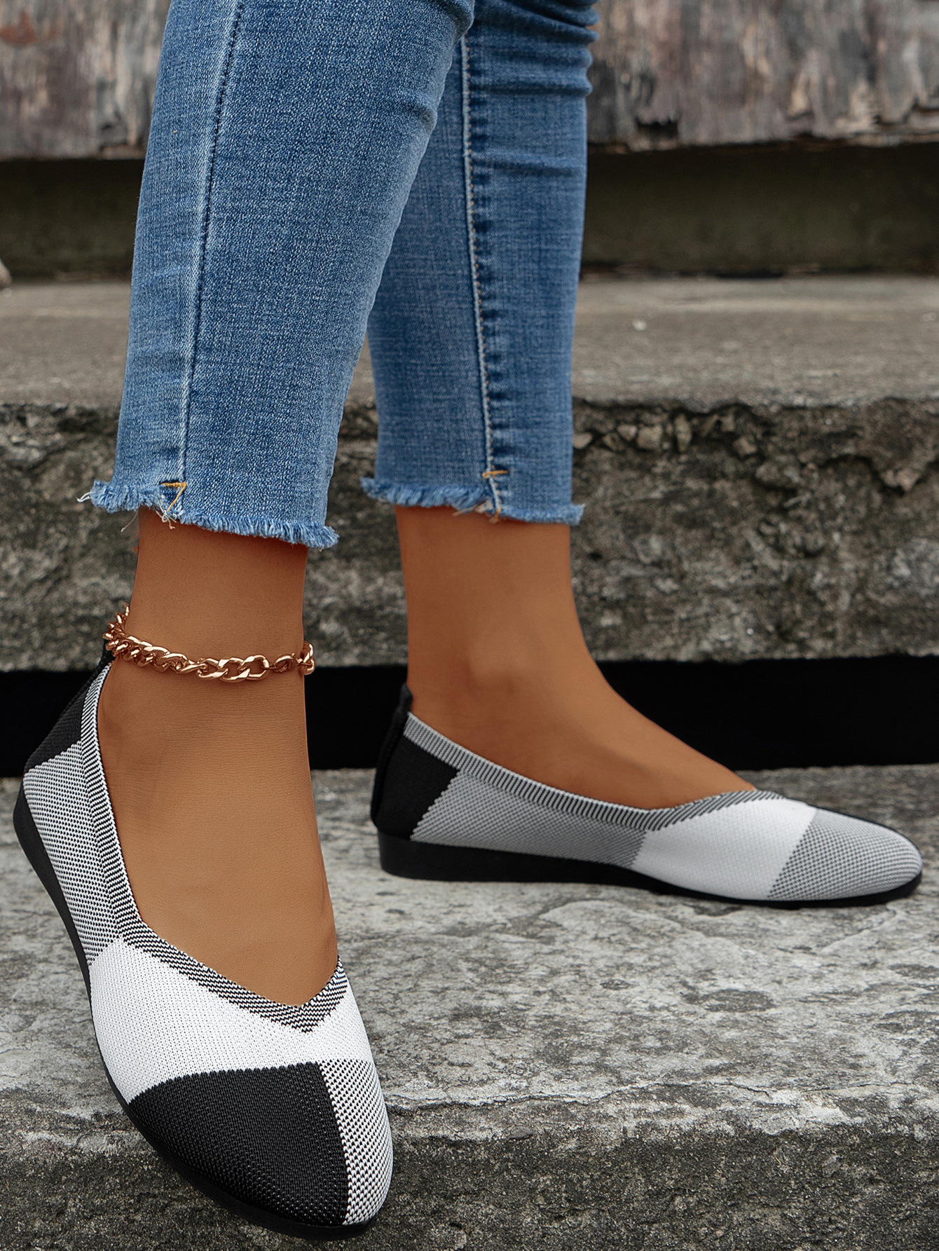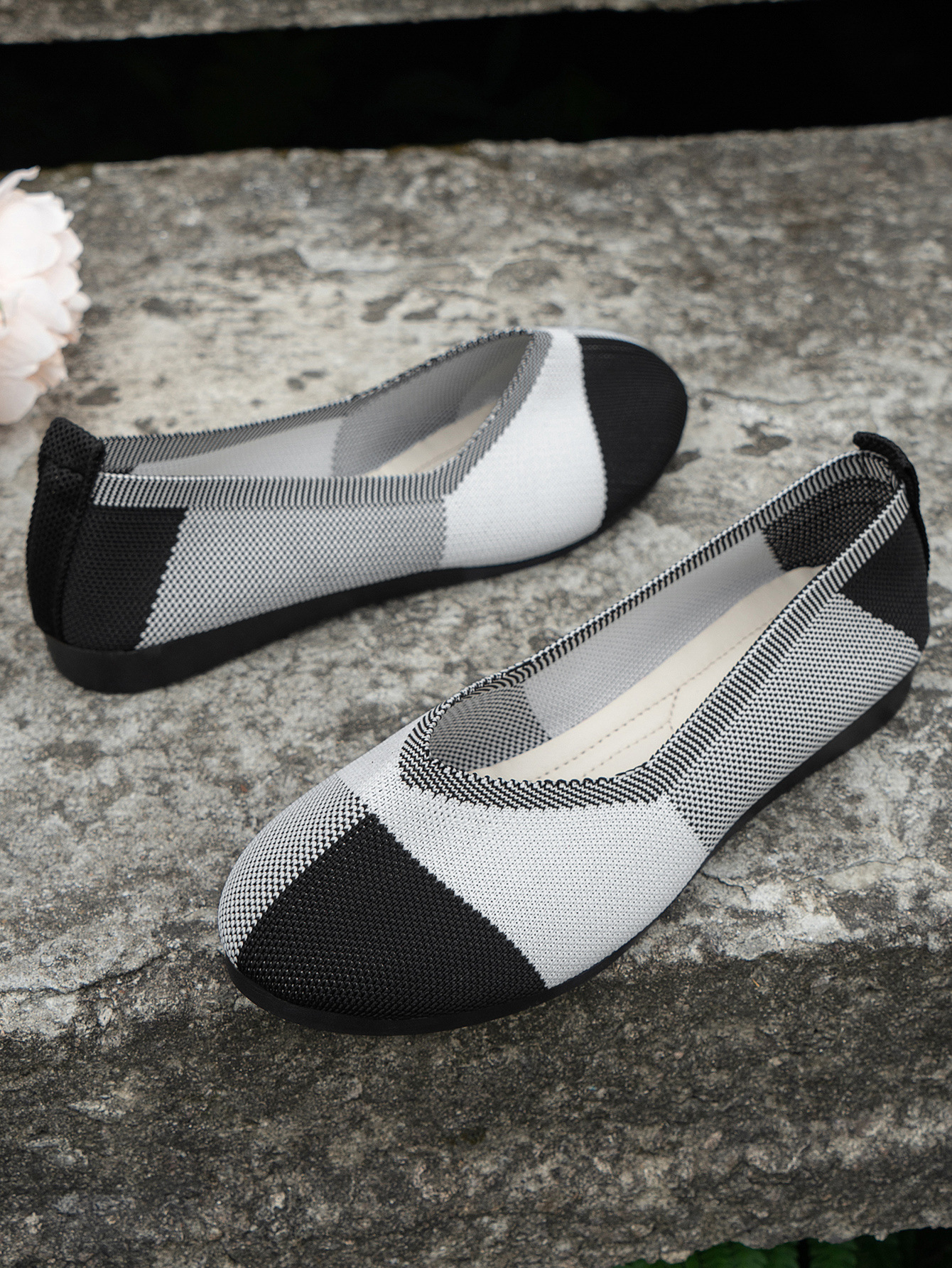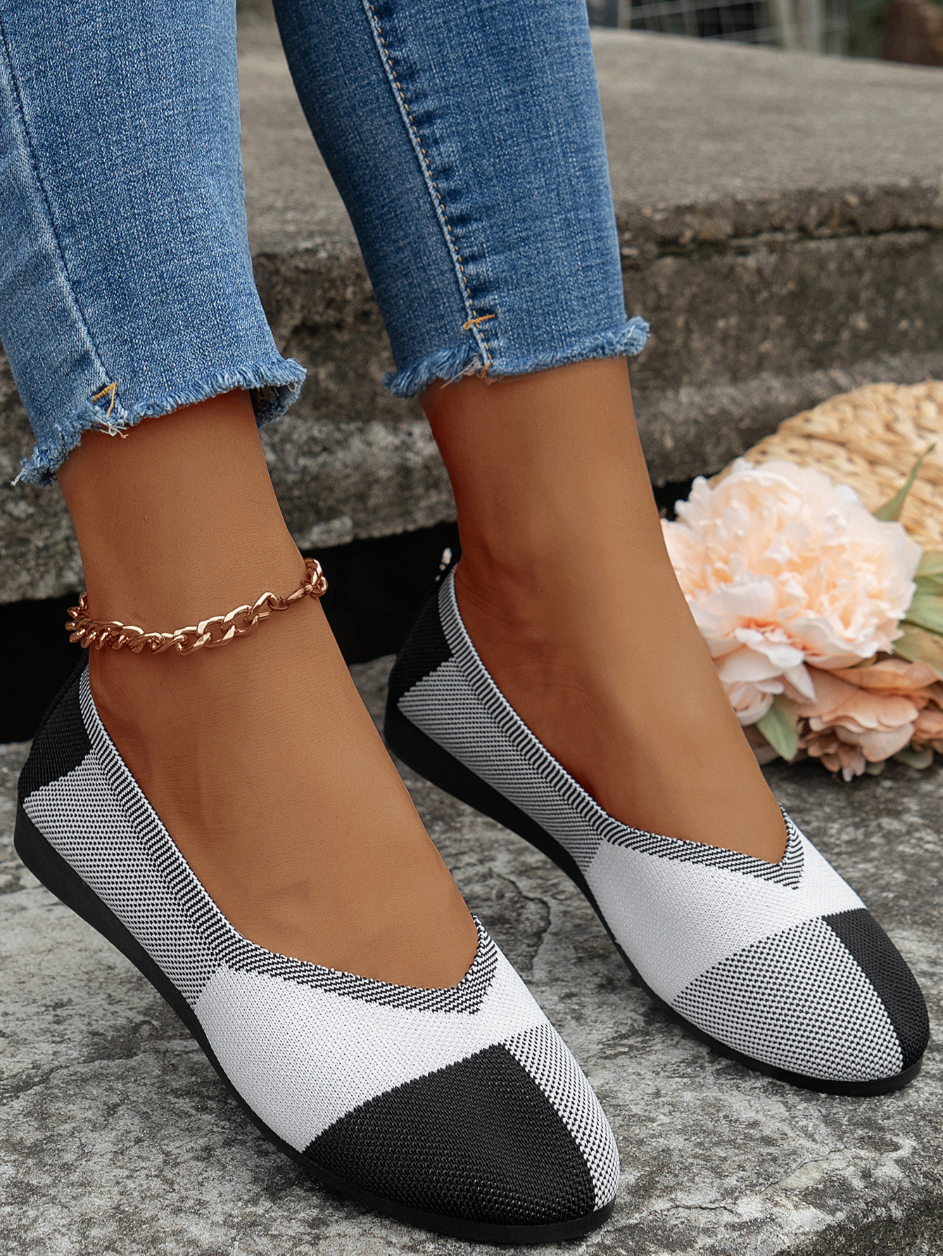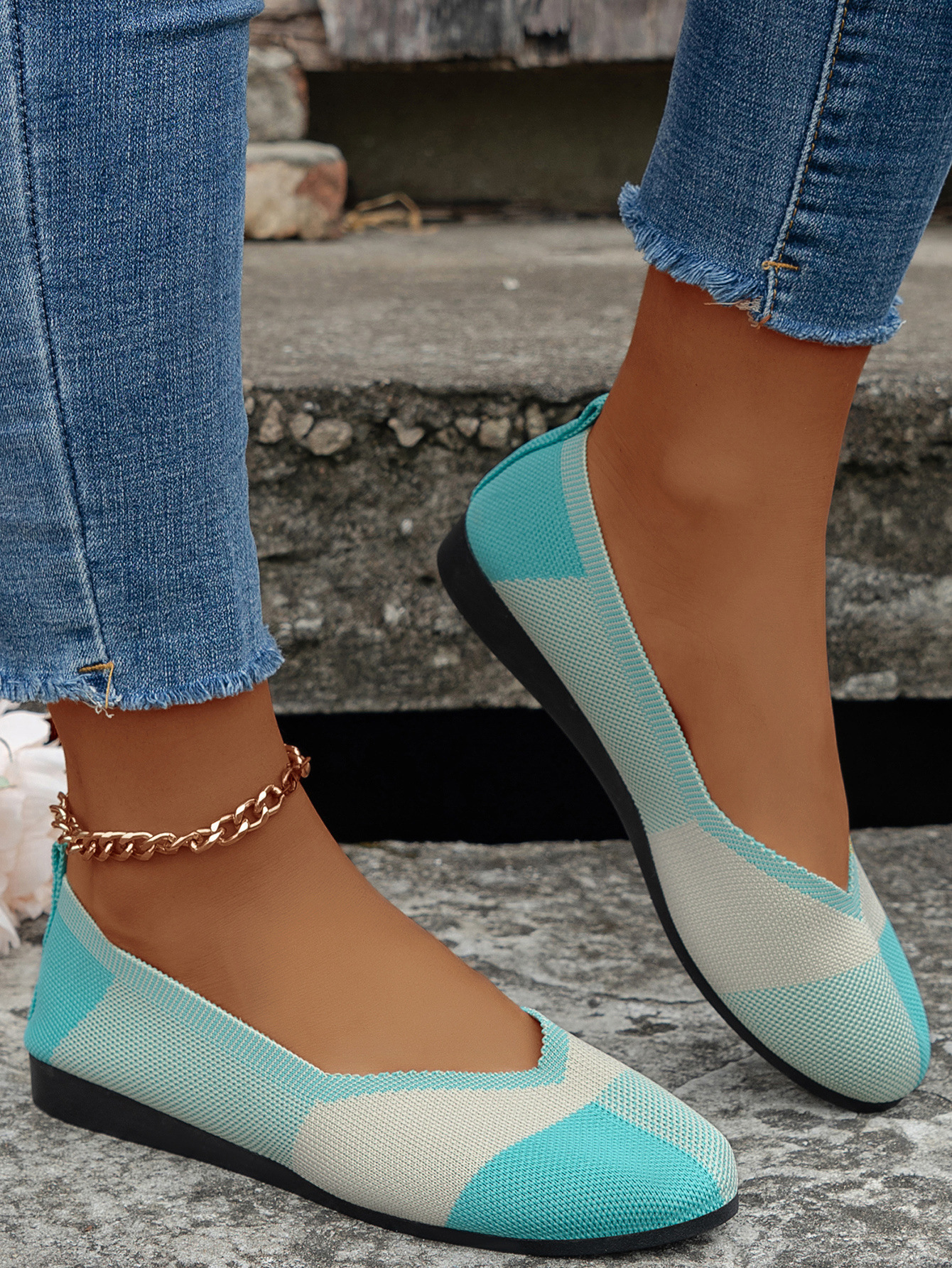 跨境外贸大码飞织拼色圆头休闲单鞋女跨境平底透气浅口新款豆豆鞋