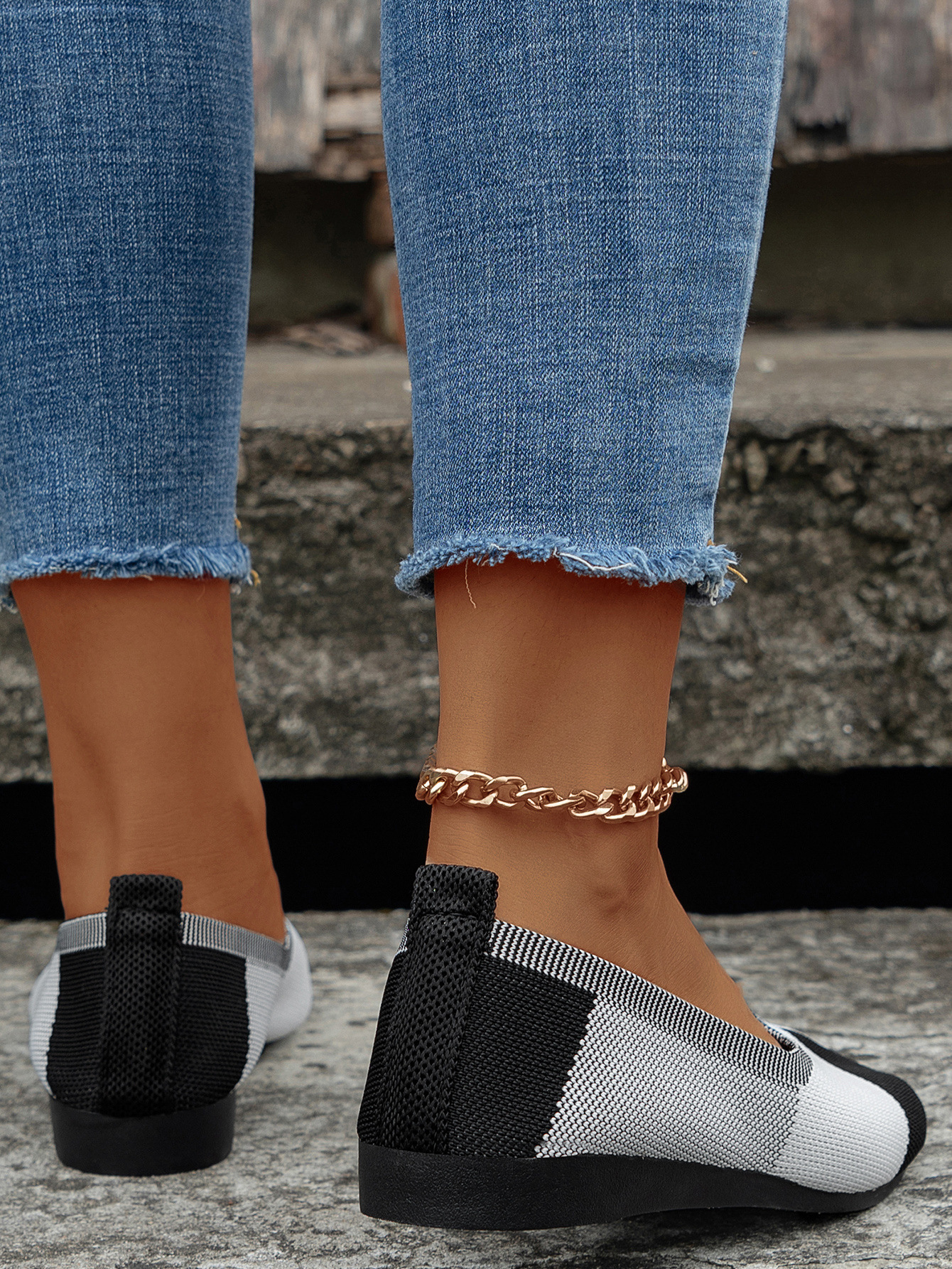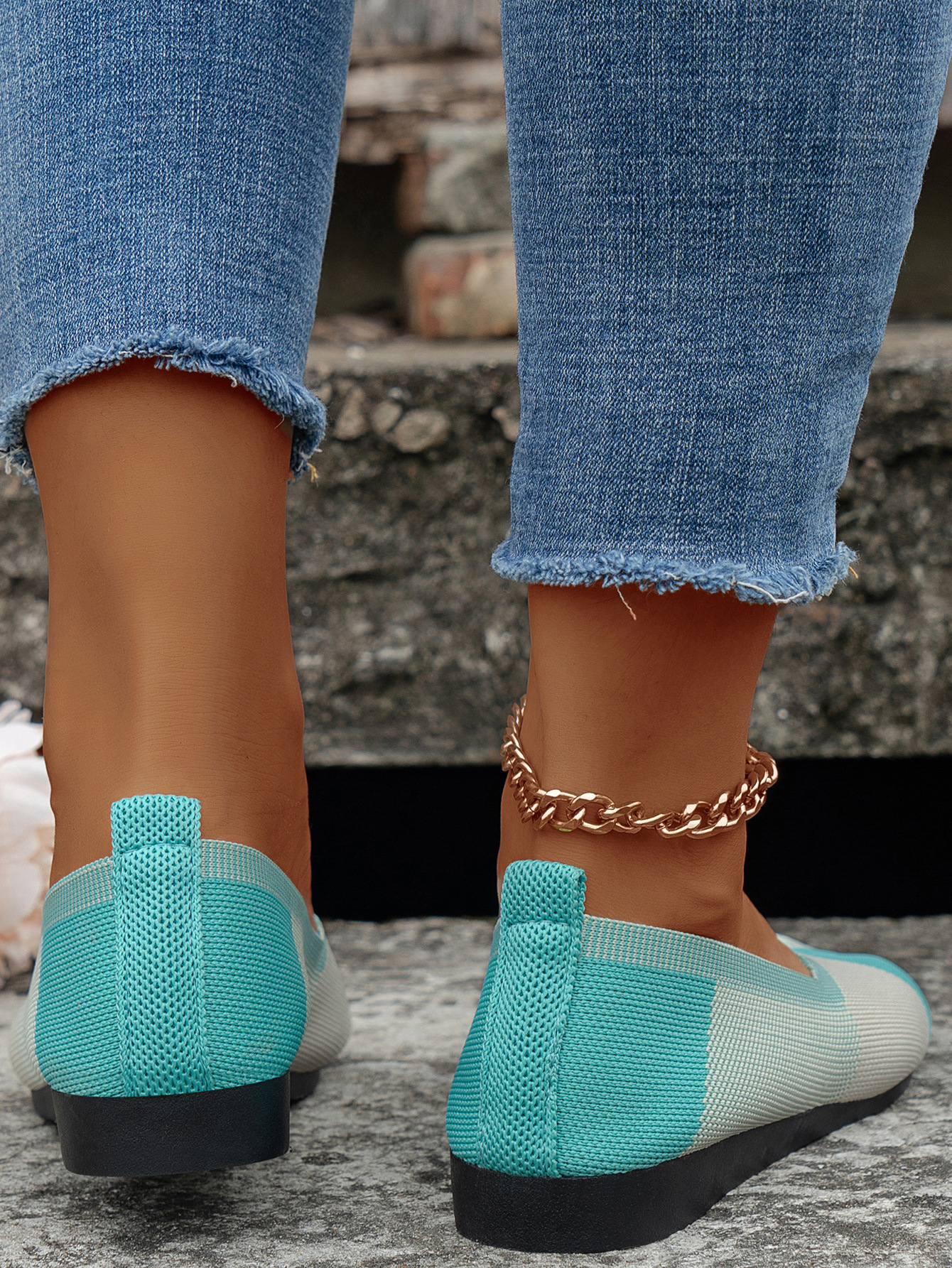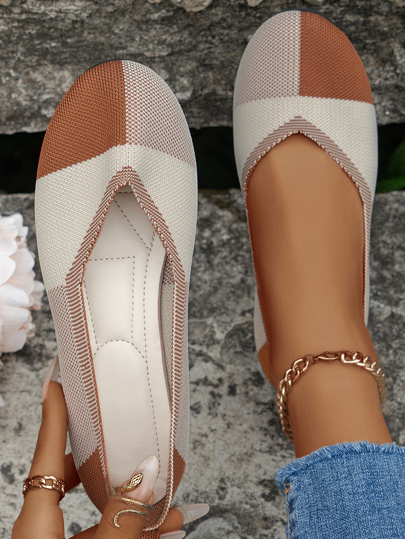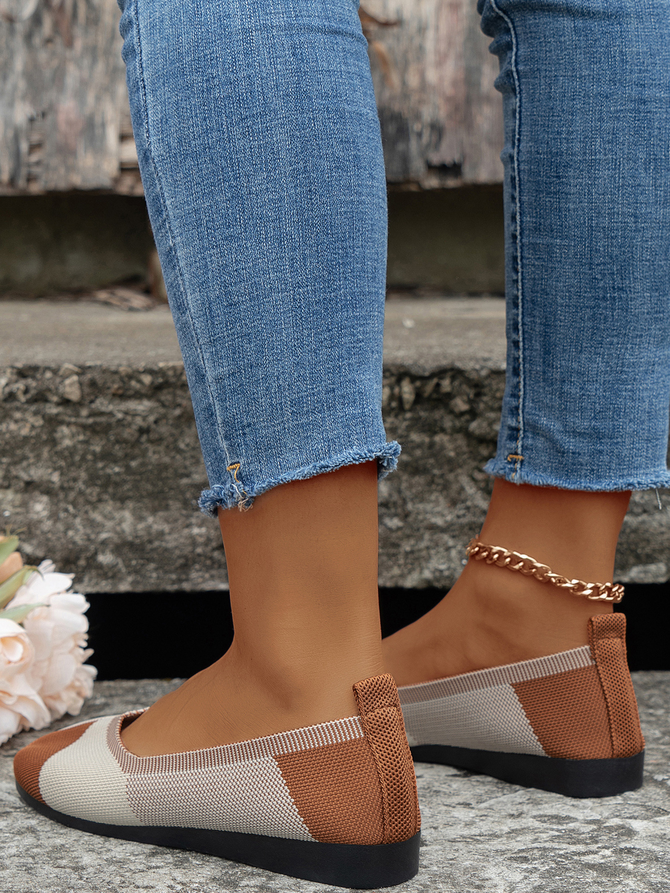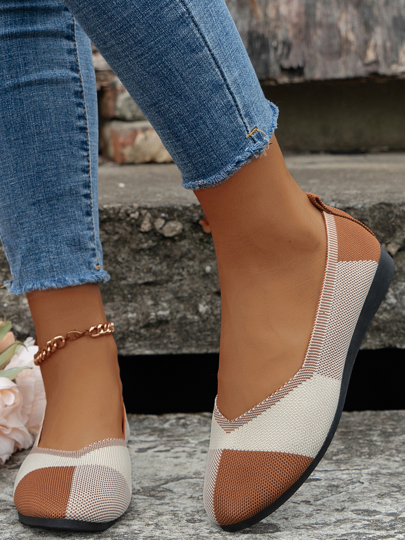 跨境外贸大码飞织拼色圆头休闲单鞋女跨境平底透气浅口新款豆豆鞋