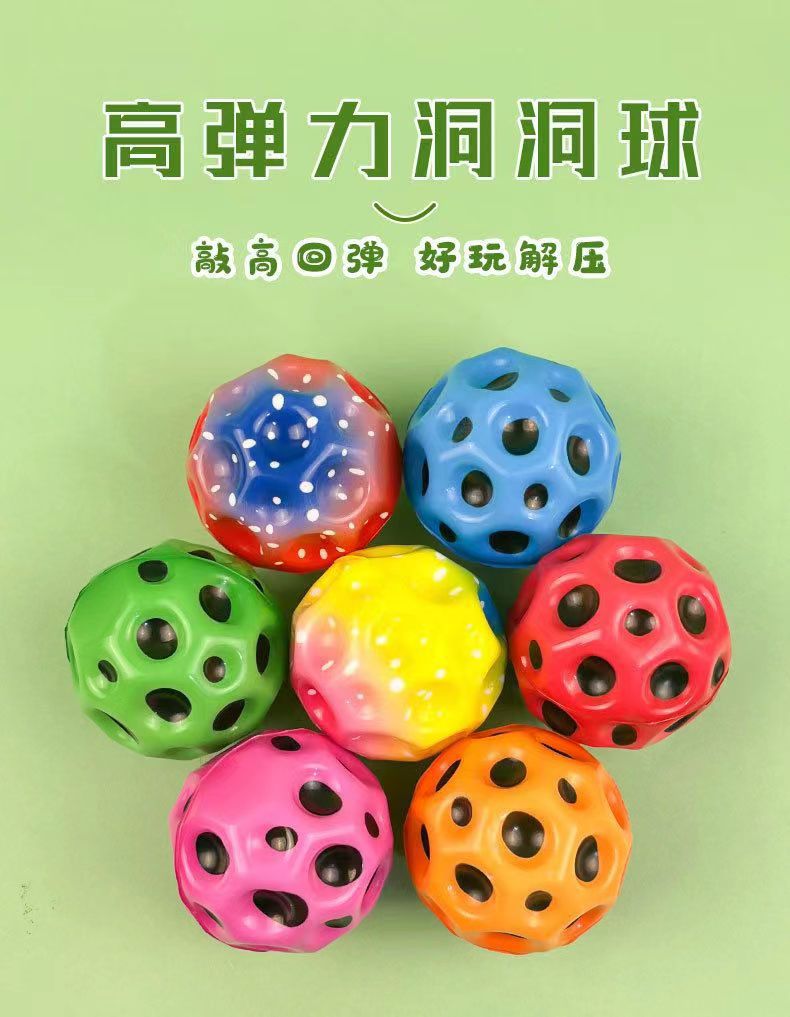 抖音解压高弹力洞洞球捏捏乐 减压玩具pu实心发泡球多孔球握力球