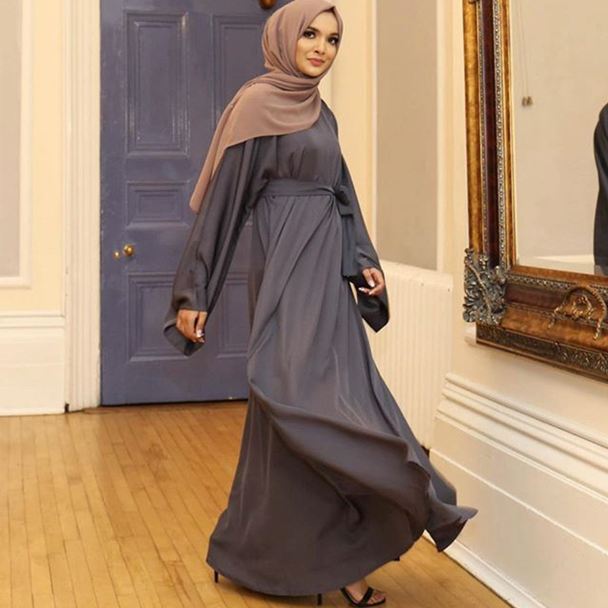 阿拉伯款秋季新款宽松腰四面弹长裙都市休闲纯色连衣裙