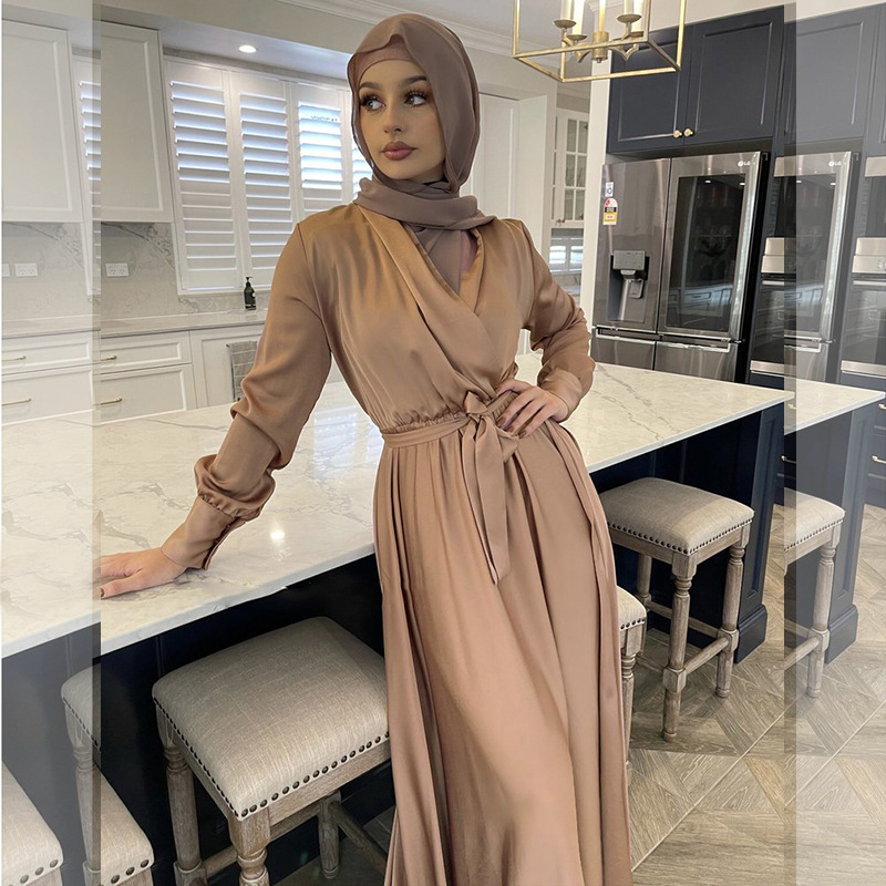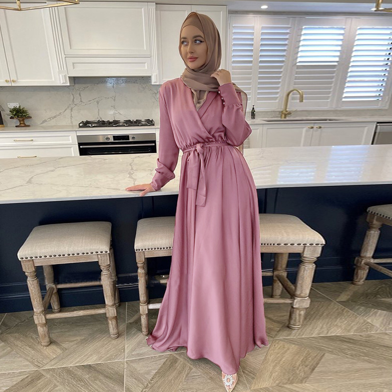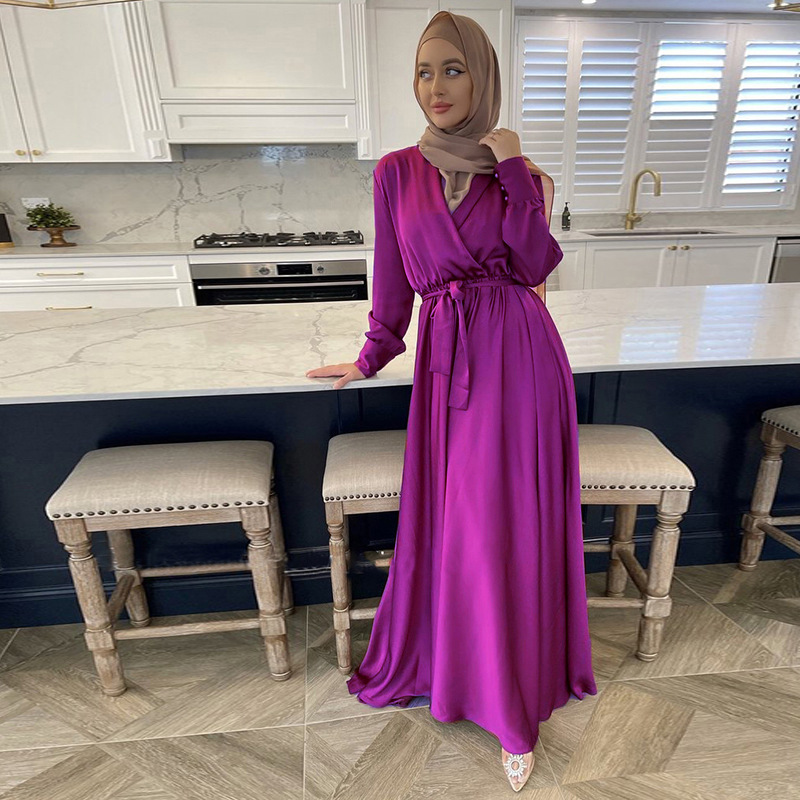 速卖通亚马逊Muslim中东ins阿拉伯迪拜绑带大摆长袍连衣裙007