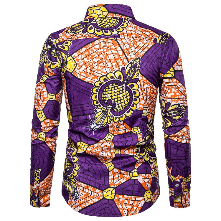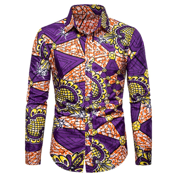 跨境2023秋冬男士长袖衬衫欧美非洲民族风印花衬衫男潮休闲花衬衣