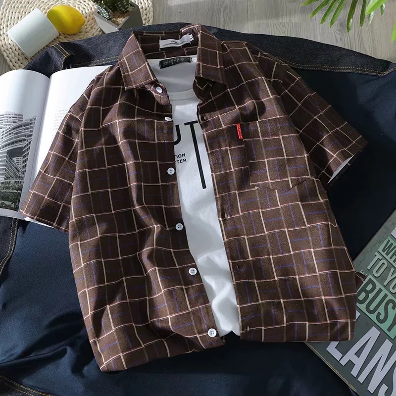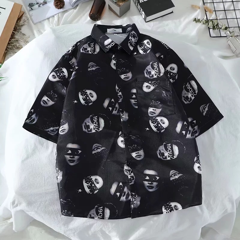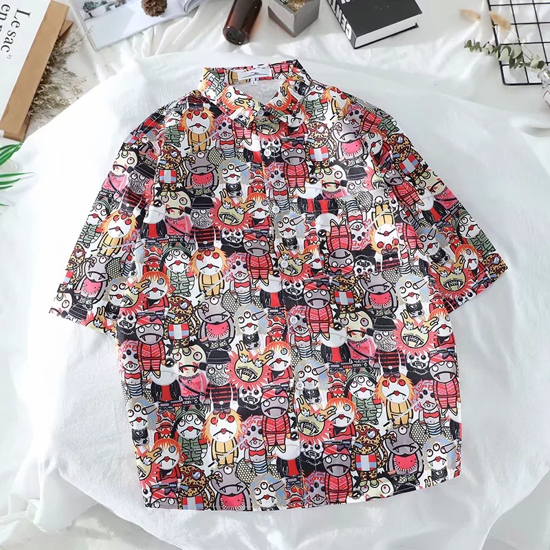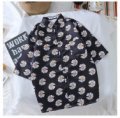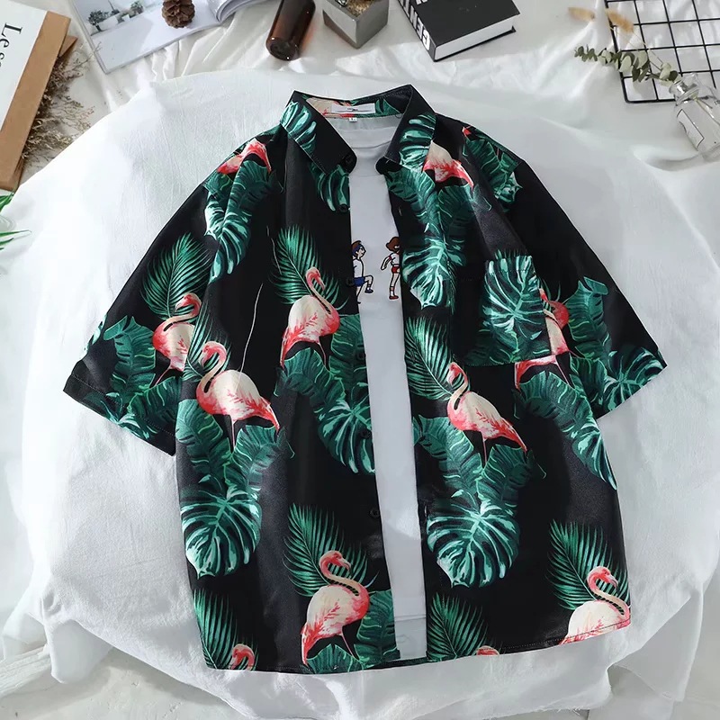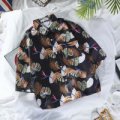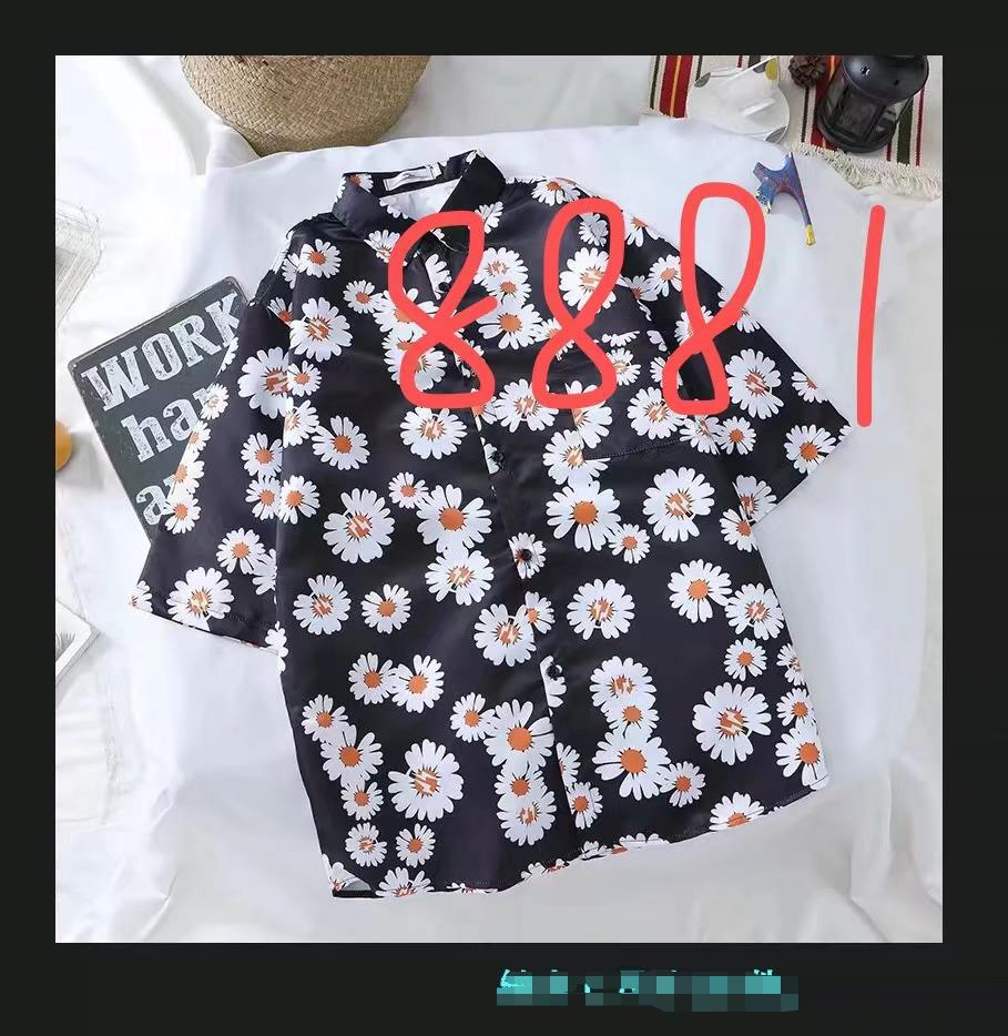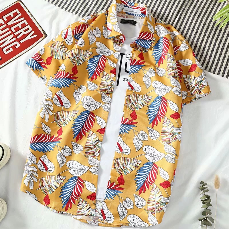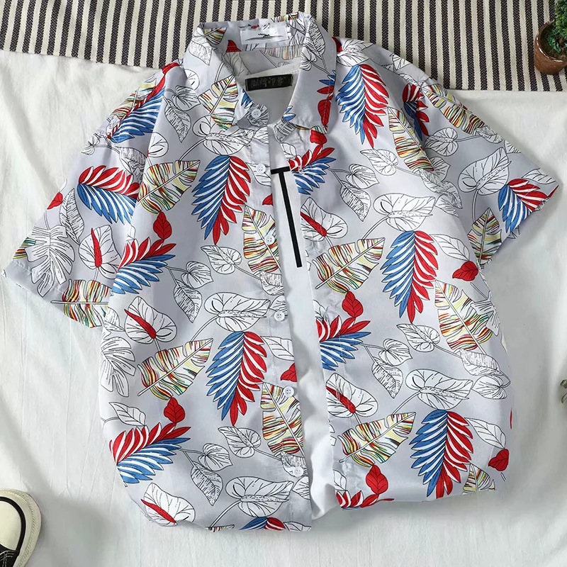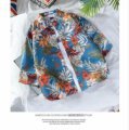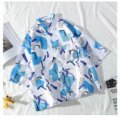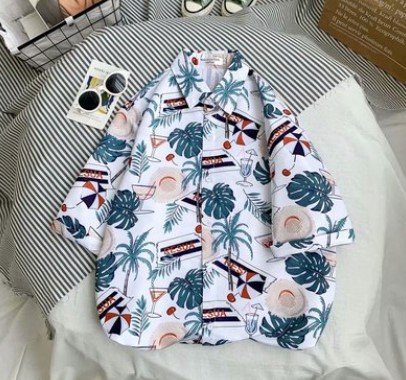 韩国复古树叶菠萝碎花情侣短袖衬衫夏日百搭男女同款沙滩海边衬衣