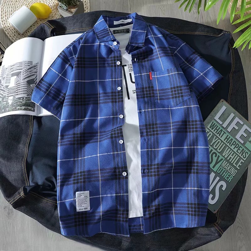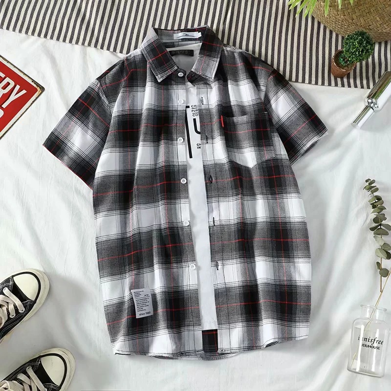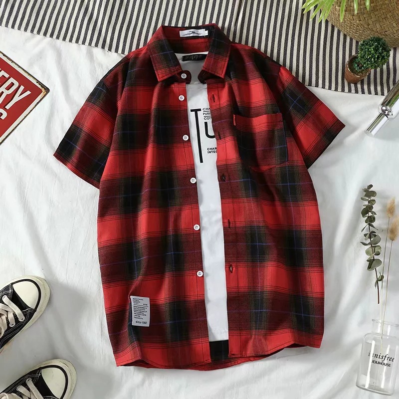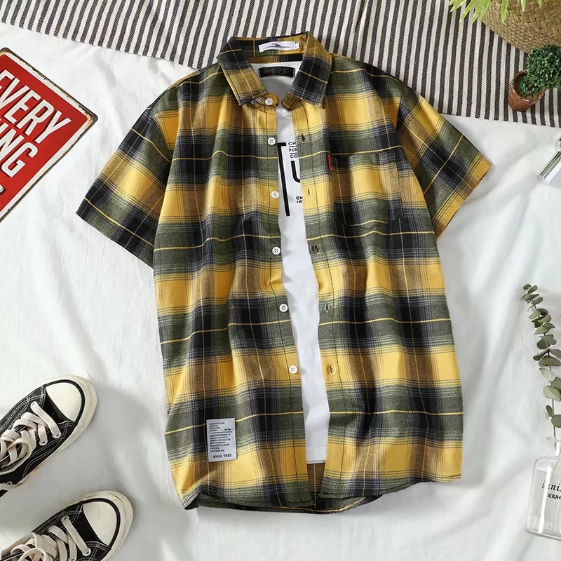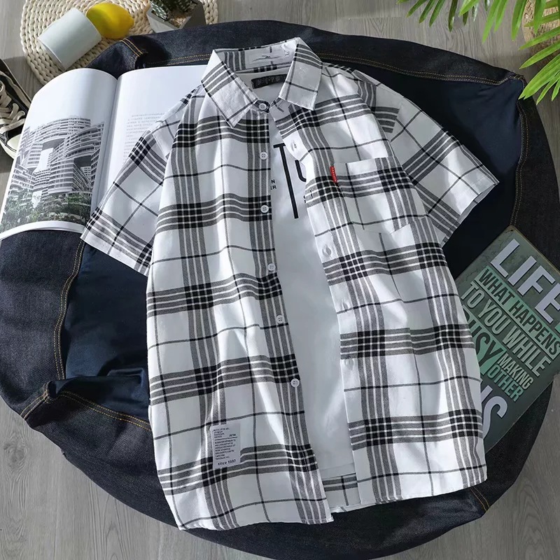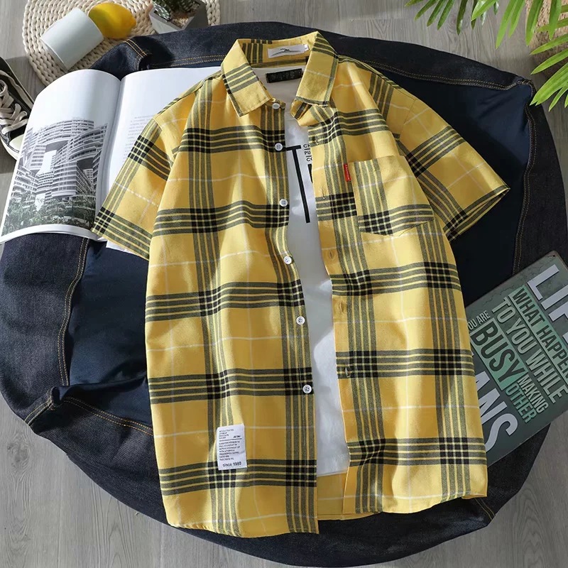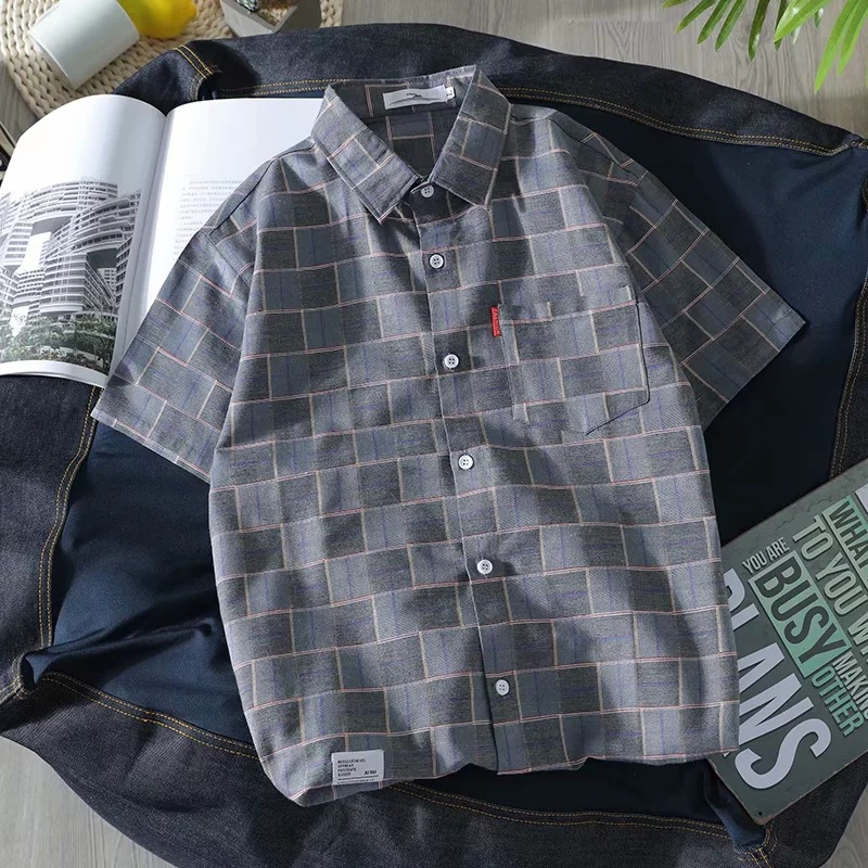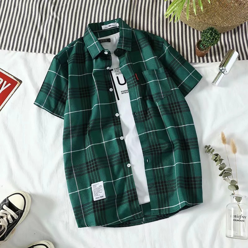 韩国复古树叶菠萝碎花情侣短袖衬衫夏日百搭男女同款沙滩海边衬衣