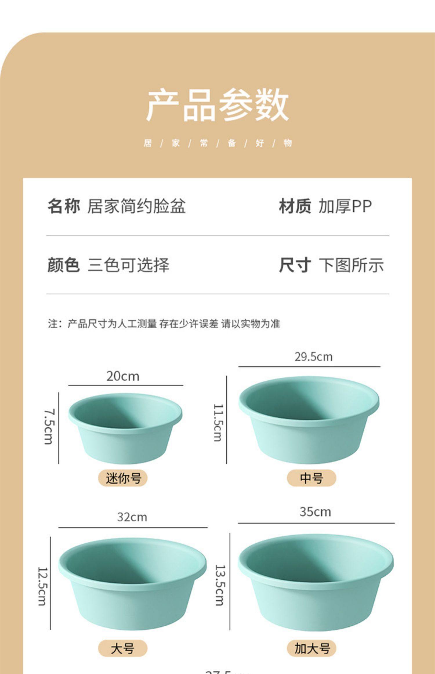 新款加厚洗脸盆家用塑料学生宿舍可爱脸盆磨砂防滑洗衣盆洗菜盆子