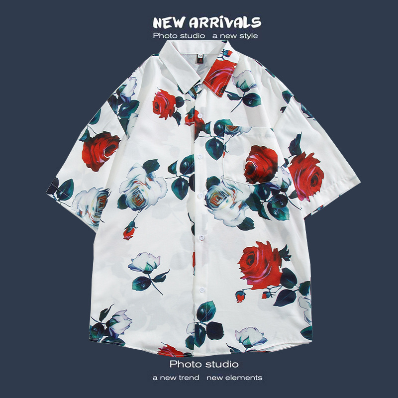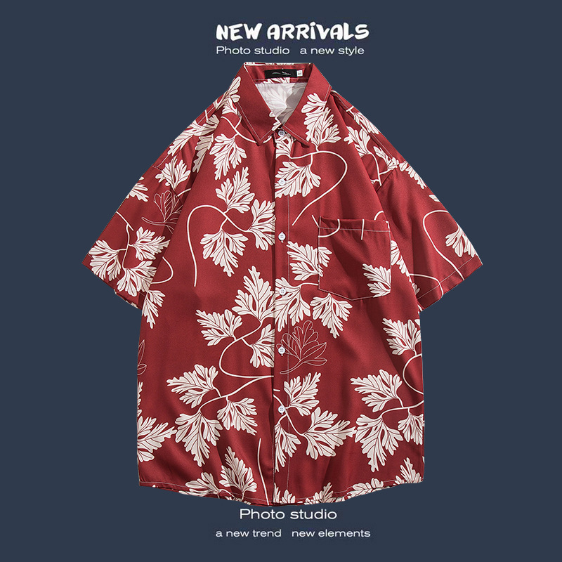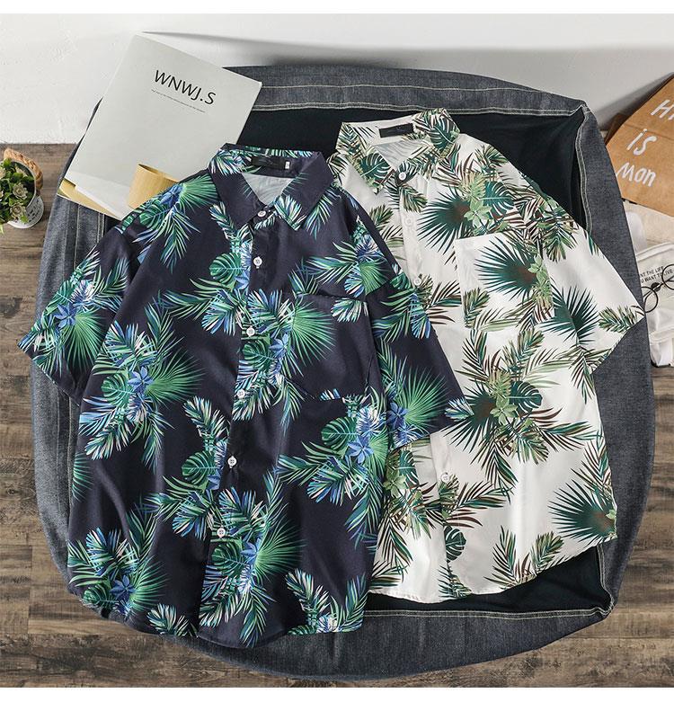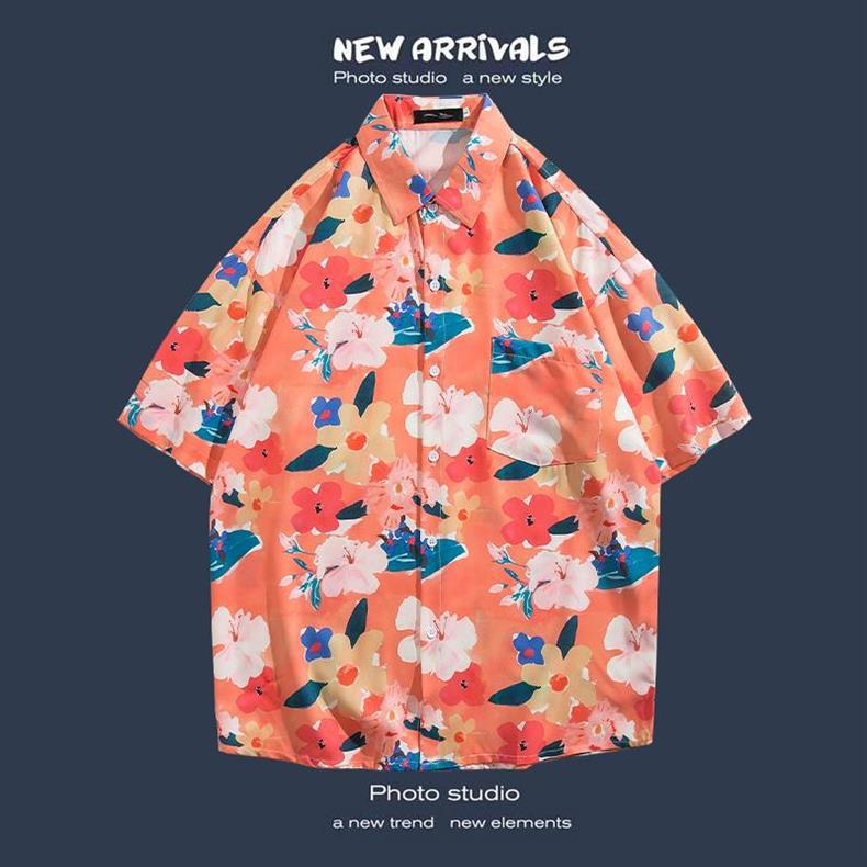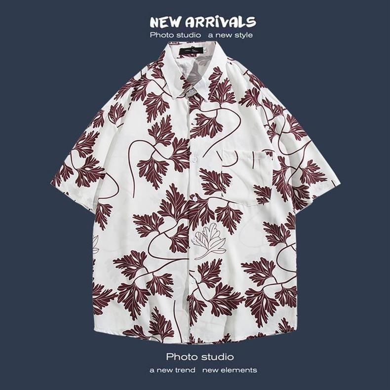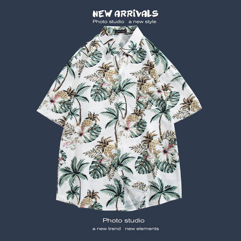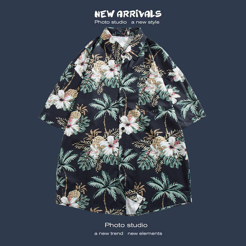 夏威夷泰式花衬衫男短袖夏季情侣装潮牌海边碎花衬衫三亚旅行穿搭