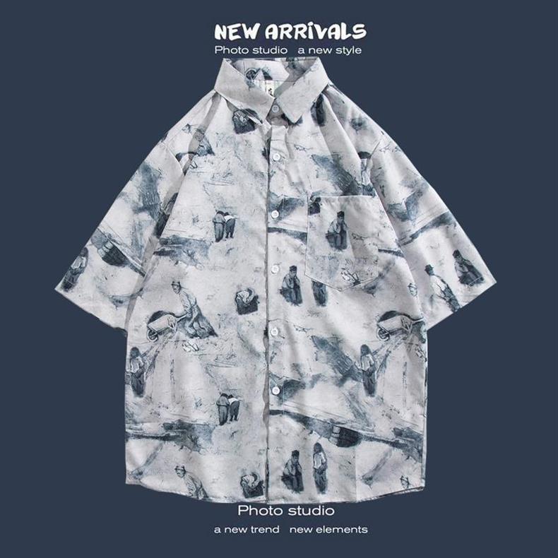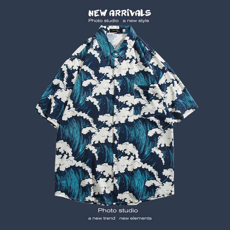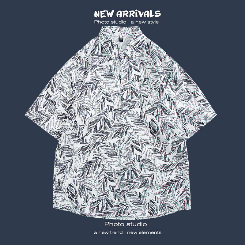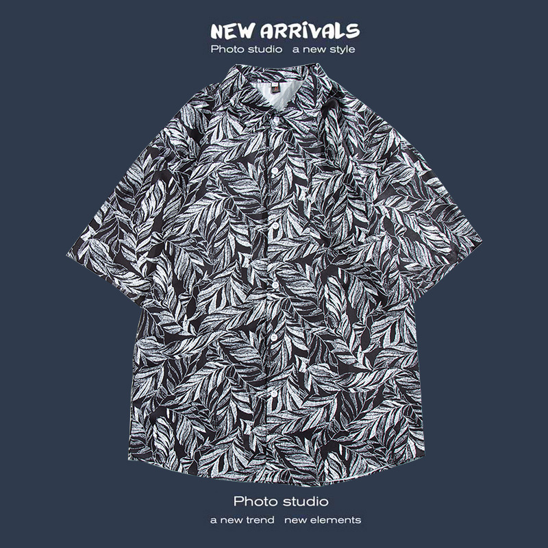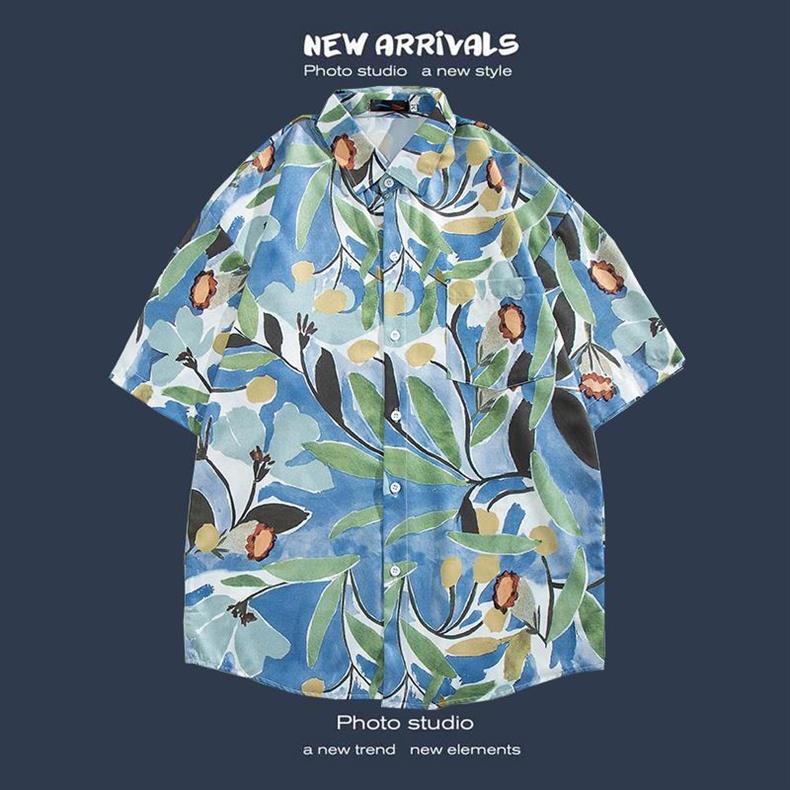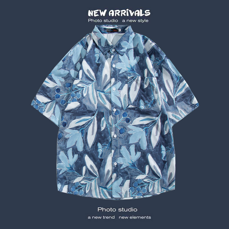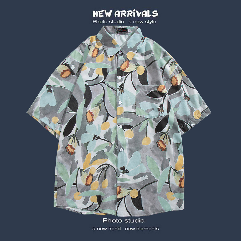 夏威夷泰式花衬衫男短袖夏季情侣装潮牌海边碎花衬衫三亚旅行穿搭