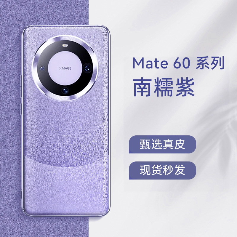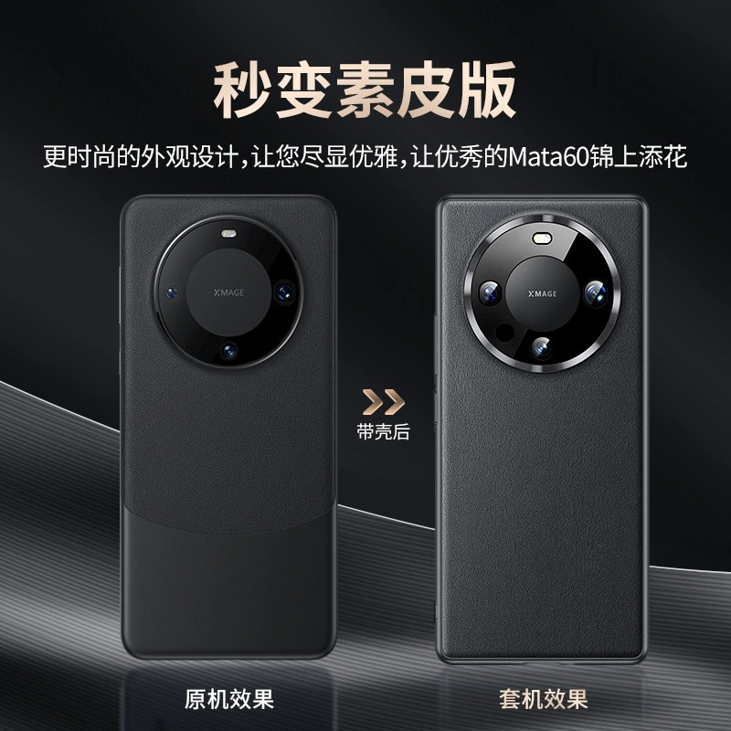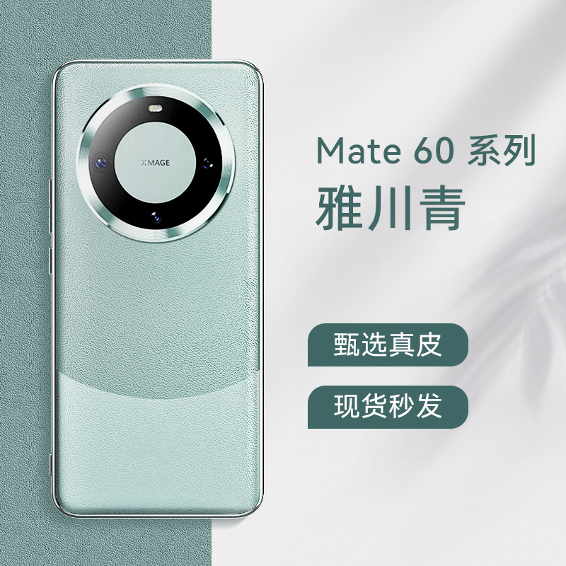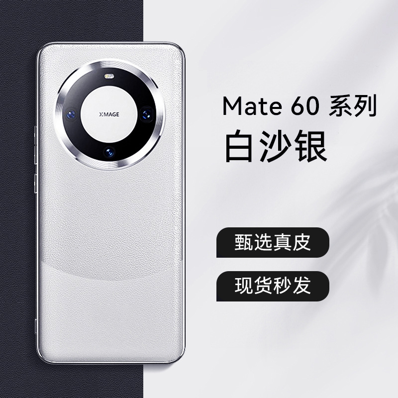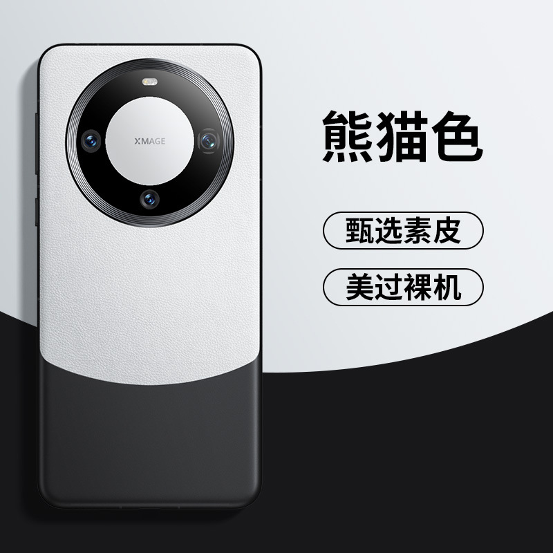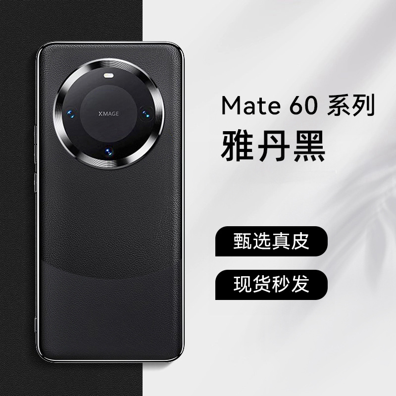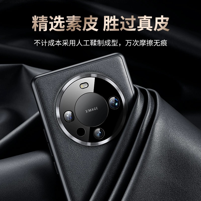 适用华为Mate60Pro+手机壳双色素皮MT40镜头全包真皮防摔保护套50
