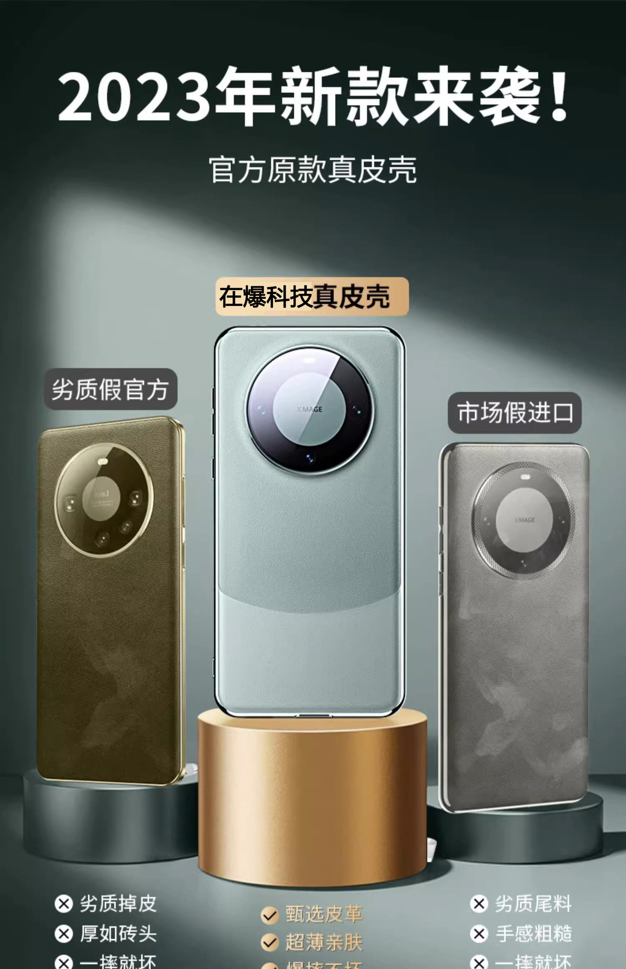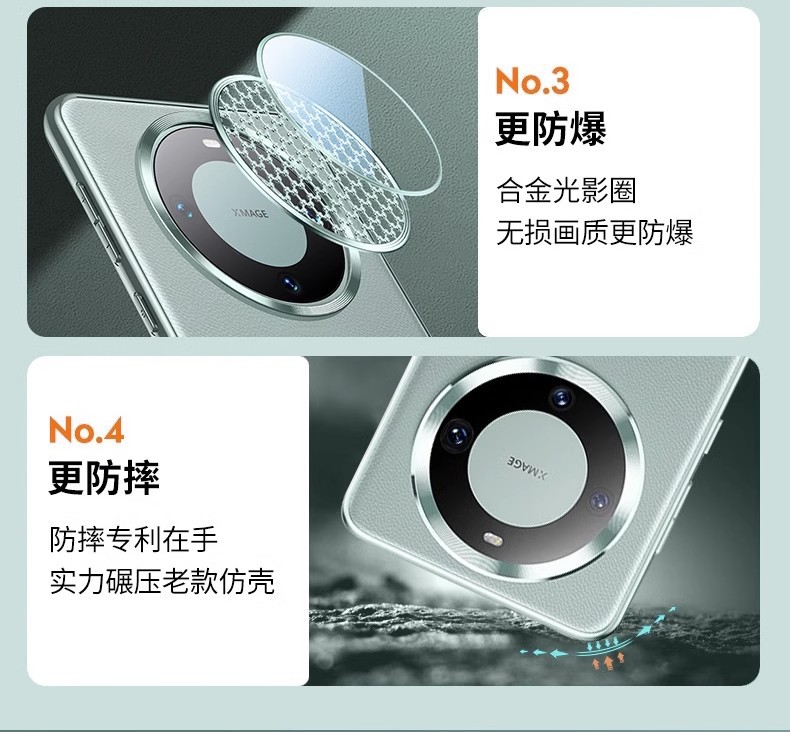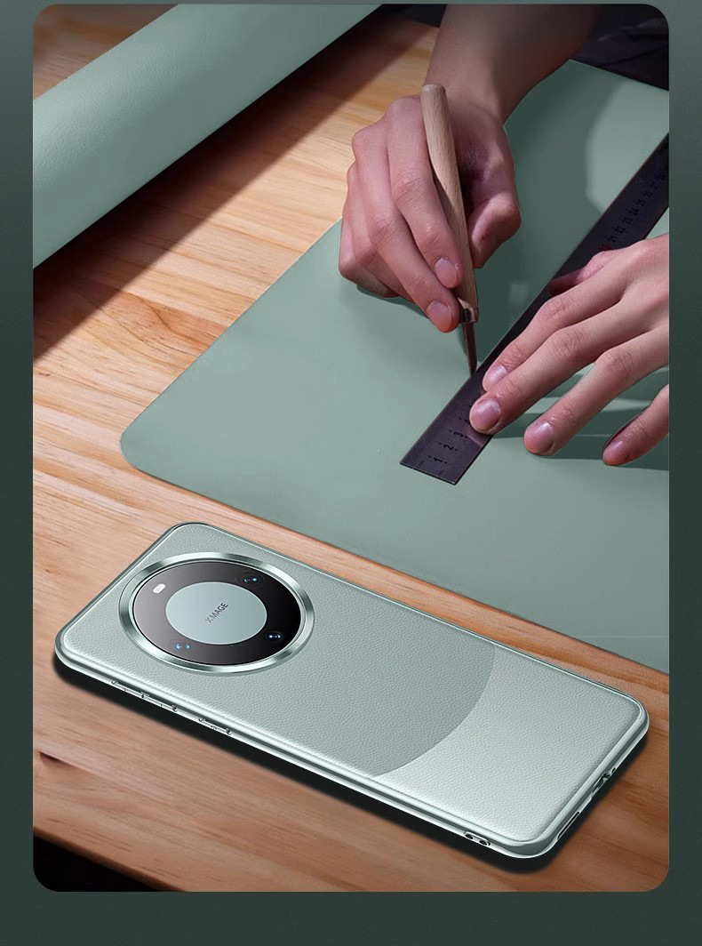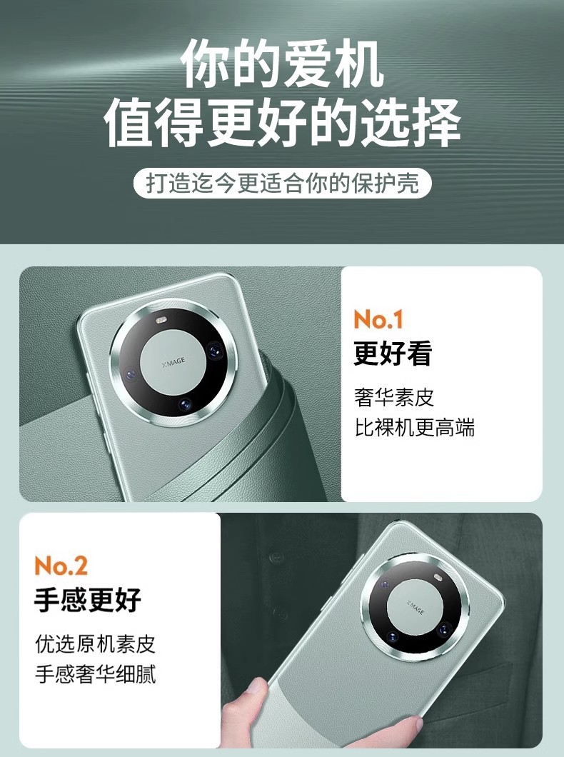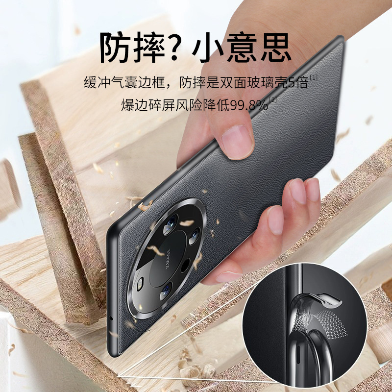 适用华为Mate60Pro+手机壳双色素皮MT40镜头全包真皮防摔保护套50