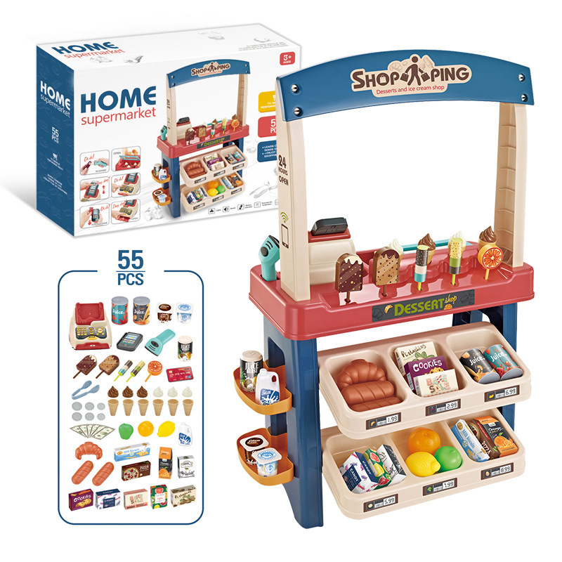 跨境儿童仿真雪糕冰淇淋购物超市台扫描刷卡收银台组合过家家玩具