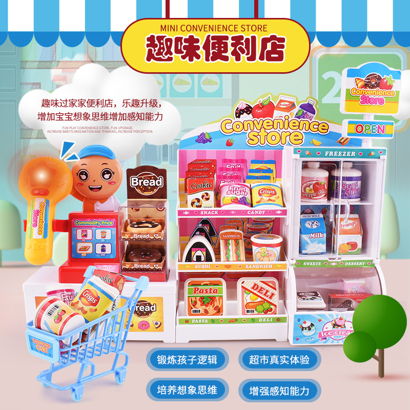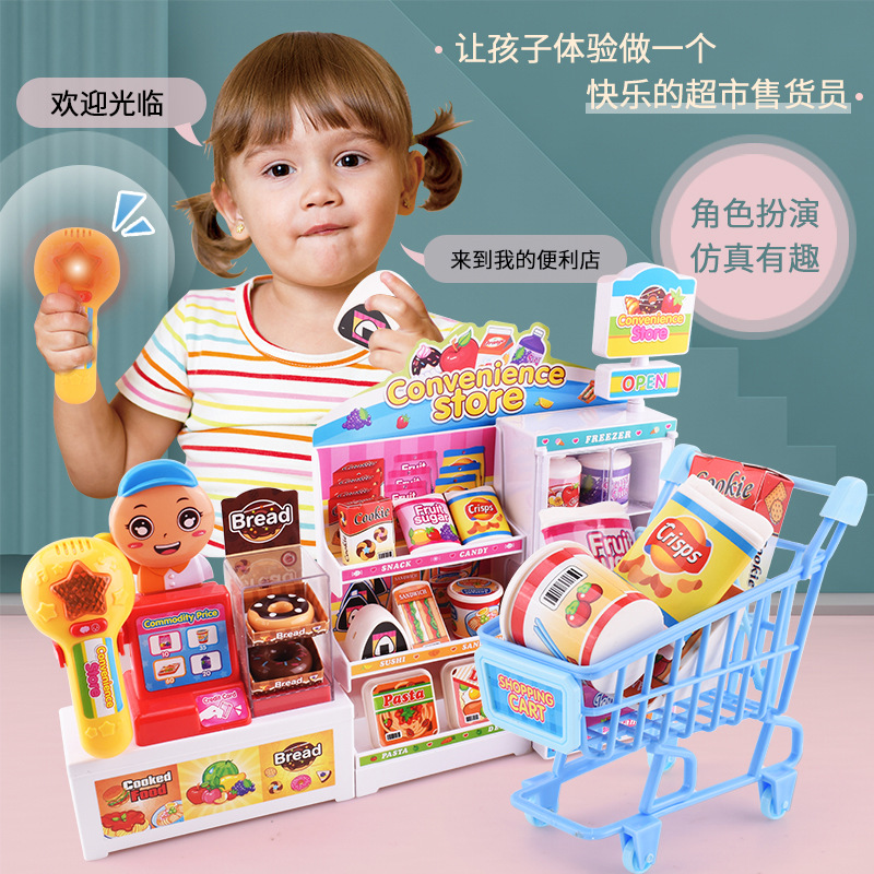 儿童超市收银机过家家玩具女孩面包饮料超人冰淇淋食玩迷你便利店