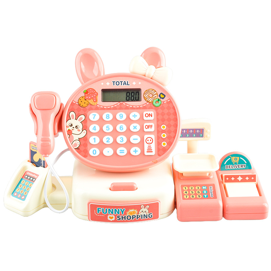 新品兔子收银机套装过家家超市仿真收银台真实计算器电动音乐玩具