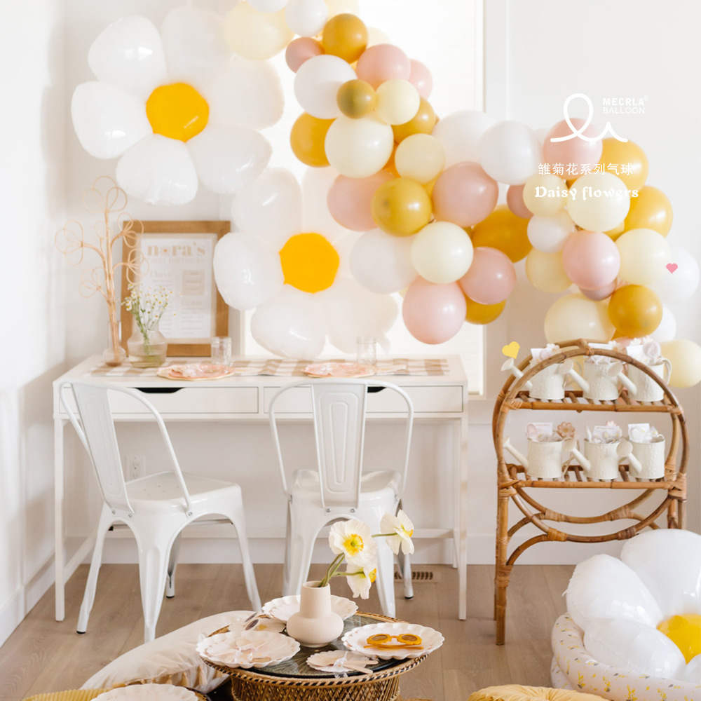 INS风韩系新款笑脸雏菊太阳花网红拍照道具跨境派对装饰铝膜气球