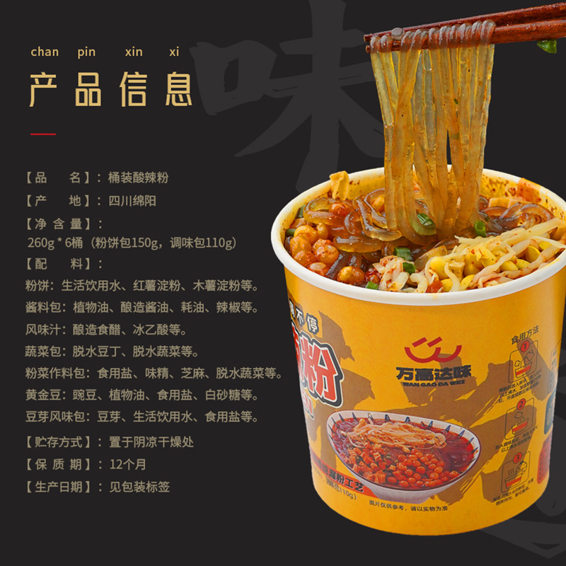 麻六记同款6桶装重庆酸辣粉红薯粉方便速食定制贴牌代加工厂家直