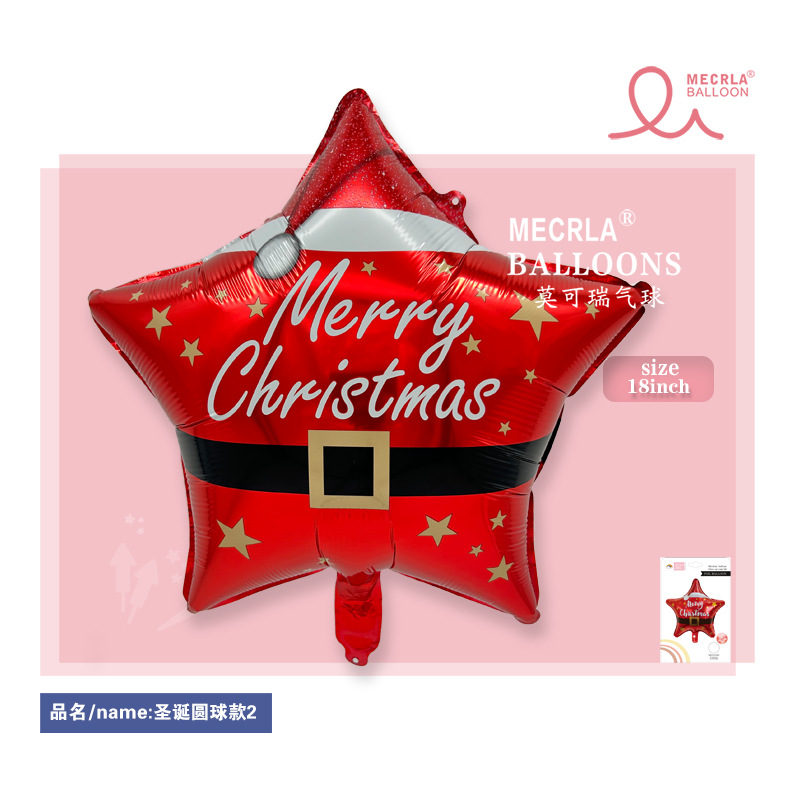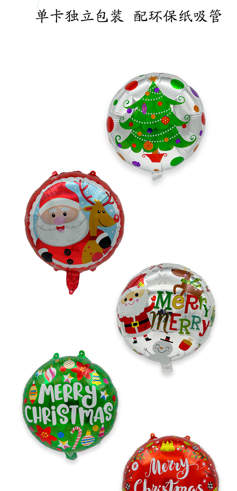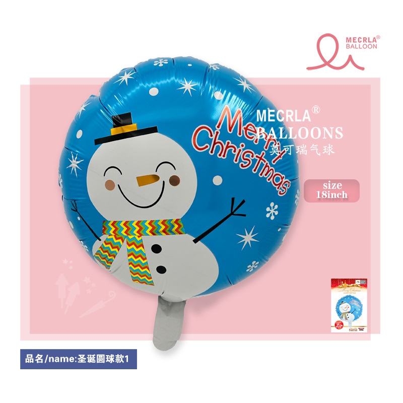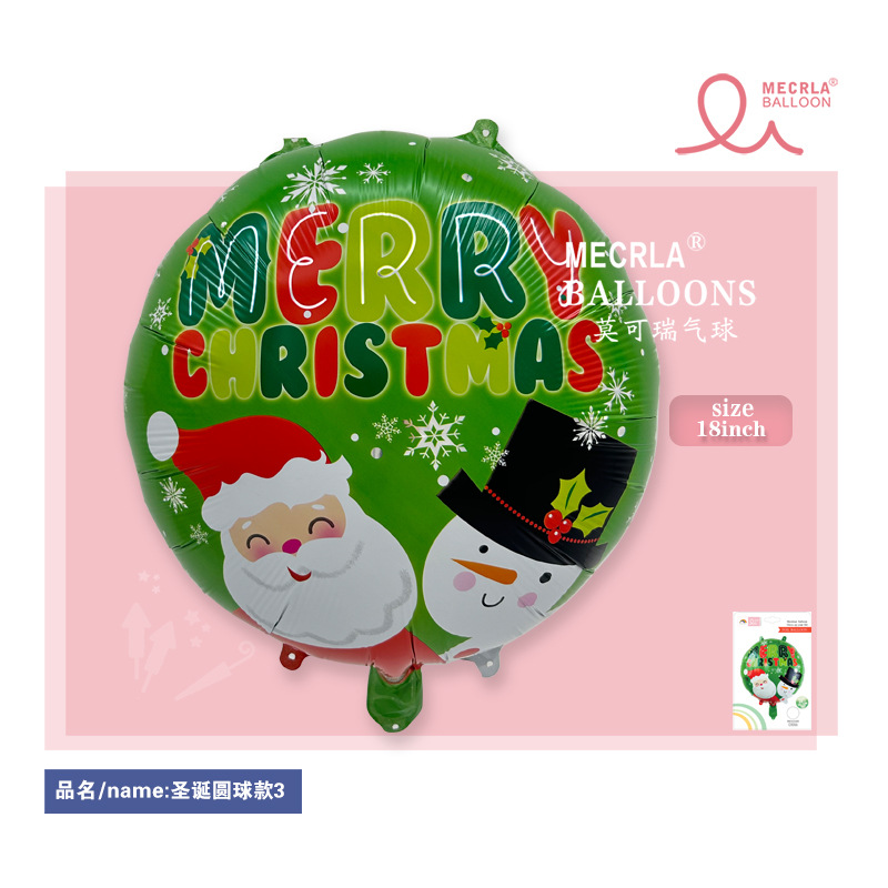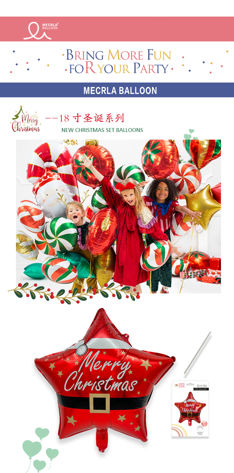 18寸圆球圣诞节五角星跨境圣诞雪人麋鹿拐杖装饰品铝膜气球精装