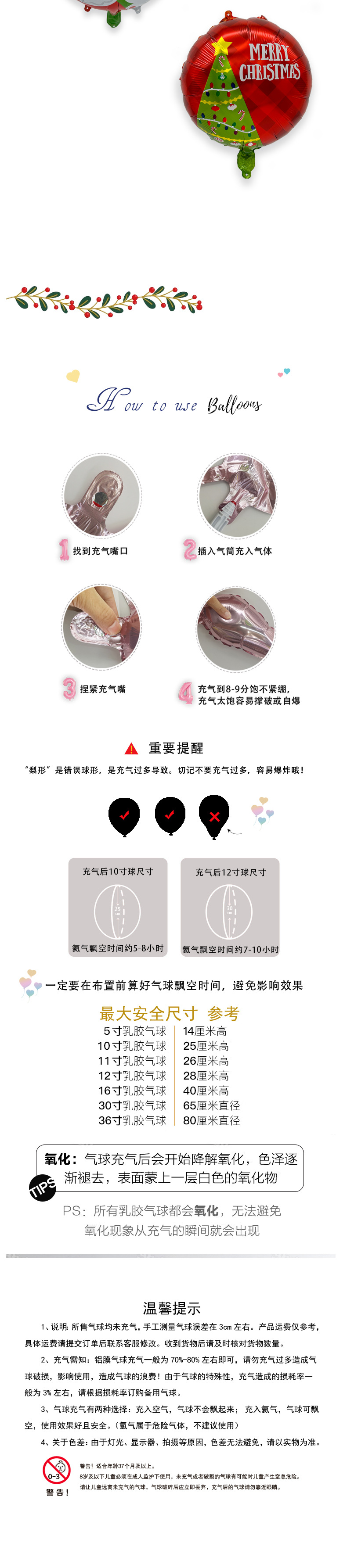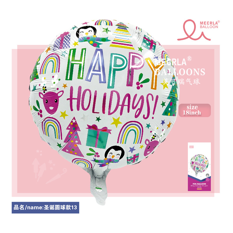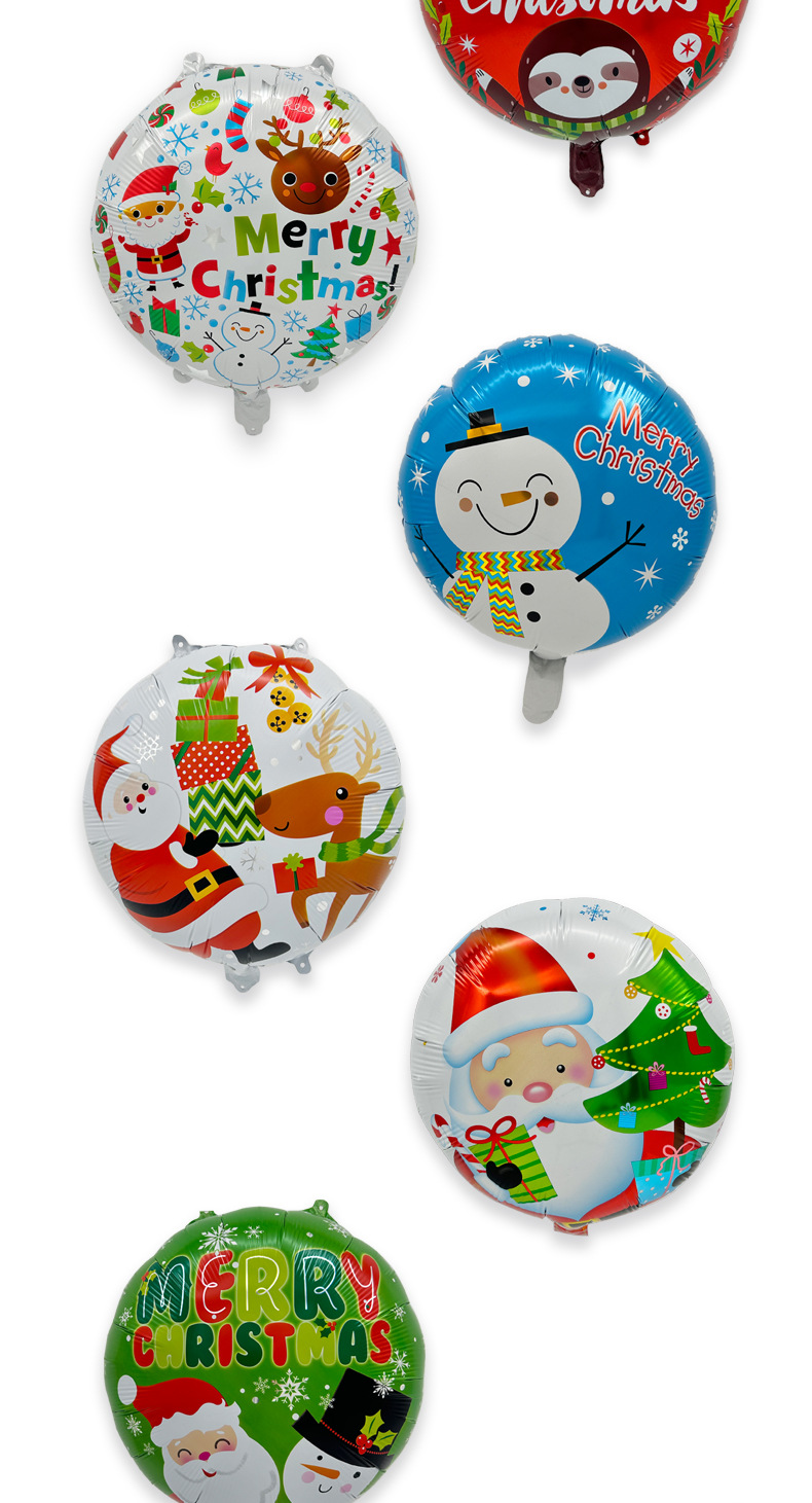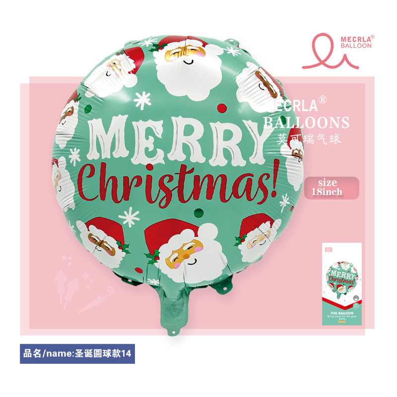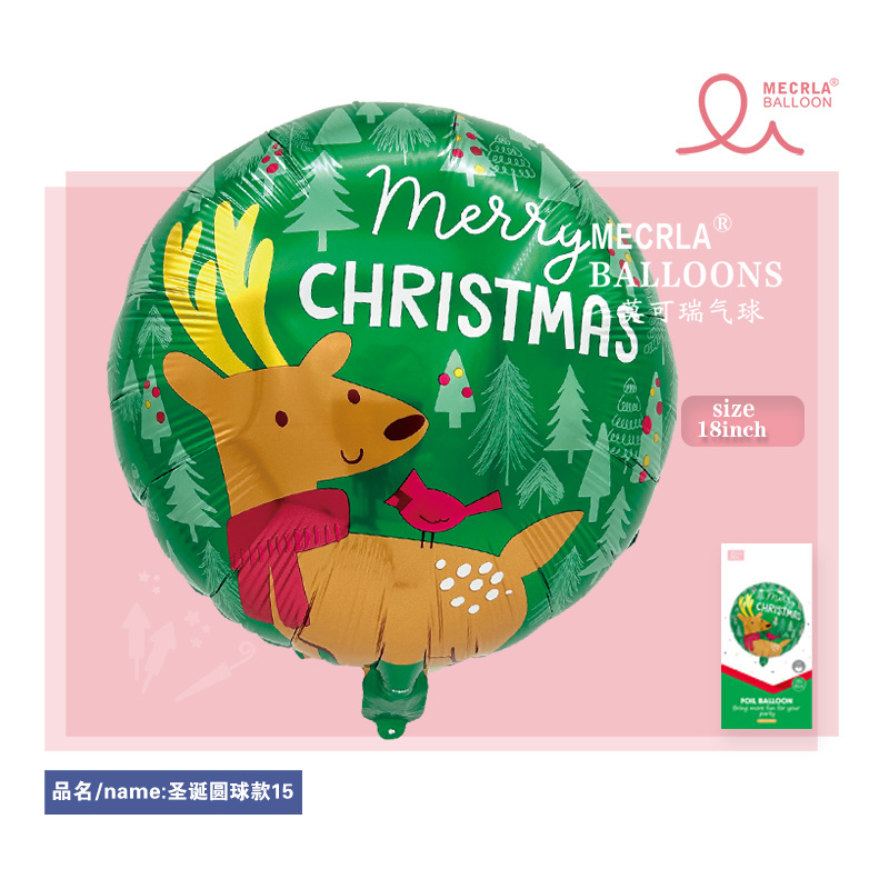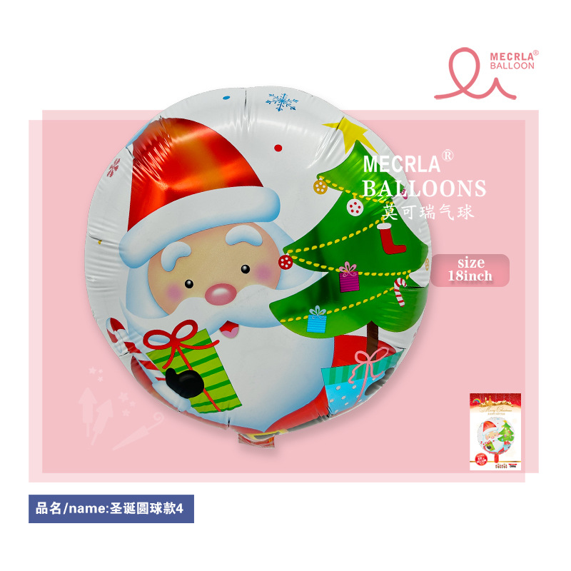 18寸圆球圣诞节五角星跨境圣诞雪人麋鹿拐杖装饰品铝膜气球精装