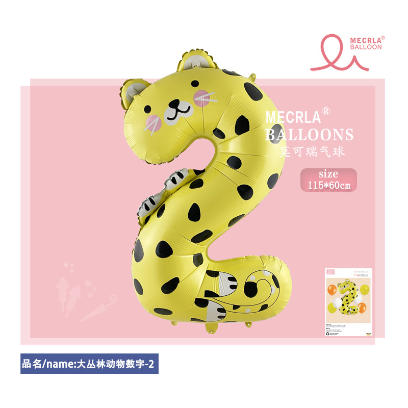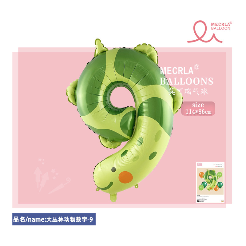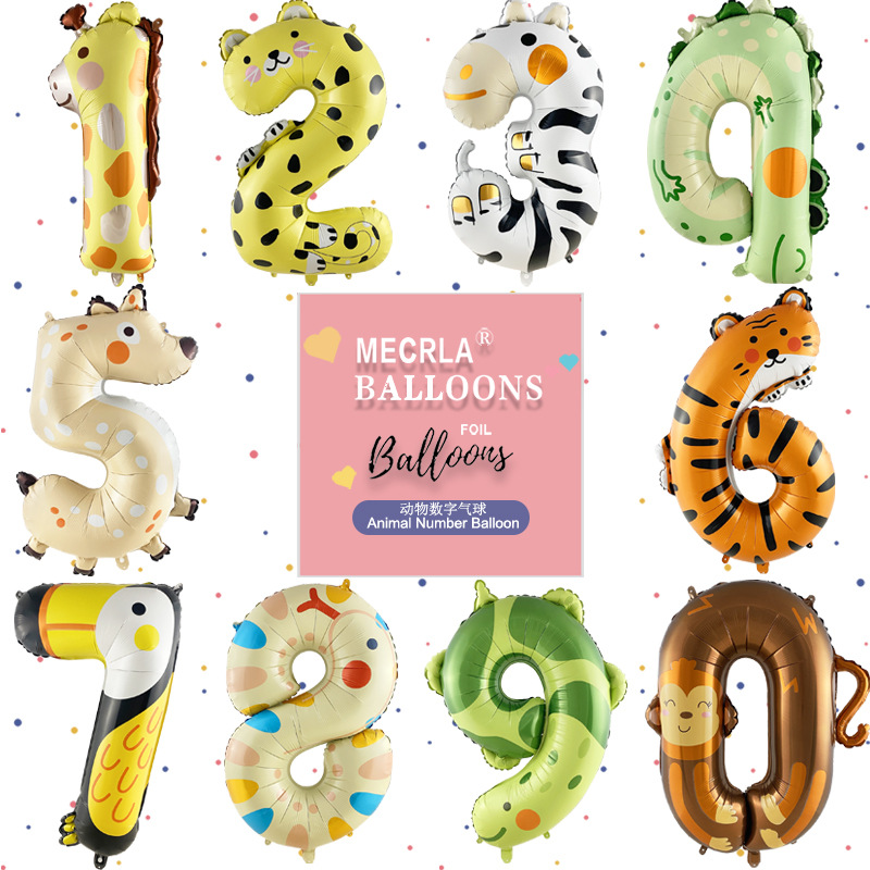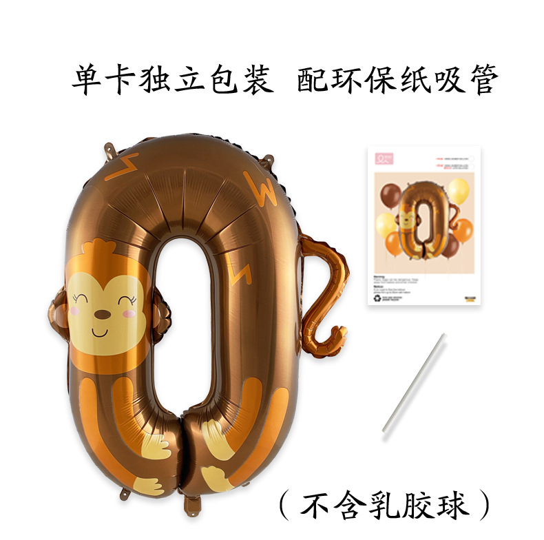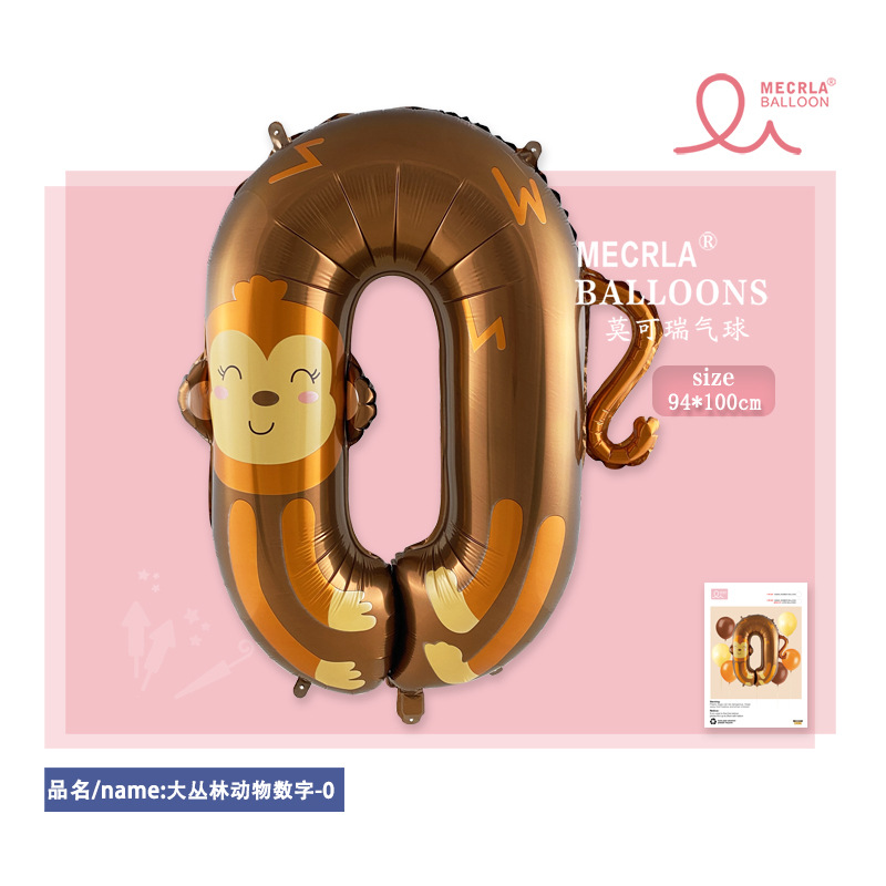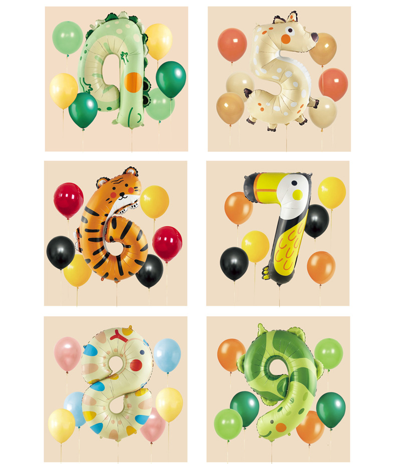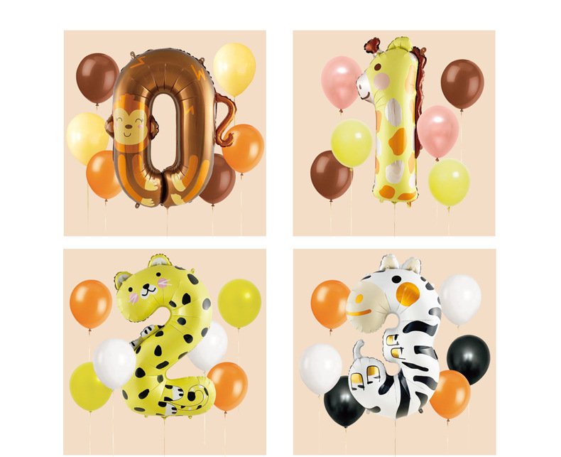 40寸大号动物数字丛林卡通主题0-9生日铝膜气球套精装跨境热销