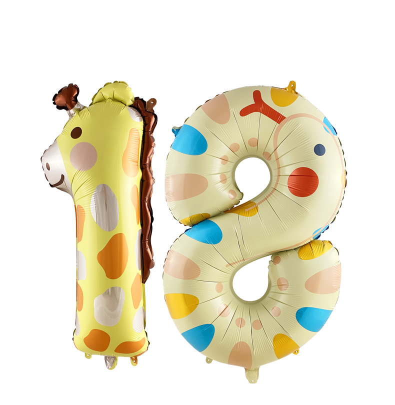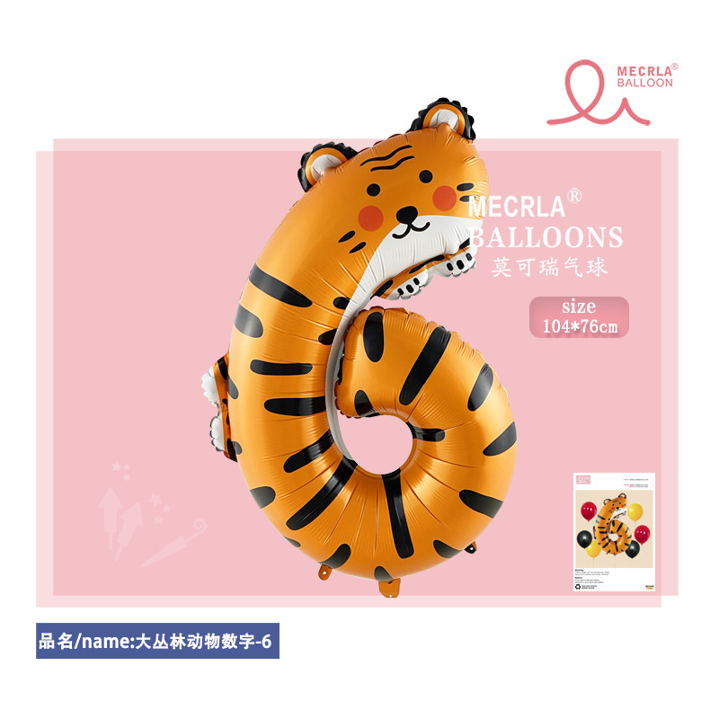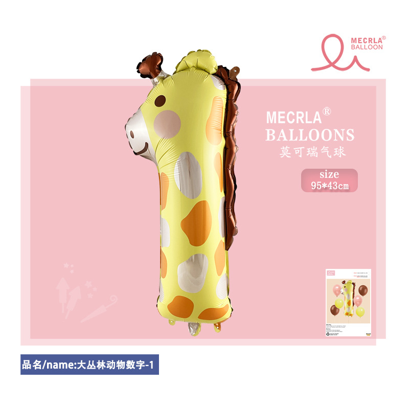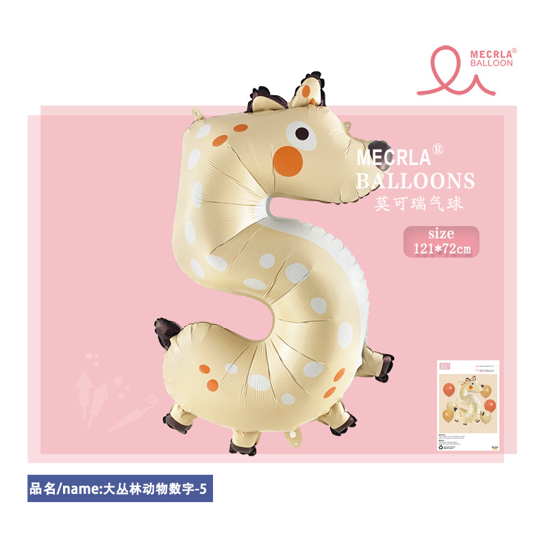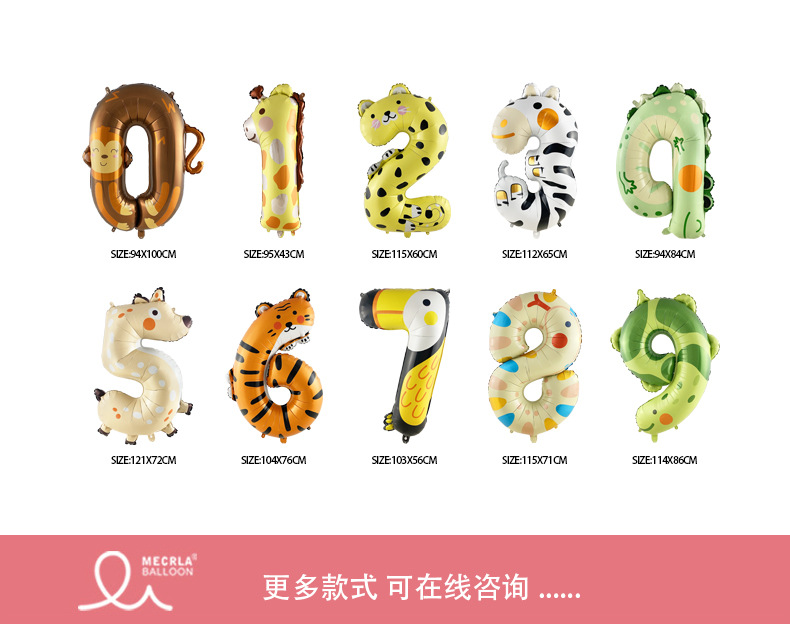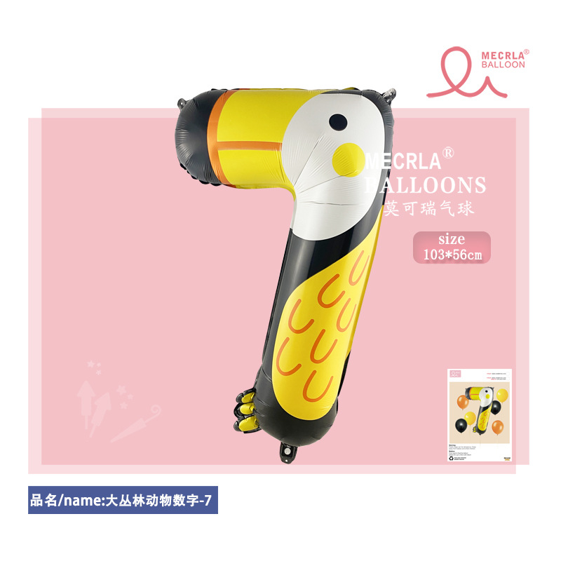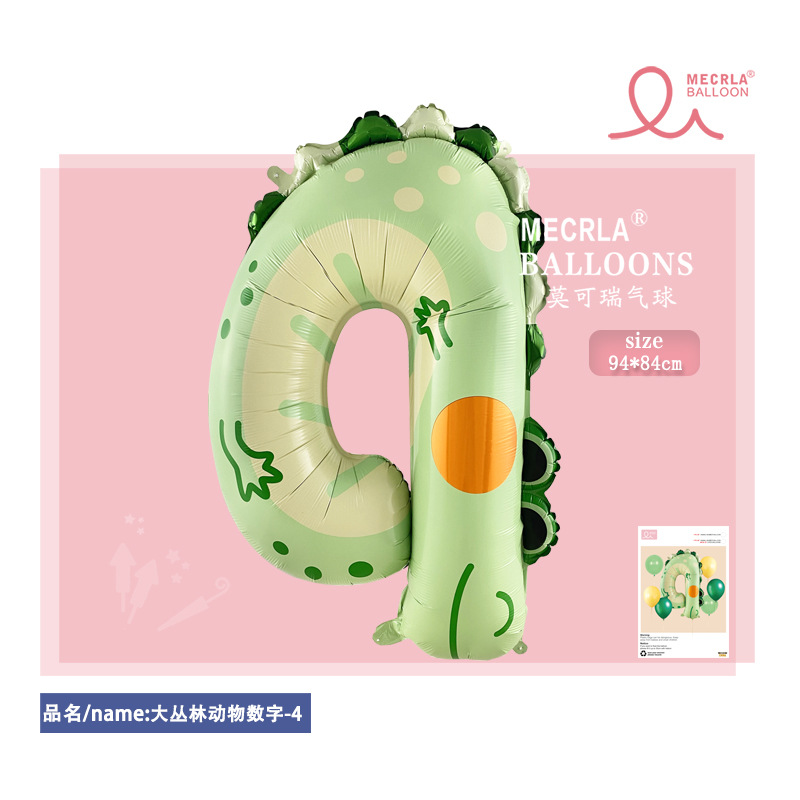 40寸大号动物数字丛林卡通主题0-9生日铝膜气球套精装跨境热销