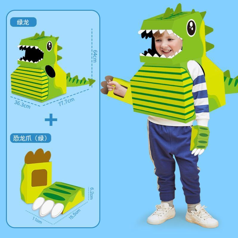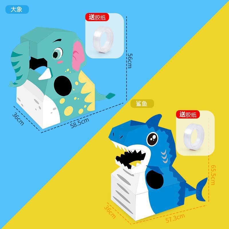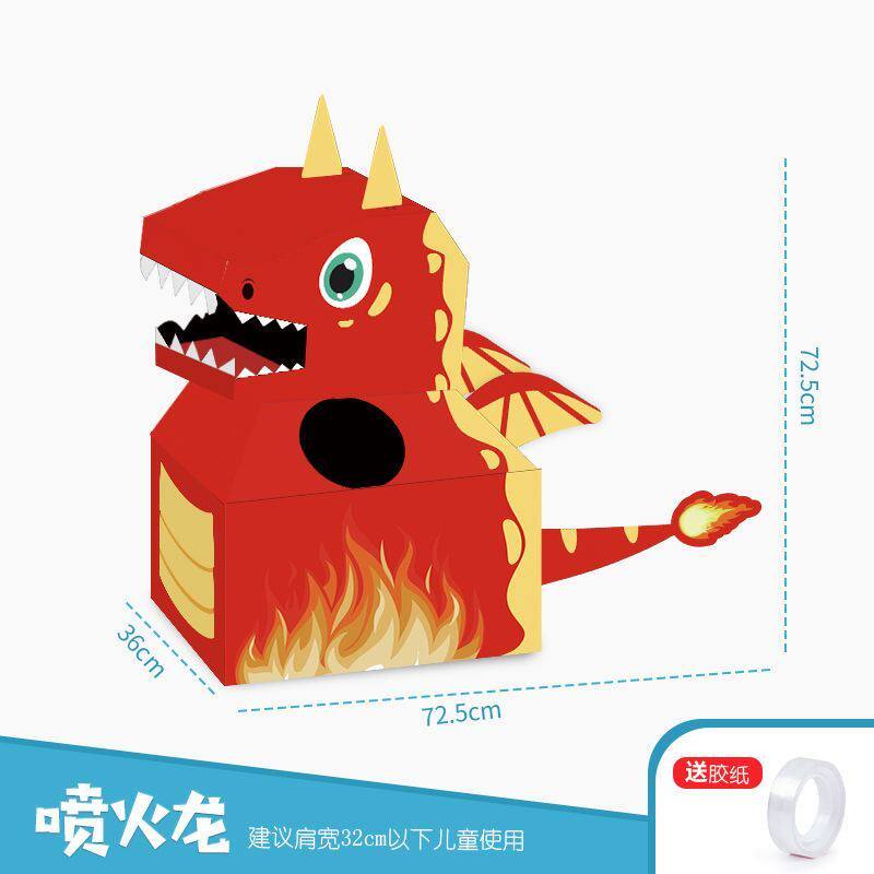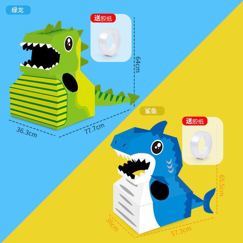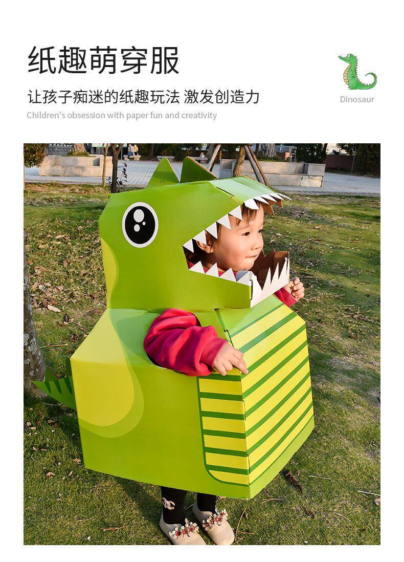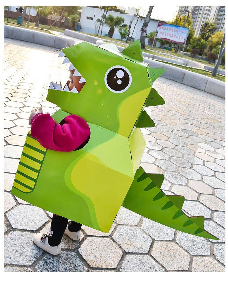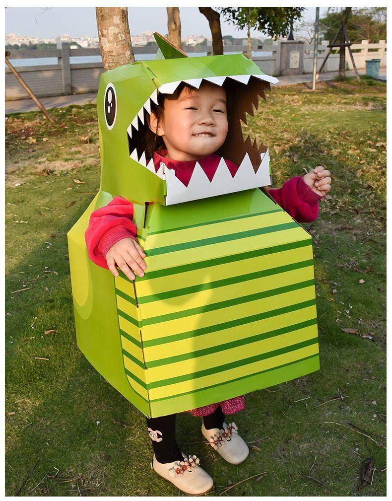 DIY可穿戴纸箱恐龙鲨鱼头套男孩3-6岁幼儿园扮演游戏小孩玩具