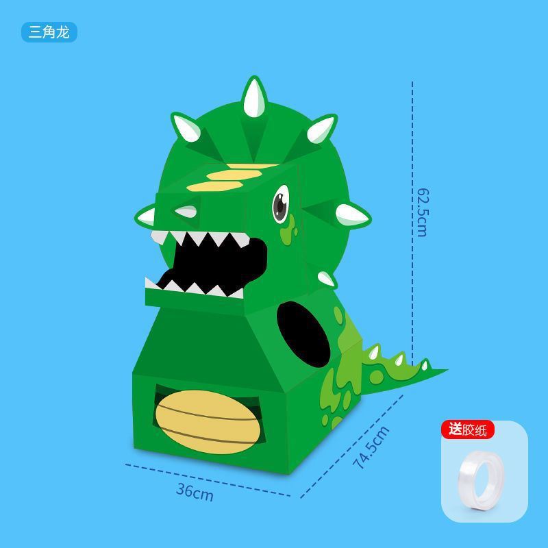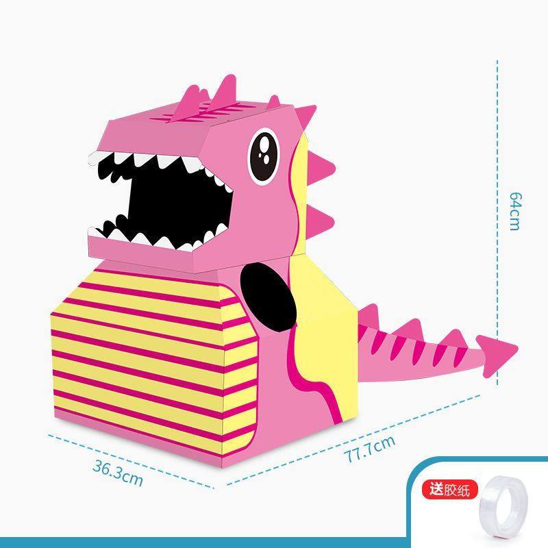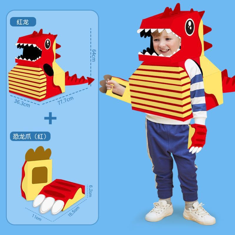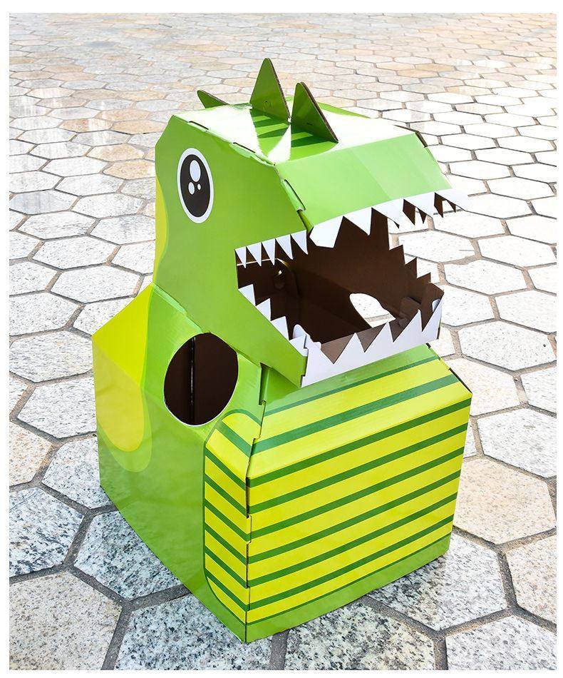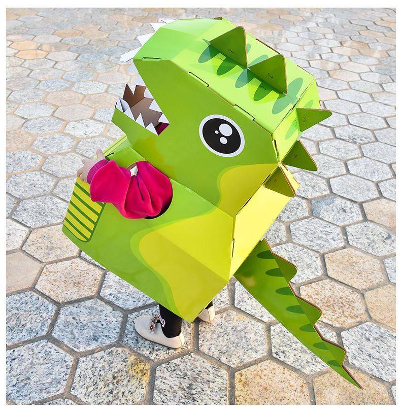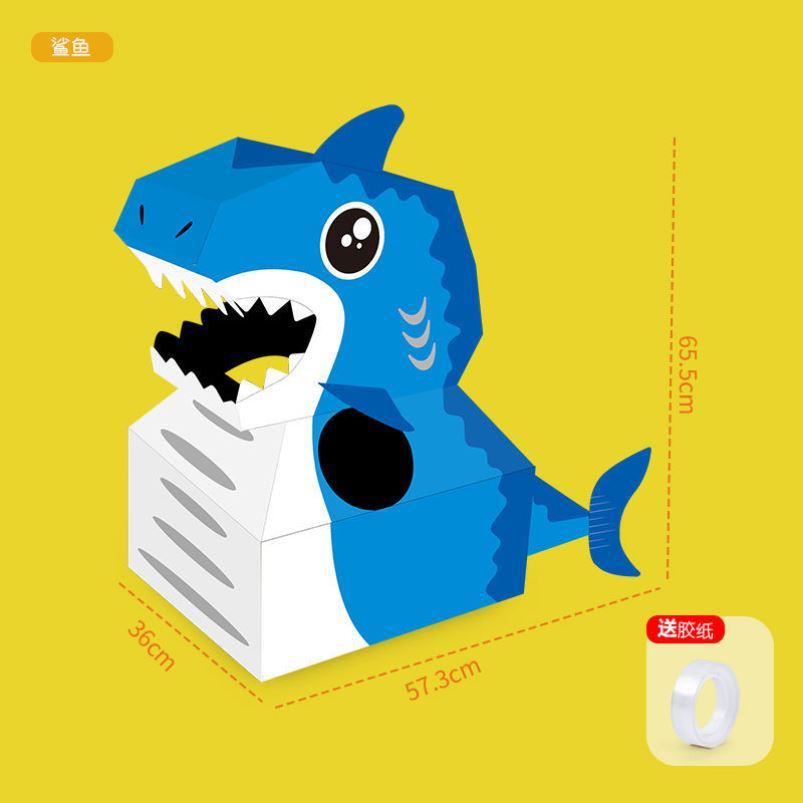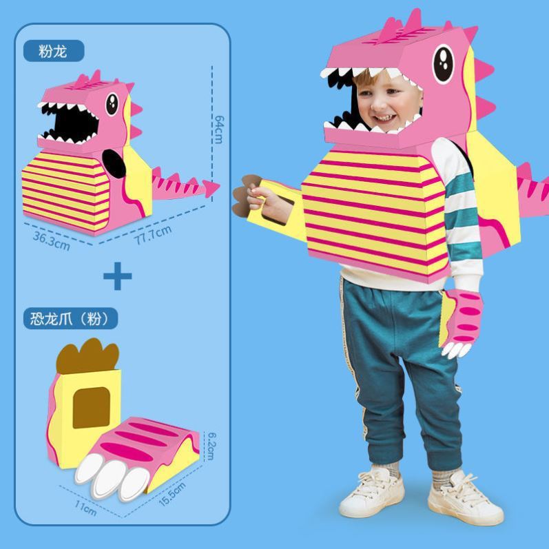 DIY可穿戴纸箱恐龙鲨鱼头套男孩3-6岁幼儿园扮演游戏小孩玩具