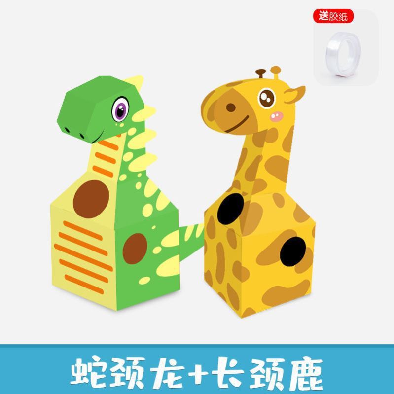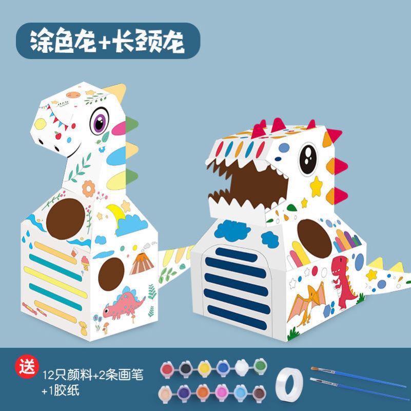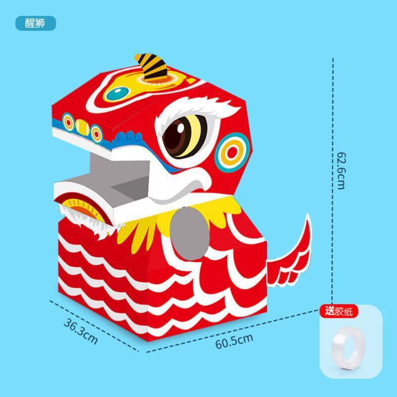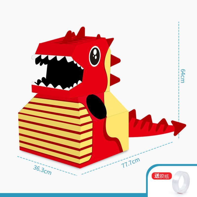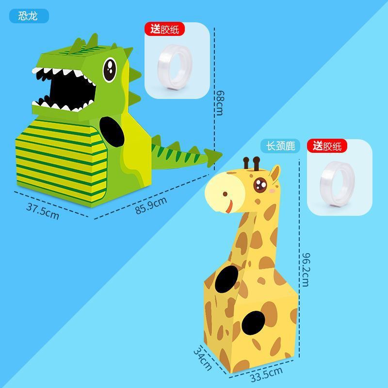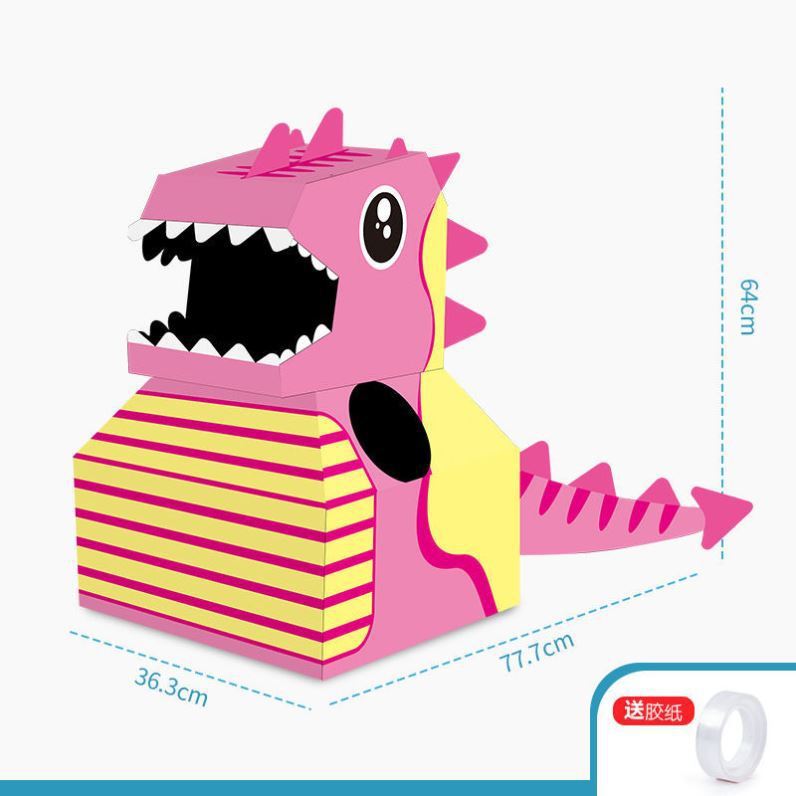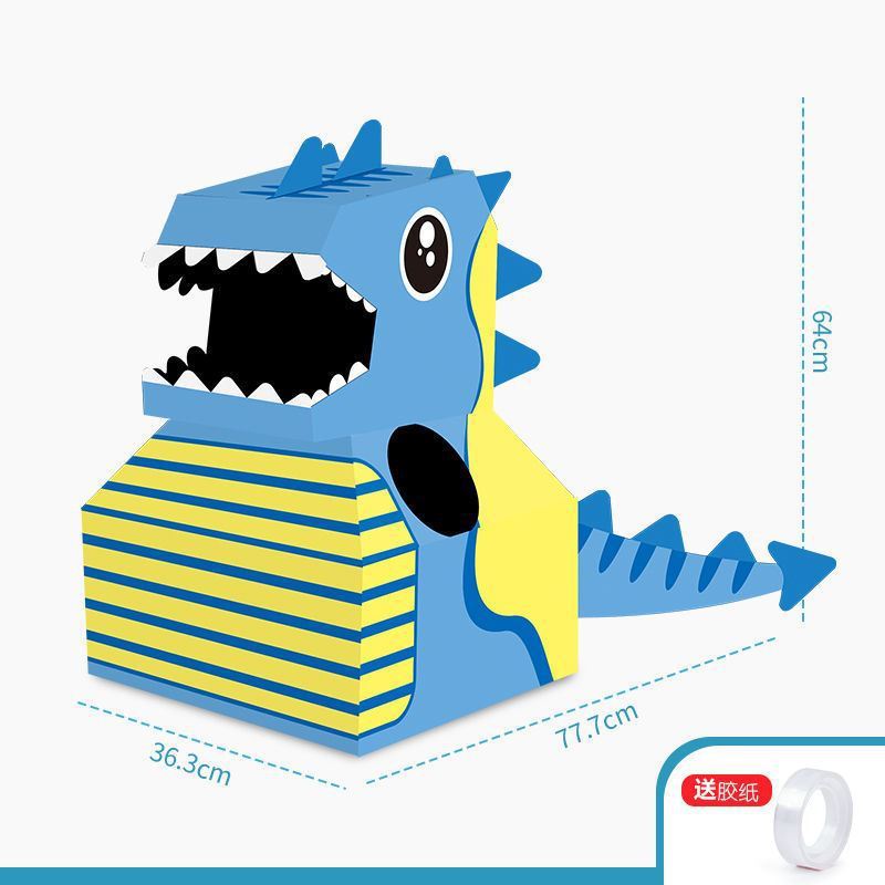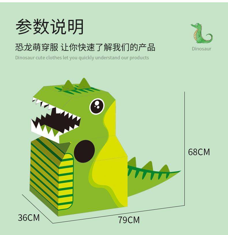 DIY可穿戴纸箱恐龙鲨鱼头套男孩3-6岁幼儿园扮演游戏小孩玩具