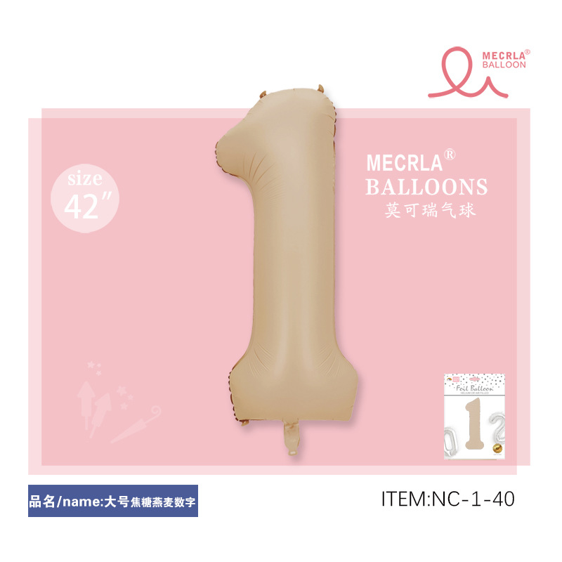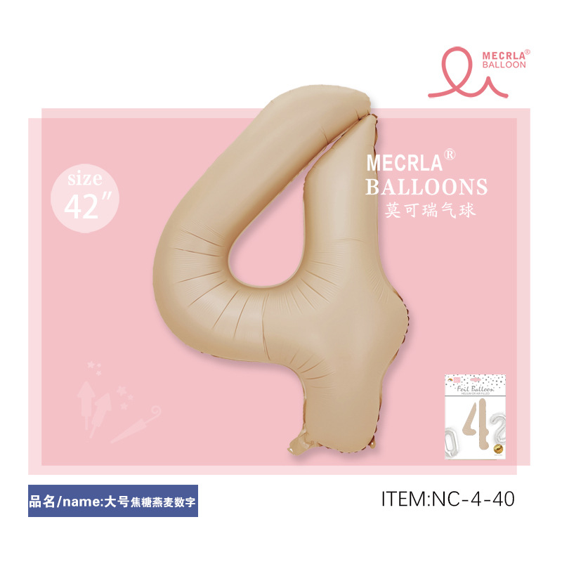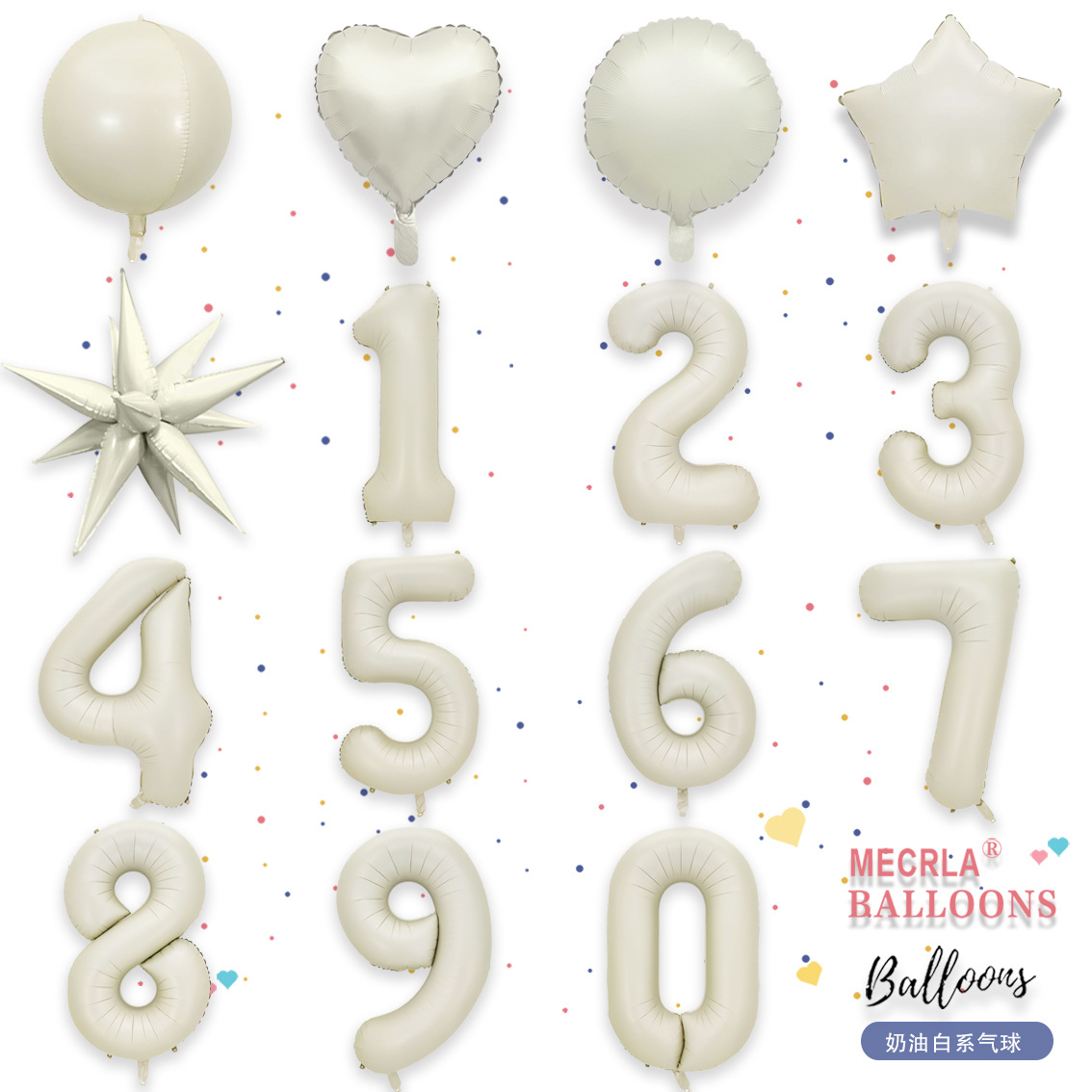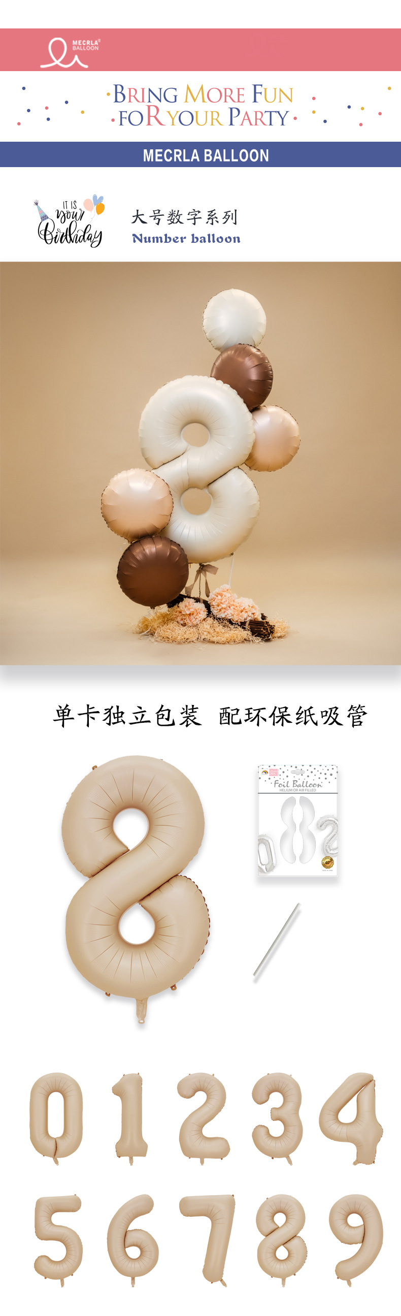 40寸美版大号数字气球新款复古奶油焦糖燕麦色铝膜生日派对布置