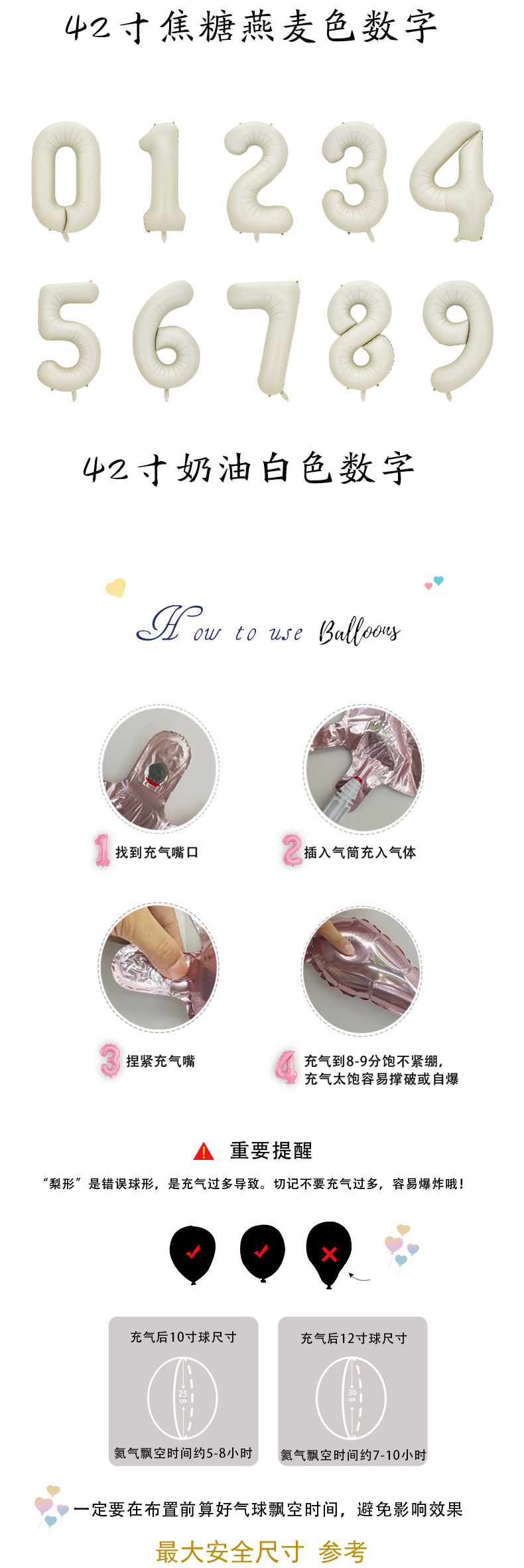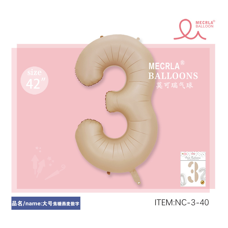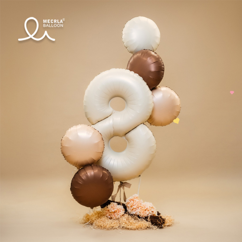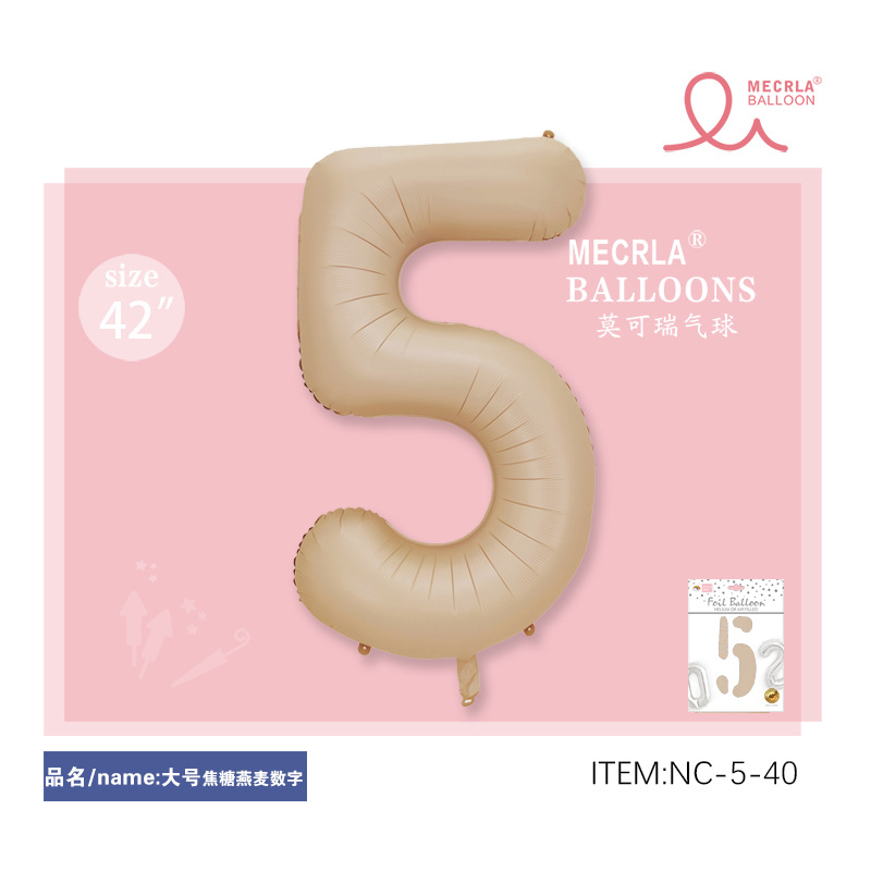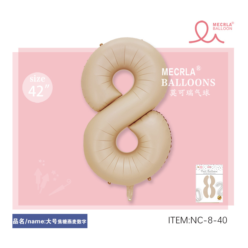 40寸美版大号数字气球新款复古奶油焦糖燕麦色铝膜生日派对布置