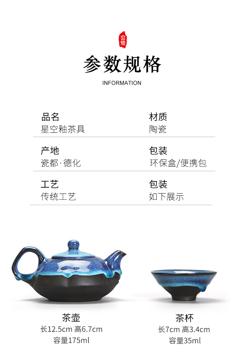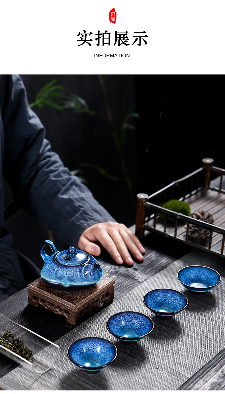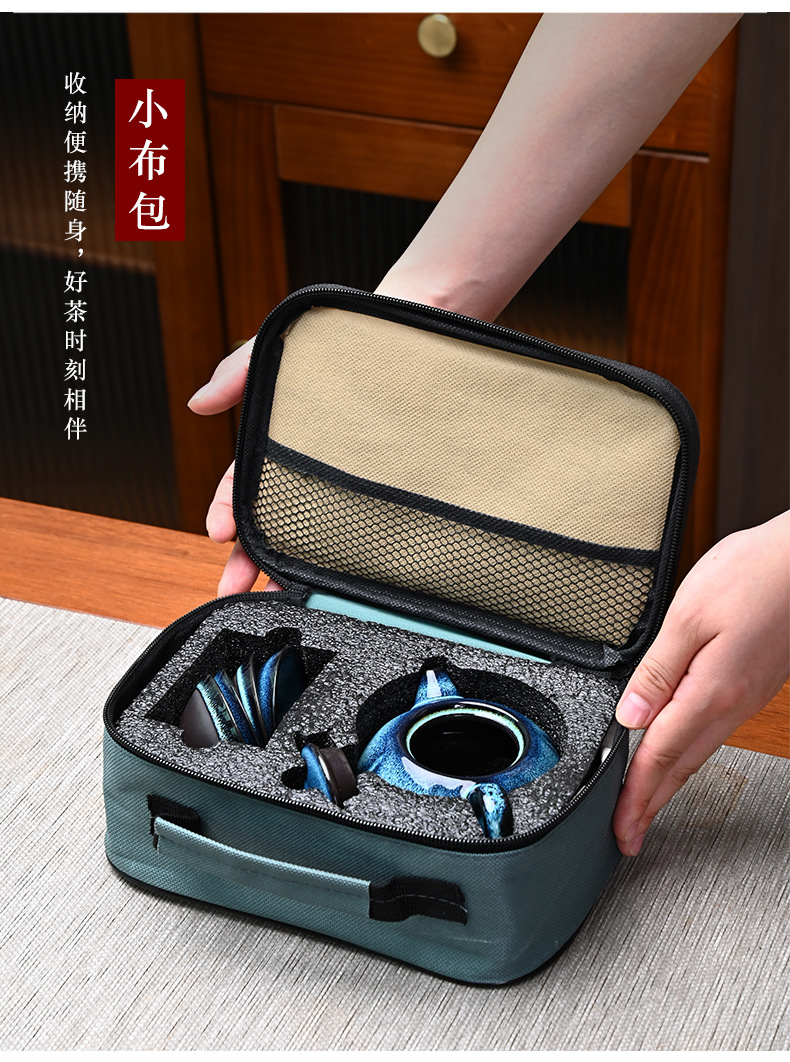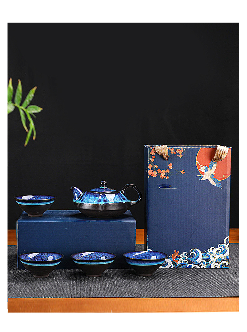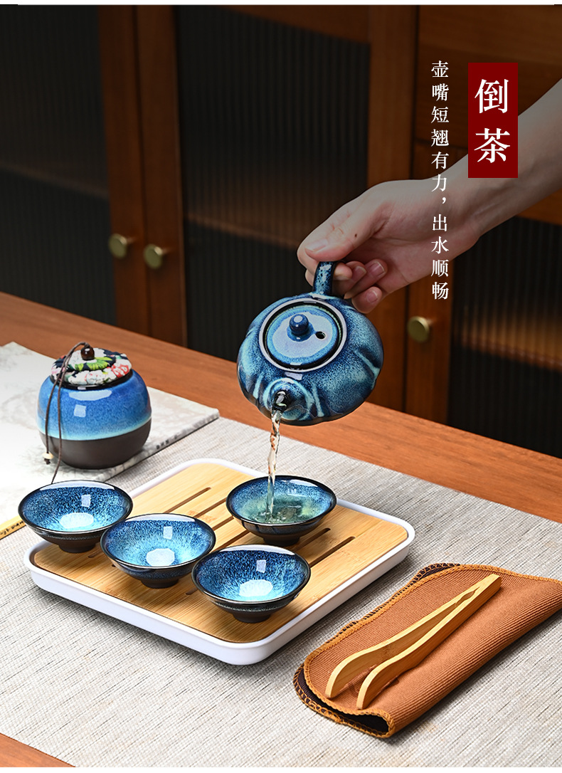 便携窑变旅行茶具套装天目釉一壶四杯商务伴随手礼品定 制logo