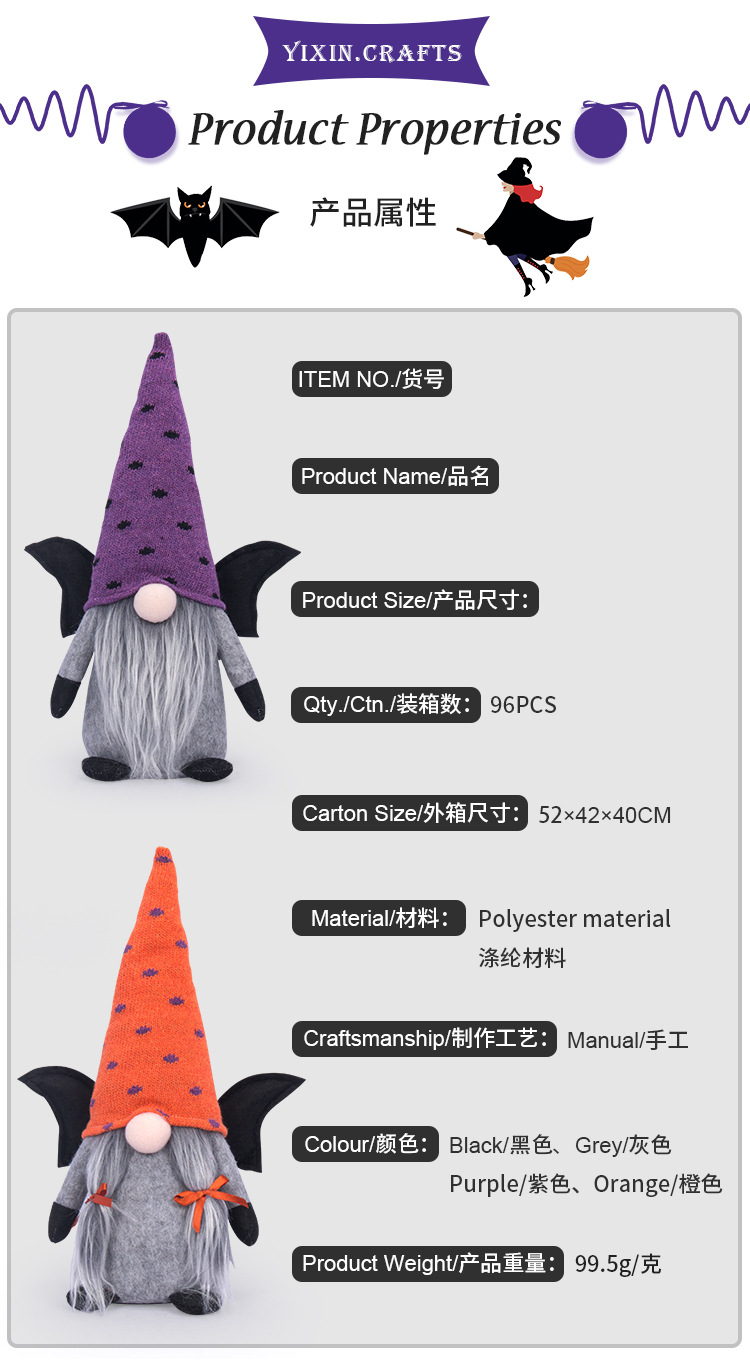 跨境2023新品万圣节装饰用品无脸娃娃蝙蝠鲁道夫公仔娃娃橱窗摆件