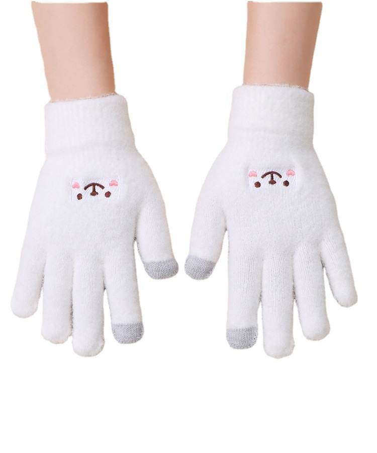 2023新款刺绣手套女可爱卡通笑脸小熊秋冬季保暖防寒男女针织手套