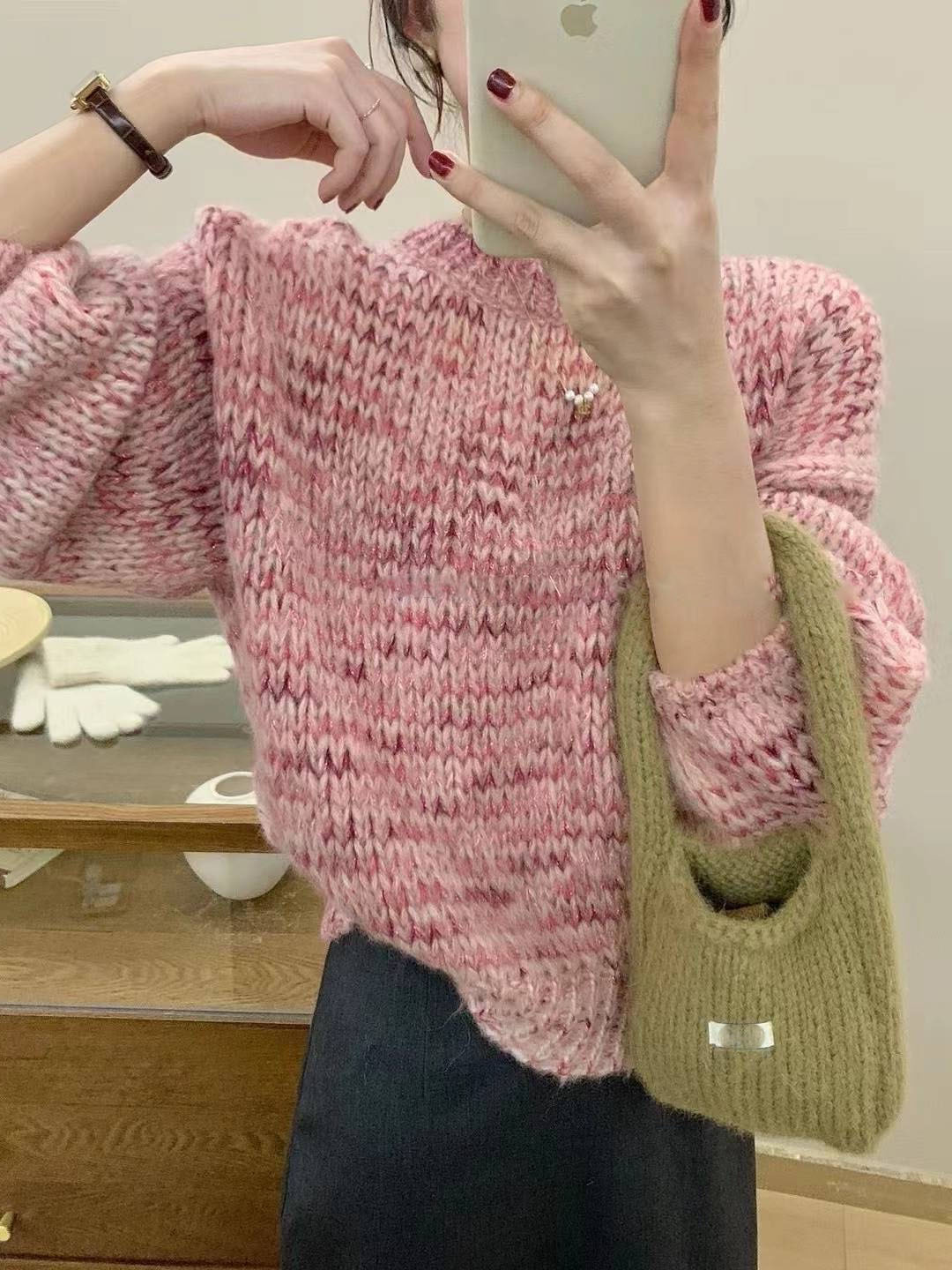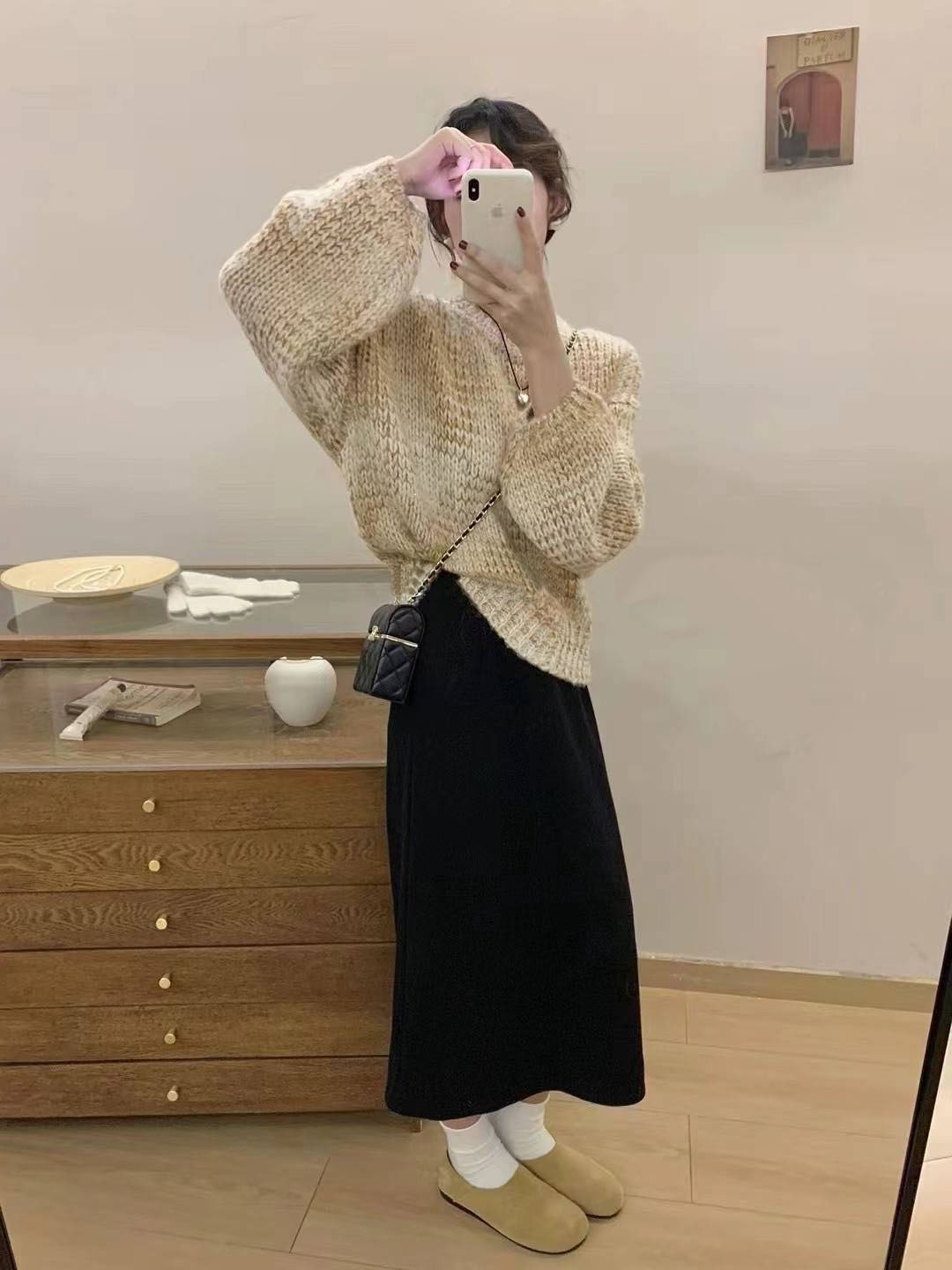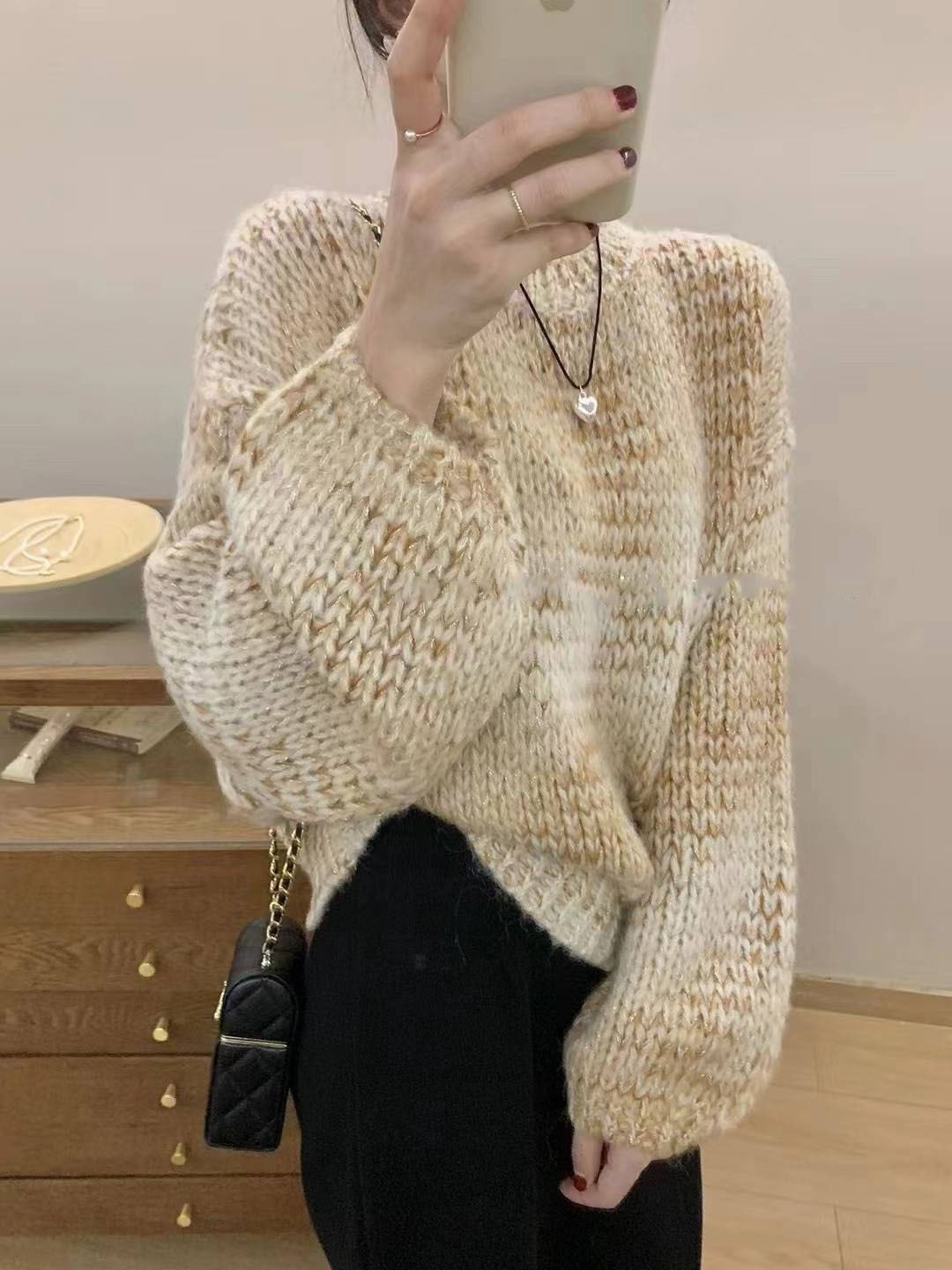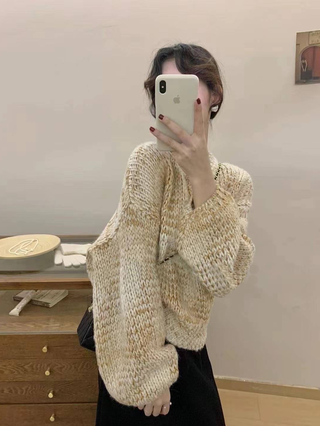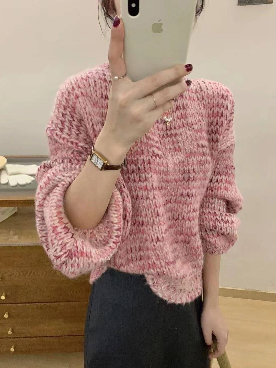 慵懒风渐变色圆领套头针织衫女秋冬新款软糯长袖宽松针织衫上衣潮