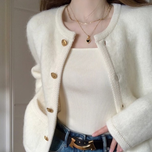 法式小香风短款圆领针织开衫毛衣女春秋新款慵懒风小个子休闲外套
